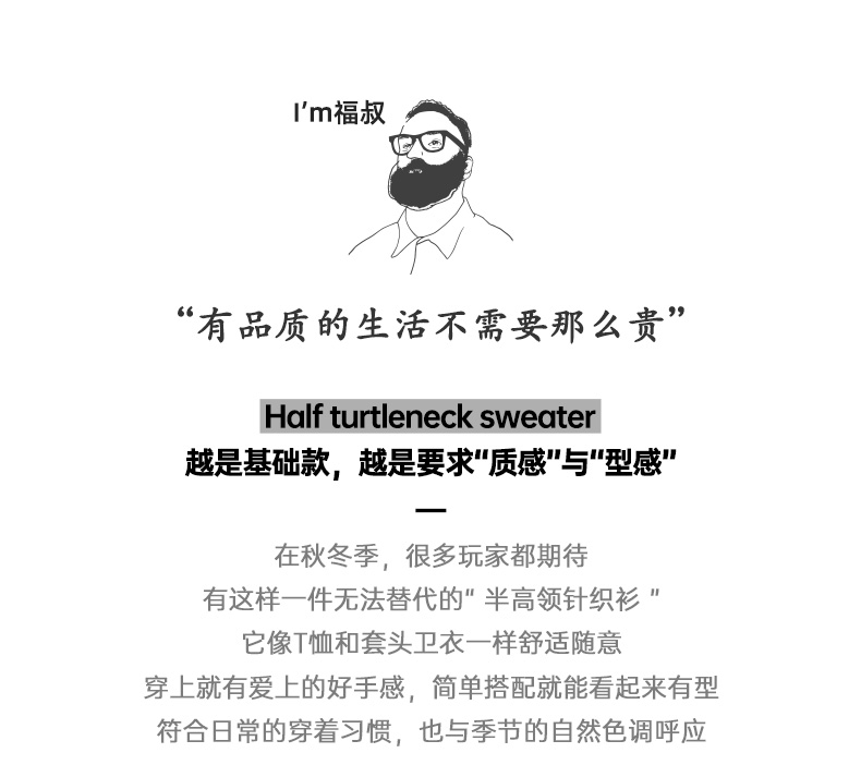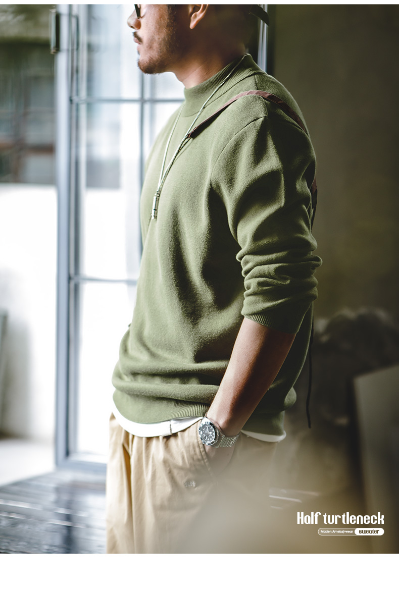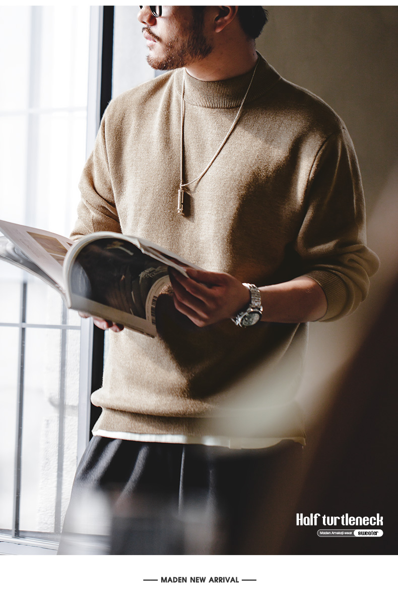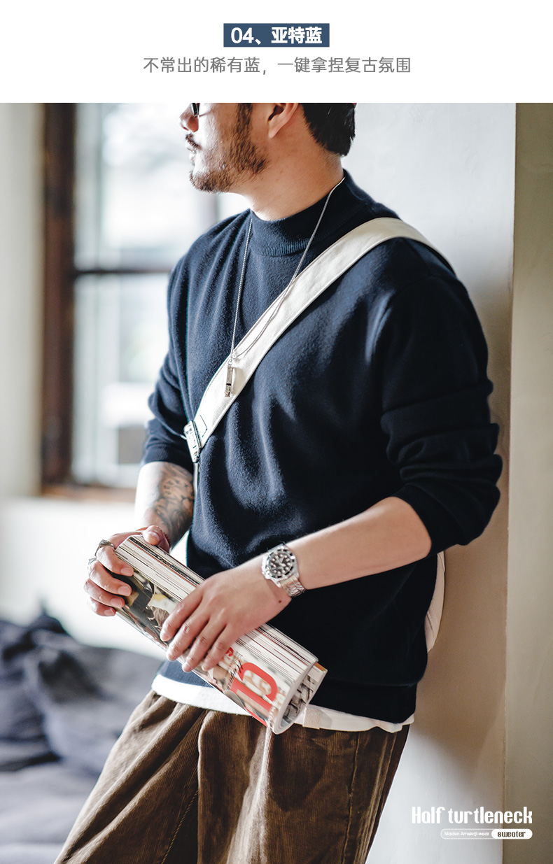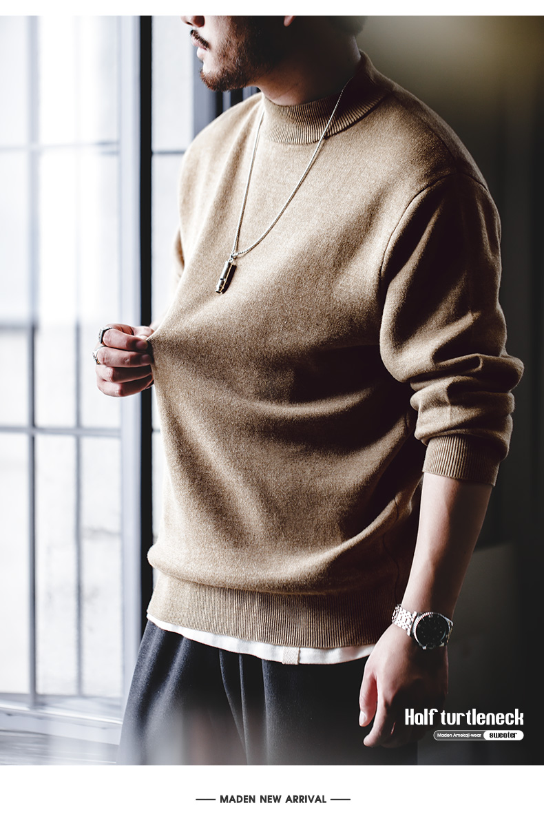 工装优选 美式休闲基础款半高领毛衣套头保暖针织打底衫男士秋冬