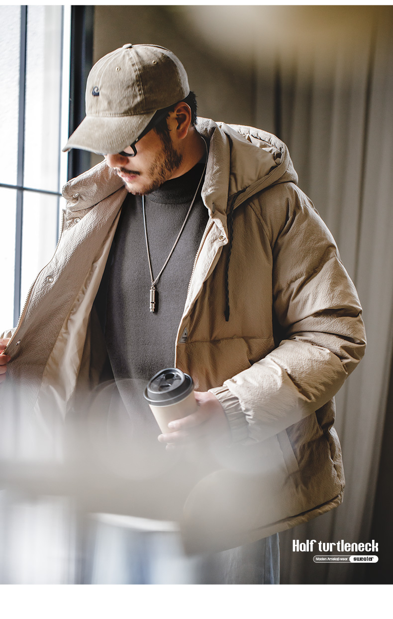 工装优选 日系复古白鸭绒羽绒服防风保暖轻便连帽外套防寒服男冬季