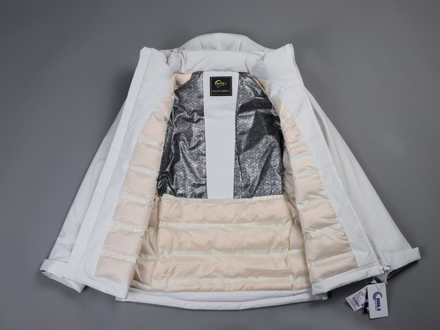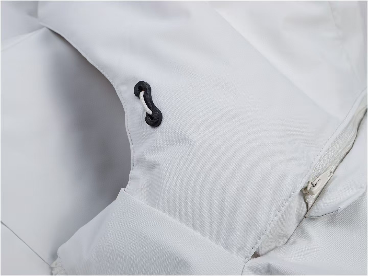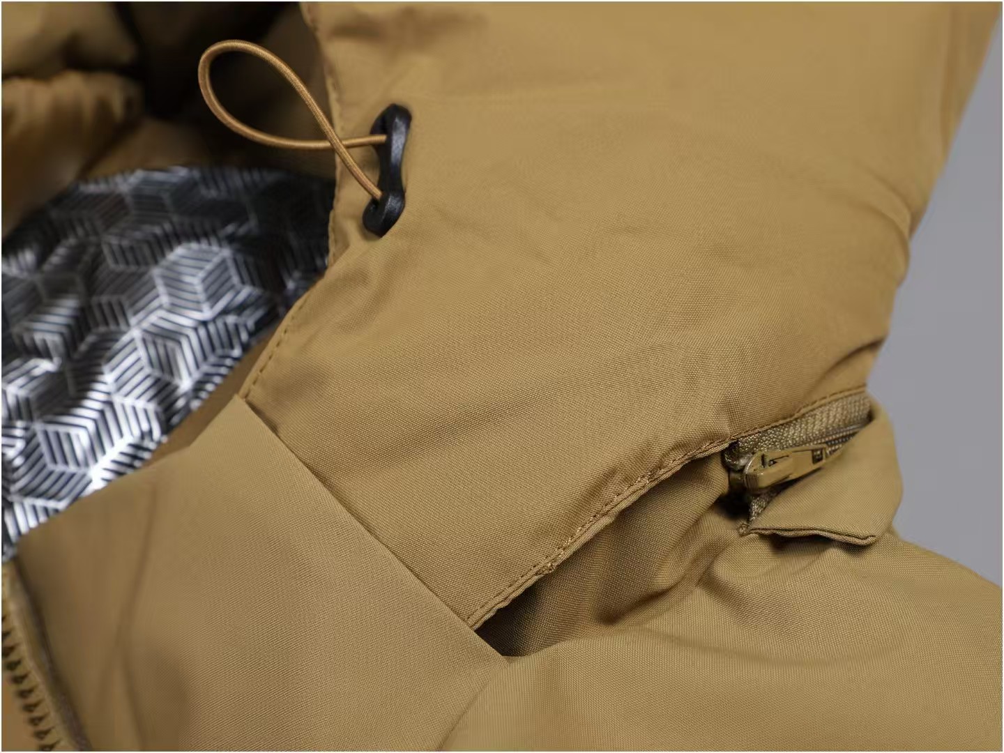 帽子可拆卸,面料采用三防科技面料,防风防水防污渍。填充物采用聚酰亚胺科技棉,源自宇航服核心材料,抗寒能力更加出色。里料采用石墨烯面料,双重锁温抗寒。带有正规质检报告,专利授权,商标资质。