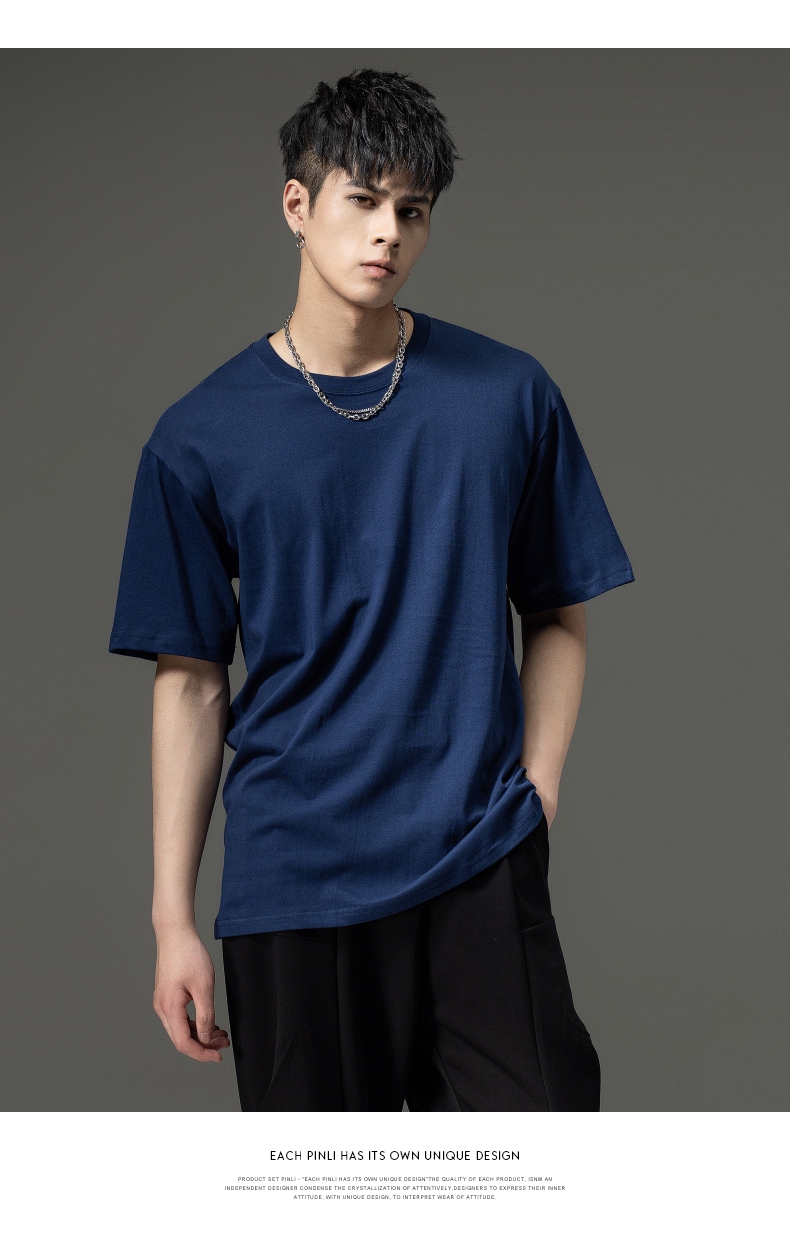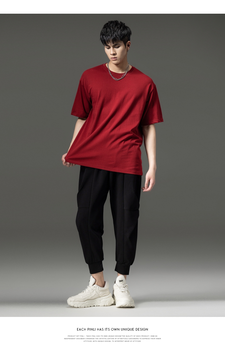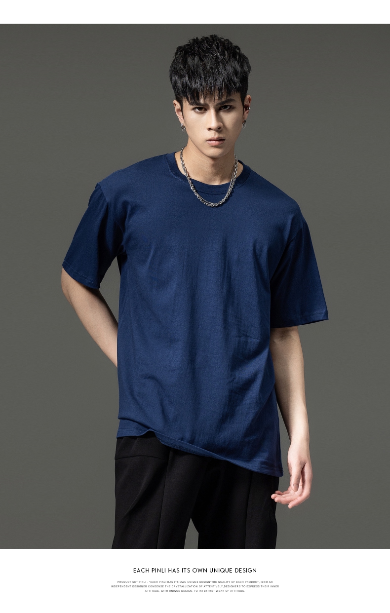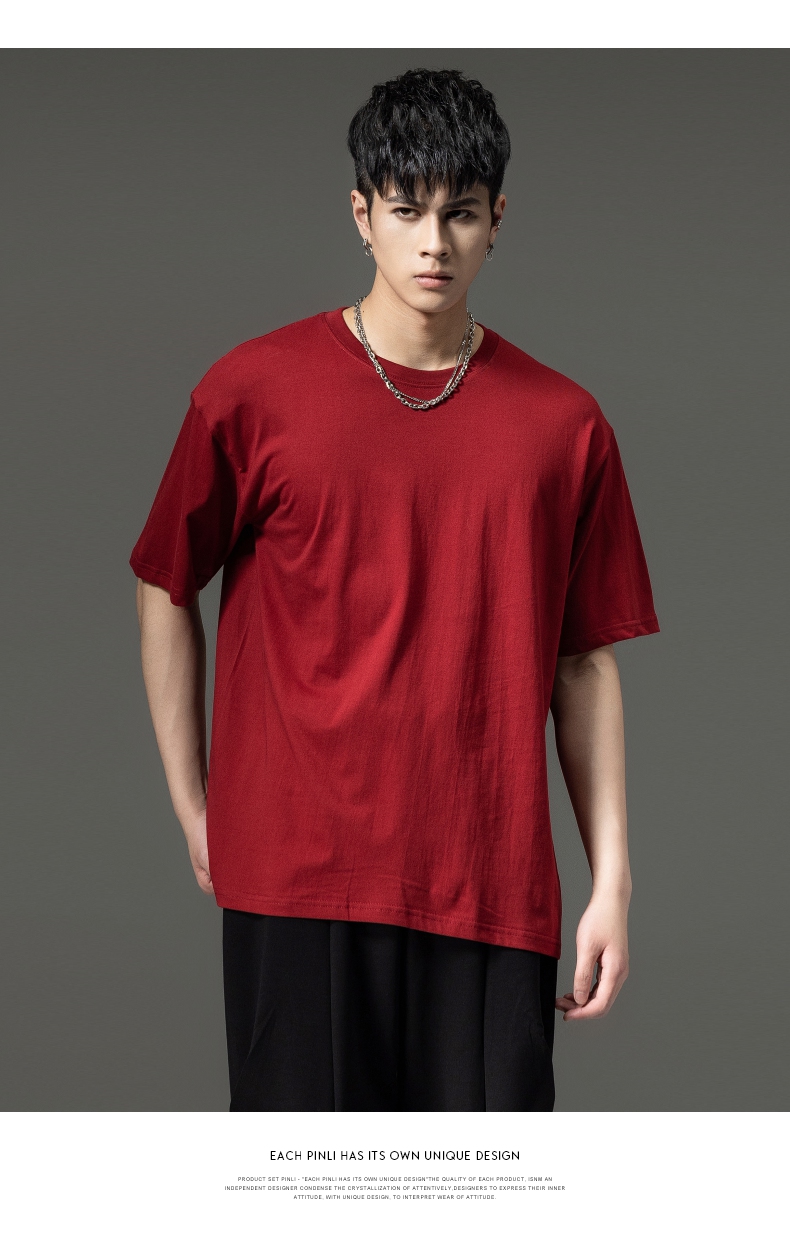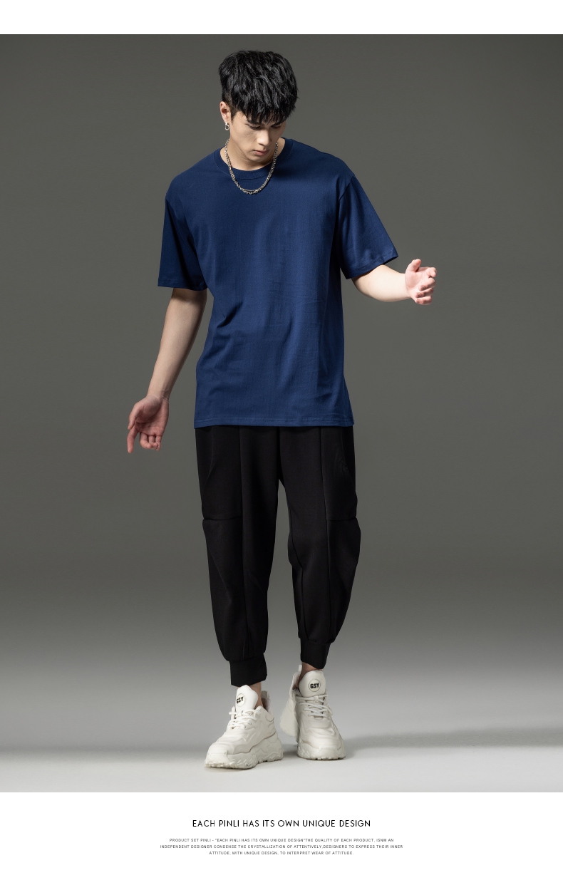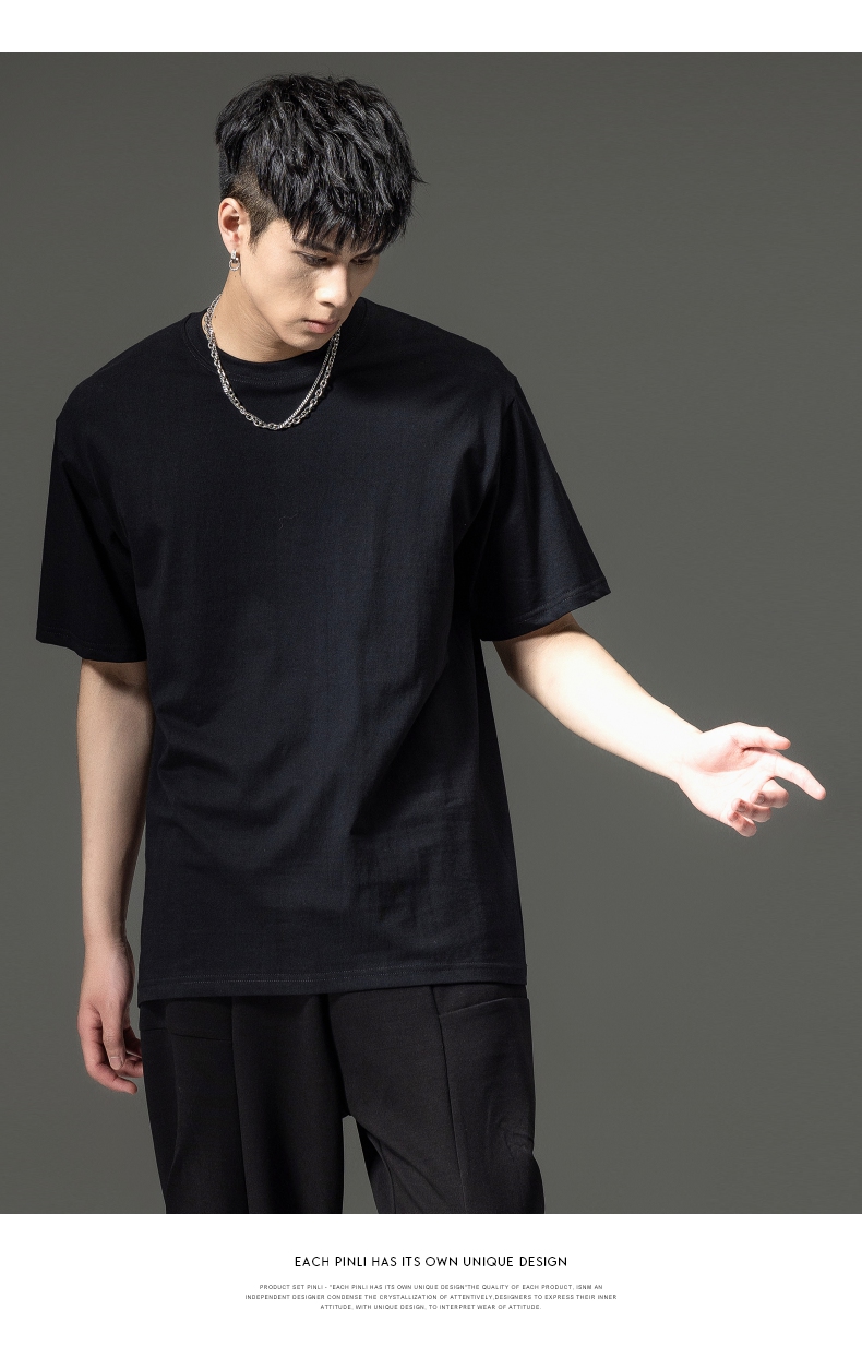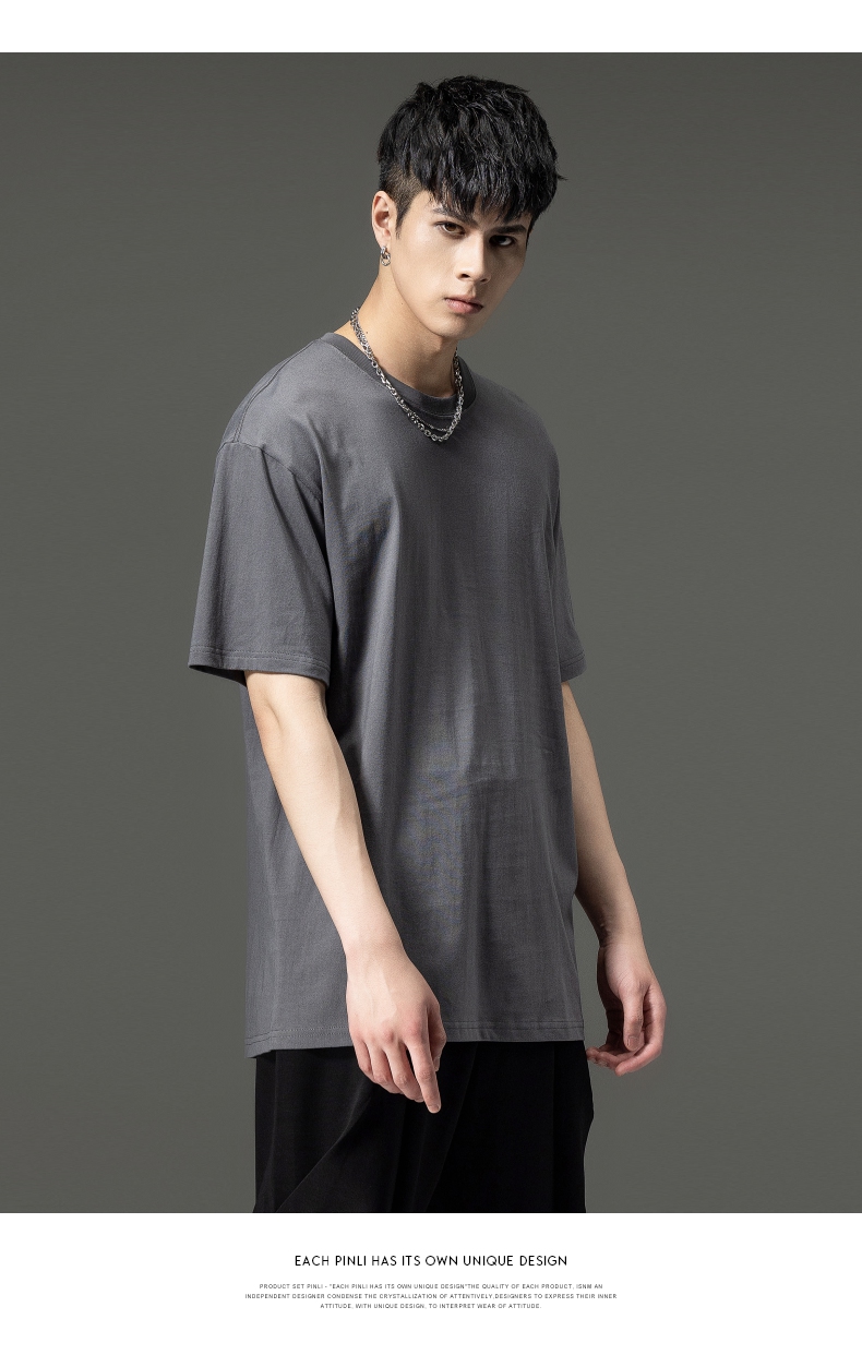 PINLI品立夏季新款男士圆领落肩纯色短袖T恤上衣GD232111322