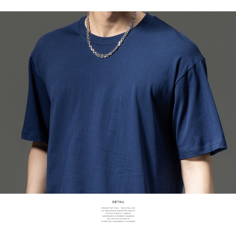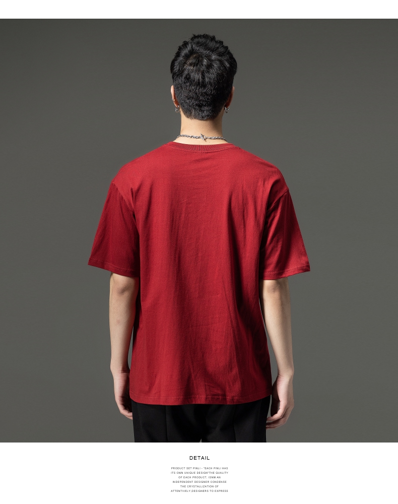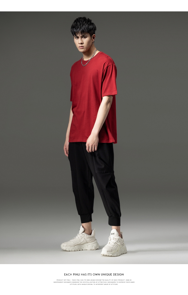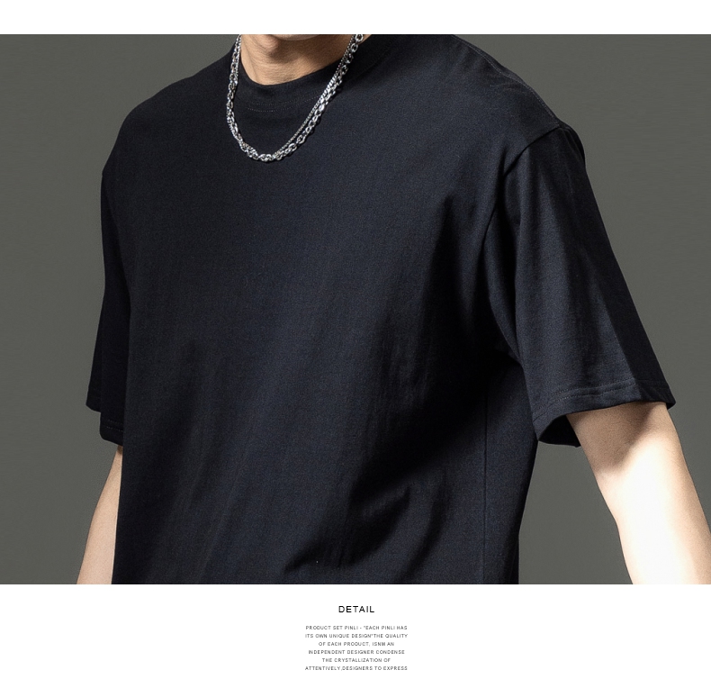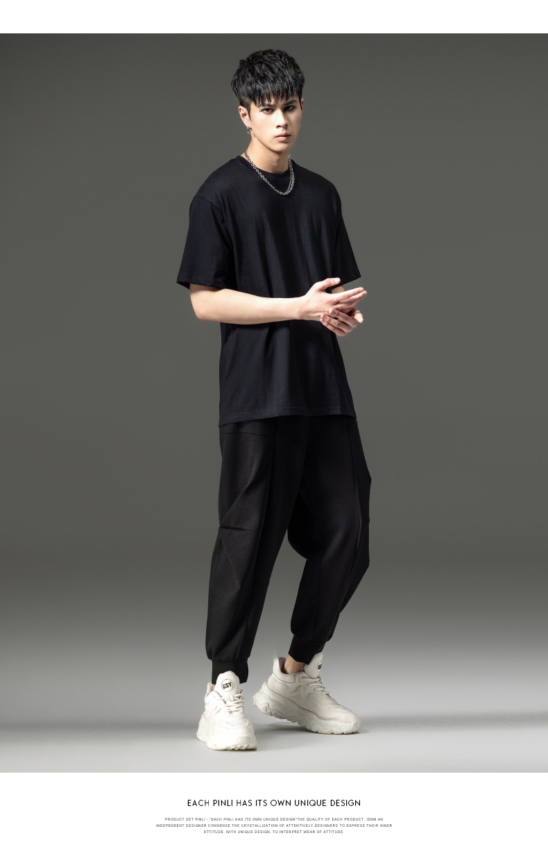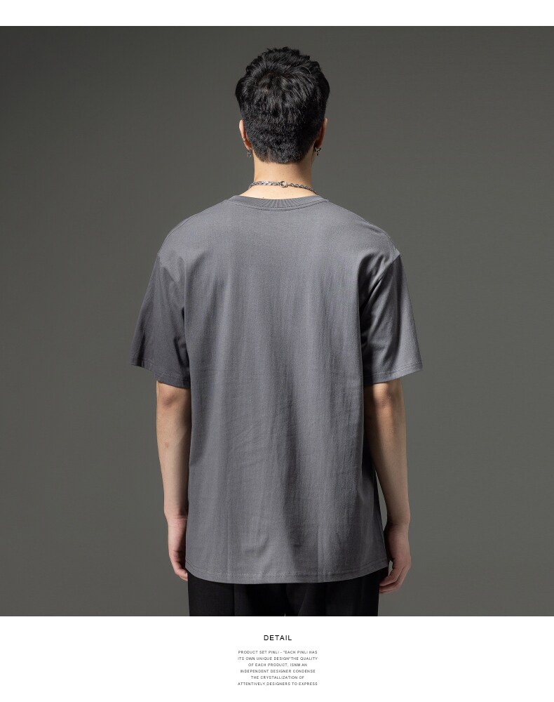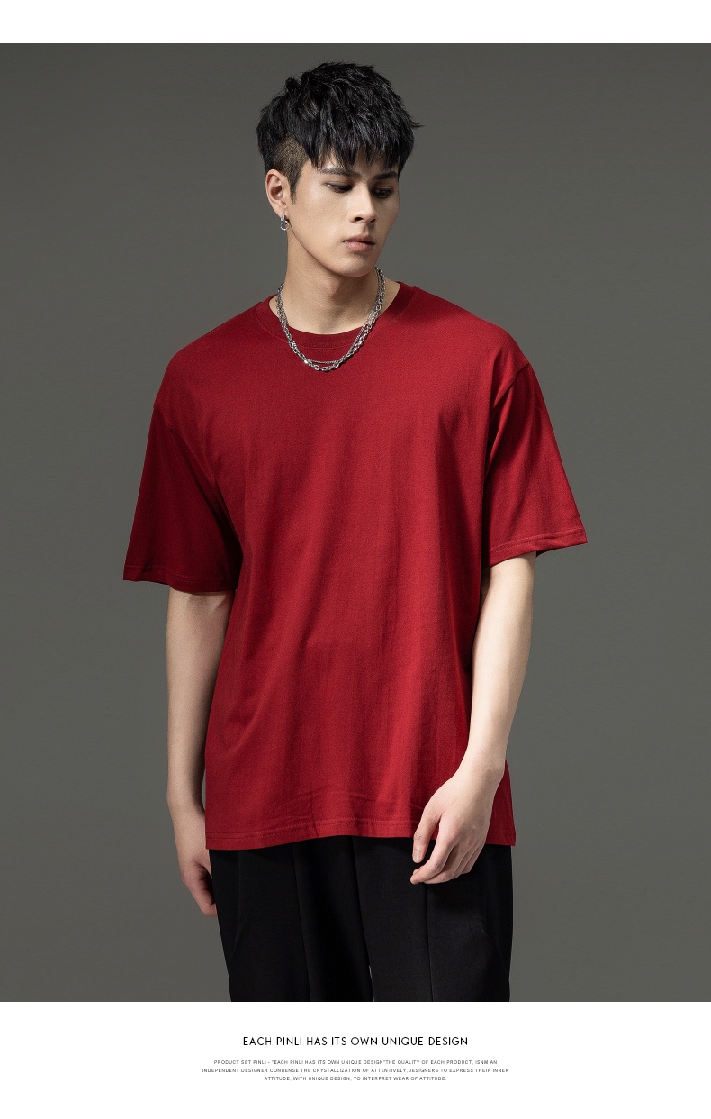 PINLI品立夏季新款男士圆领落肩纯色短袖T恤上衣GD232111322