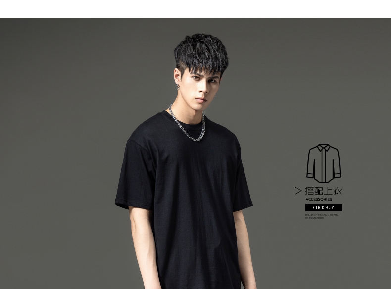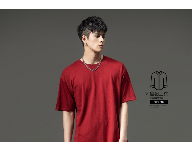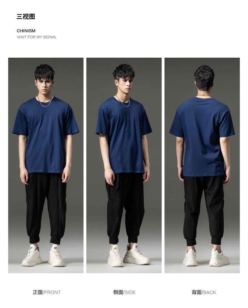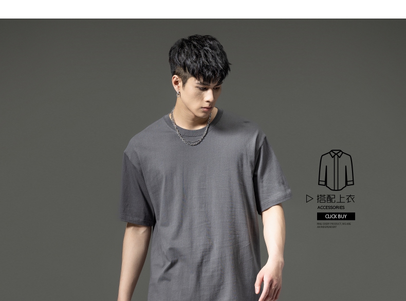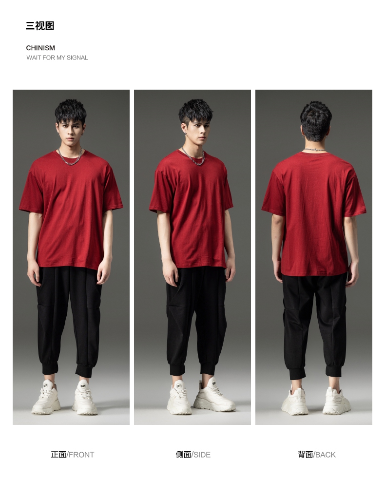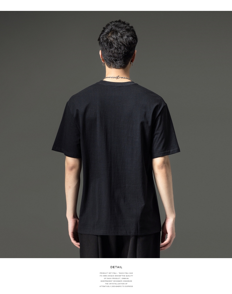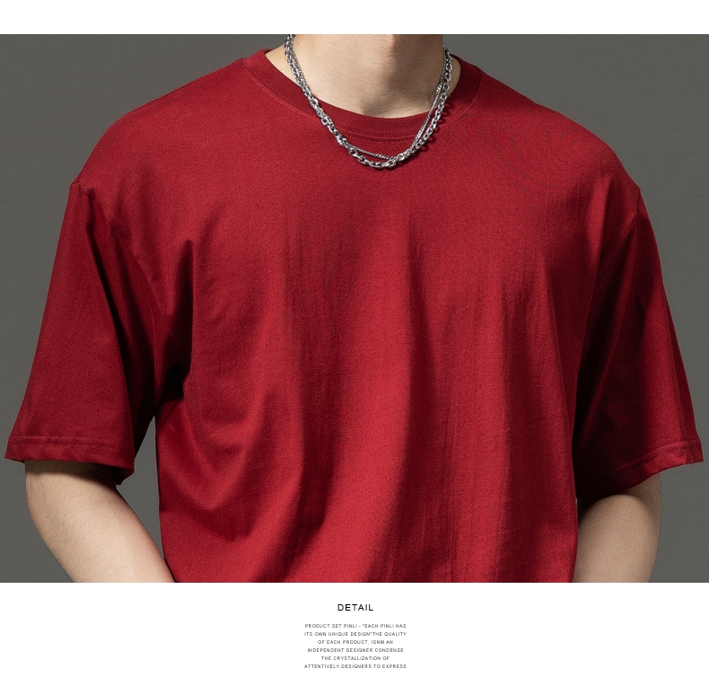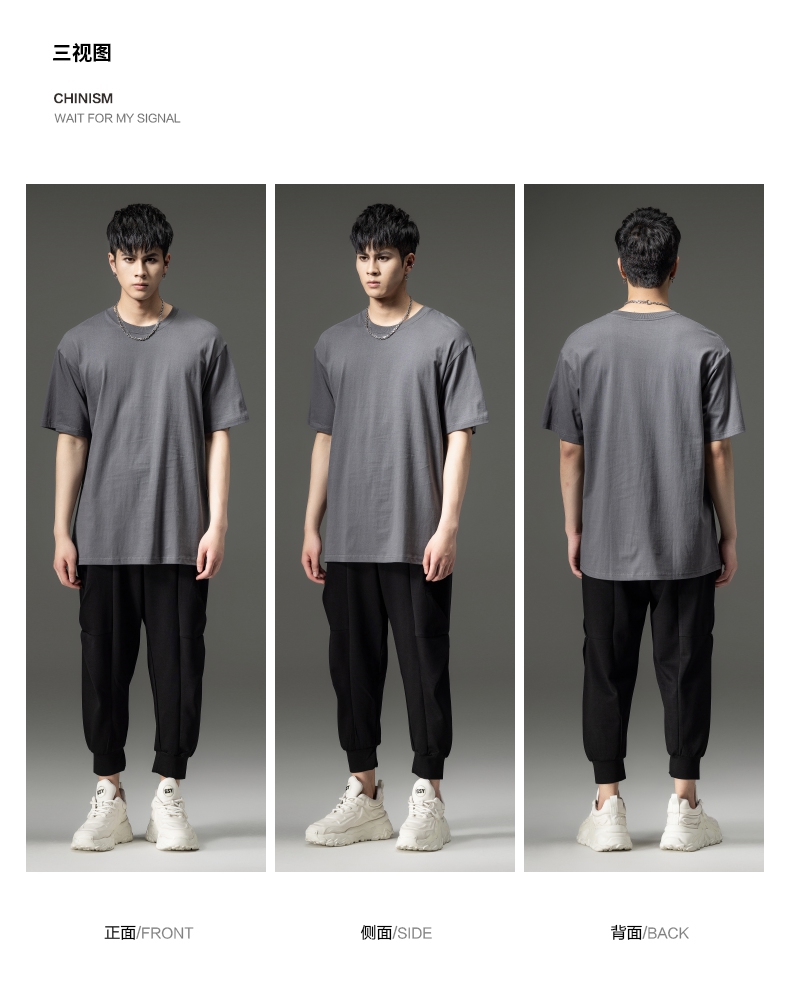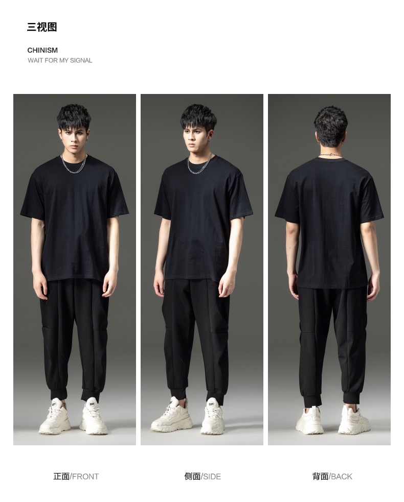 PINLI品立夏季新款男士圆领落肩纯色短袖T恤上衣GD232111322
