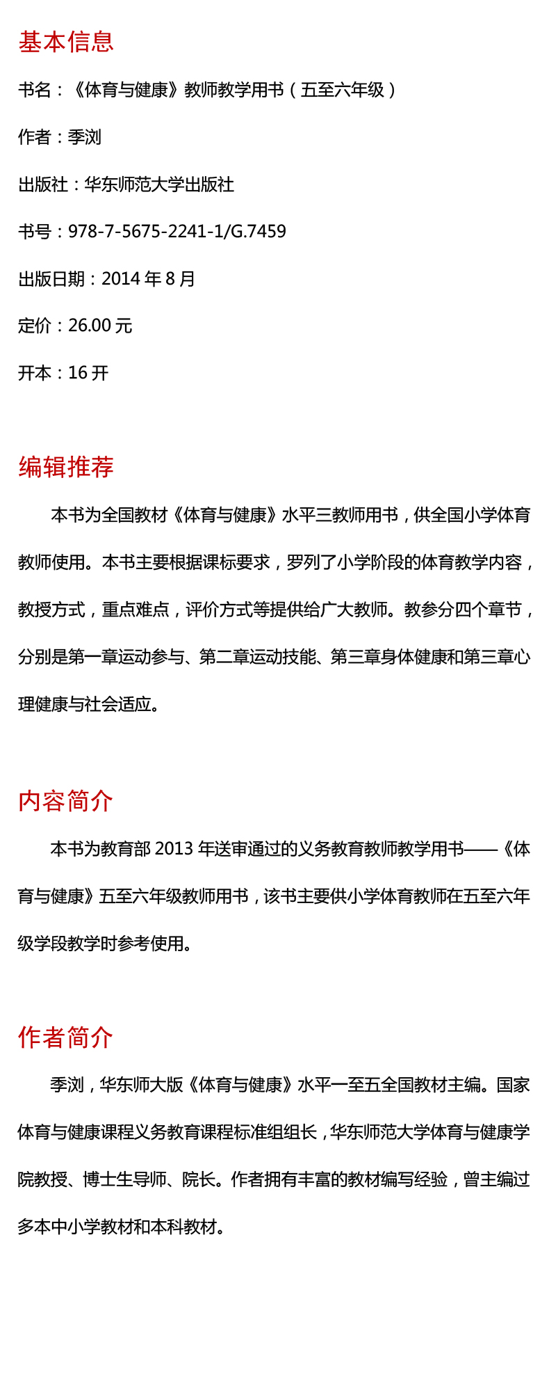 《体育与健康》教师教学用书 五至六年级 水平三 义务教育教师教学用书 正版 华东师范大学出版社