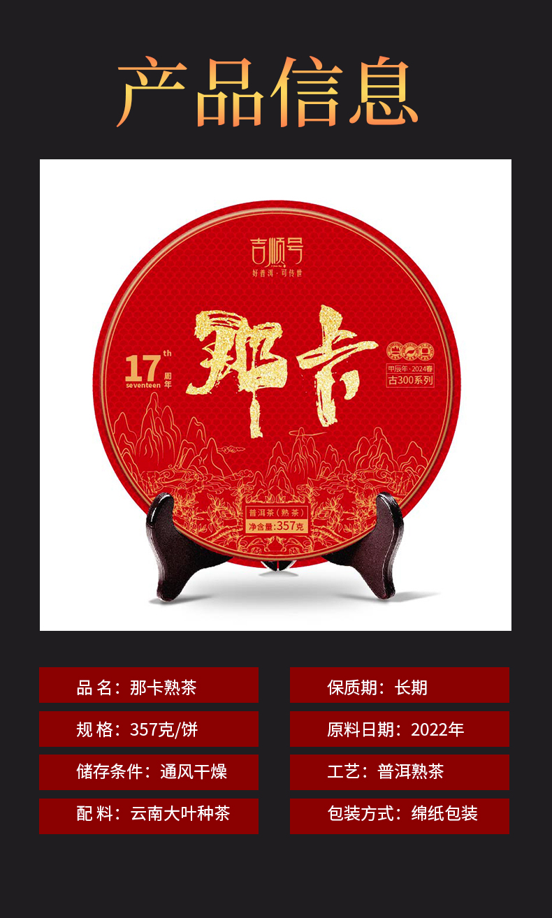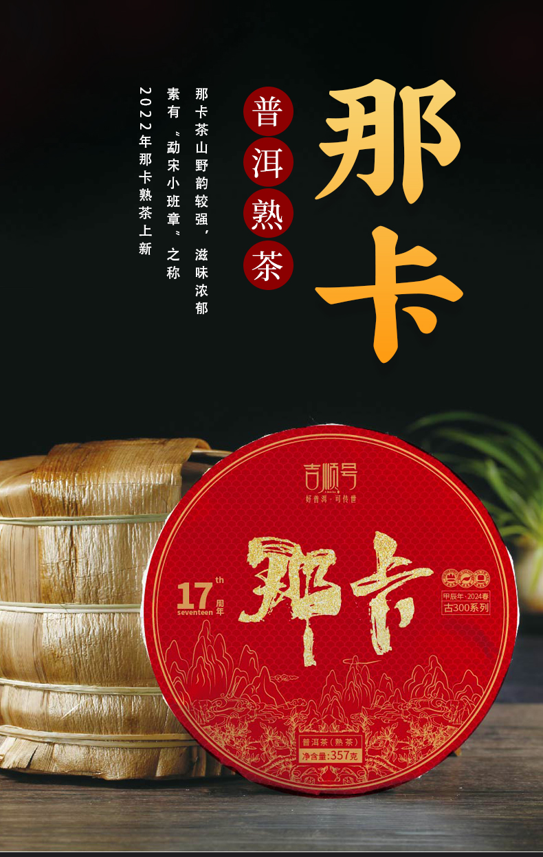 2022年古树普洱茶《那卡》熟茶饼357克*7饼/提笋壳包装