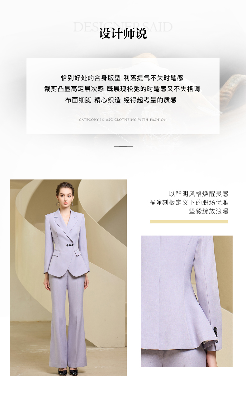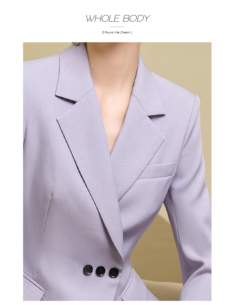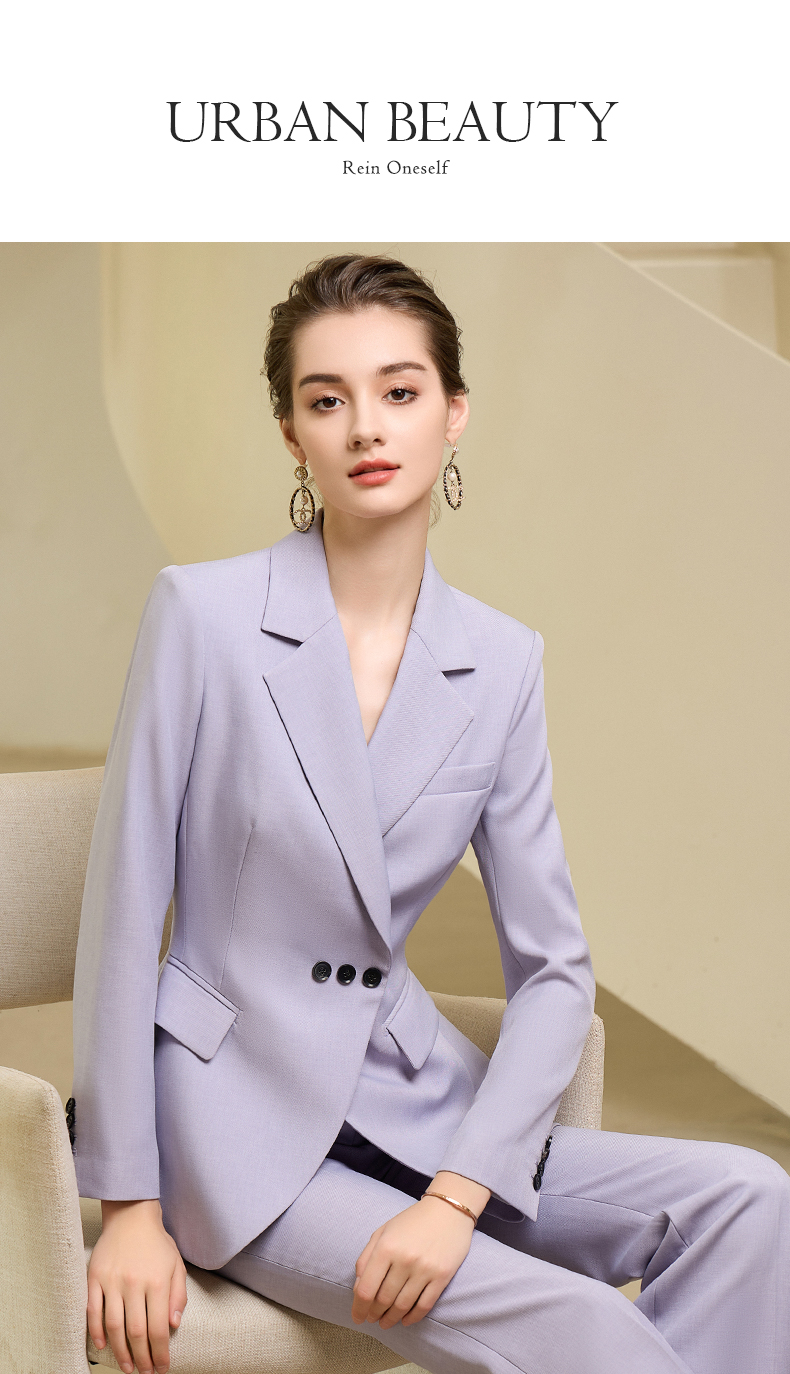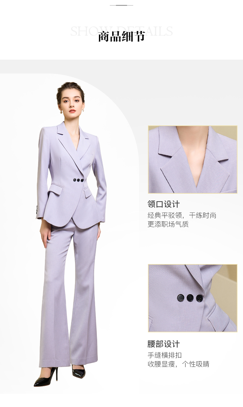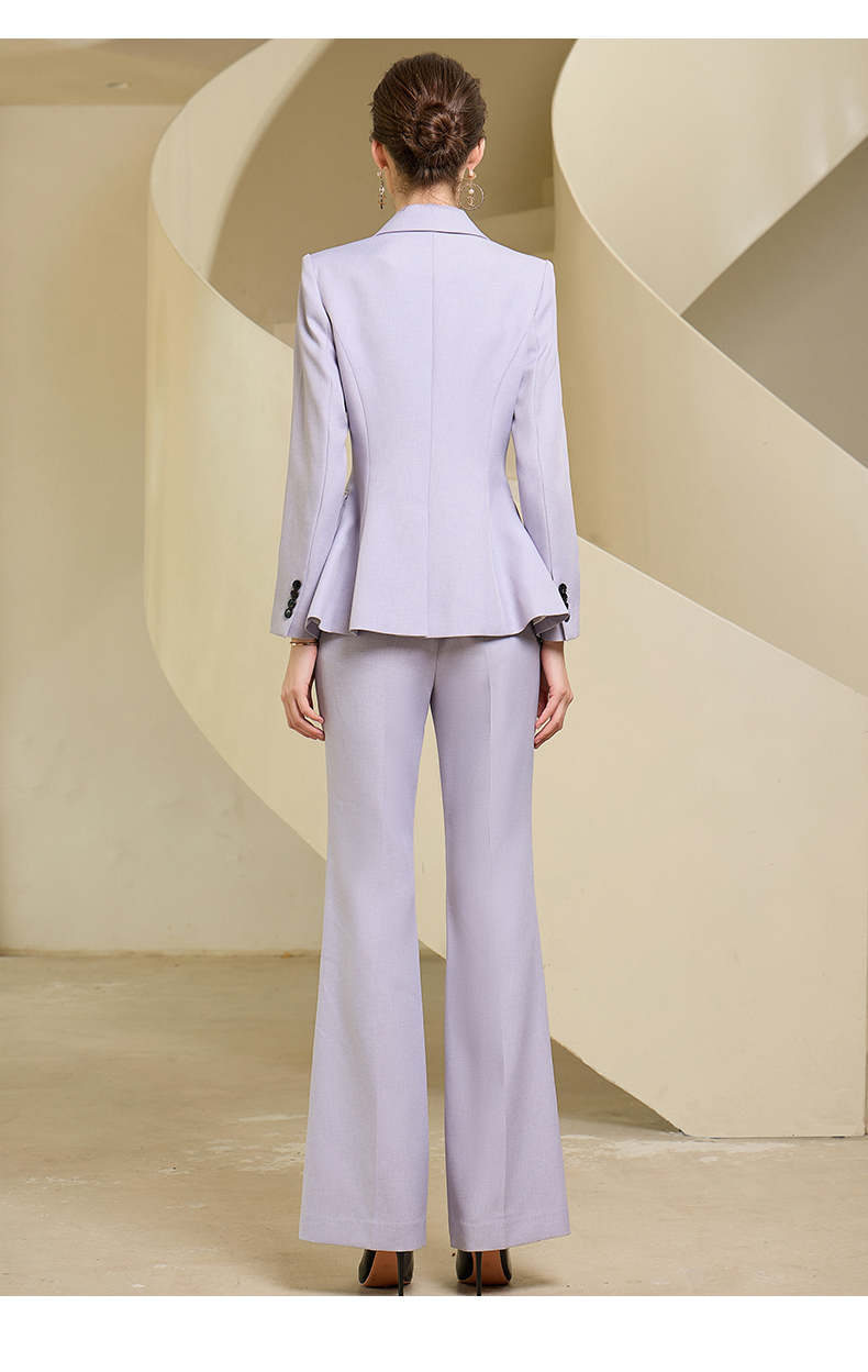 高端紫色西装微喇长裤套装主持人上镜收腰西装