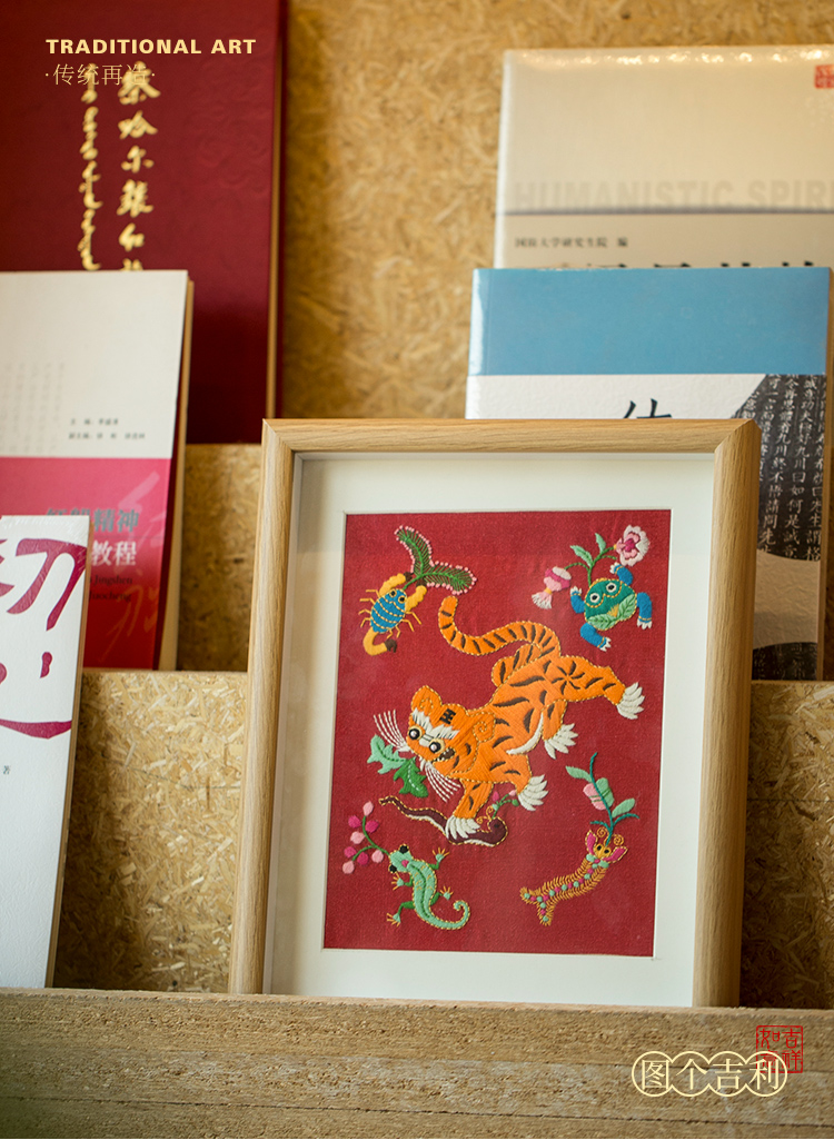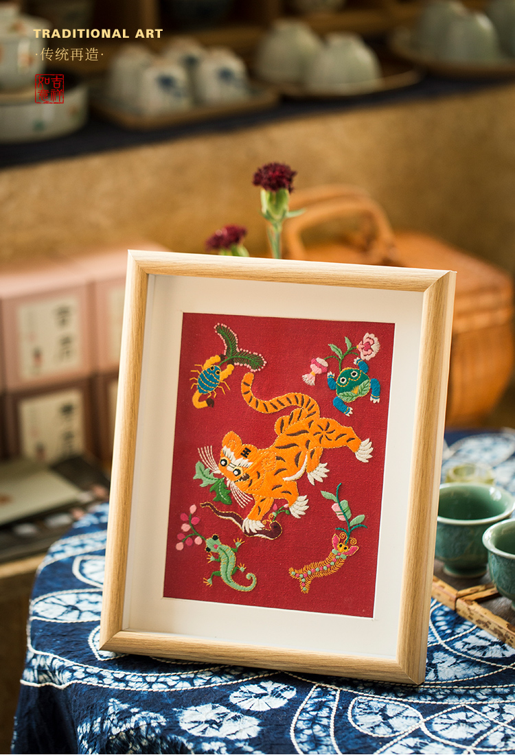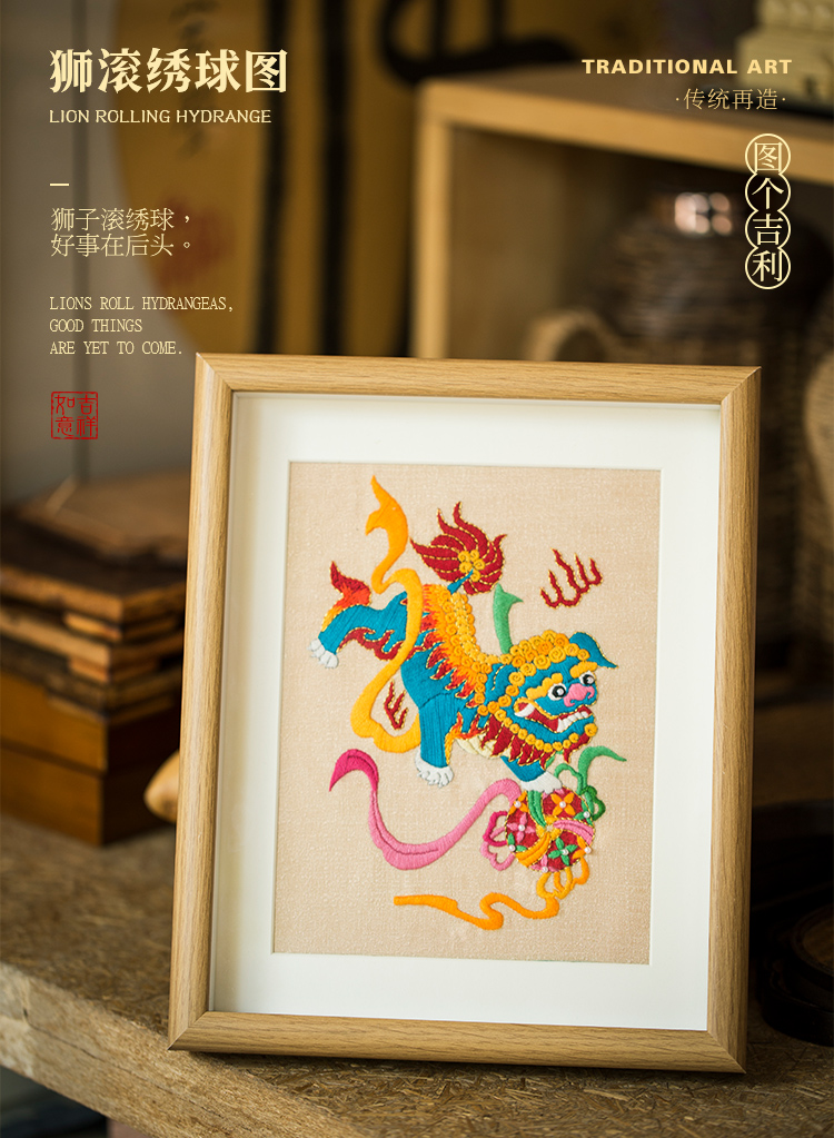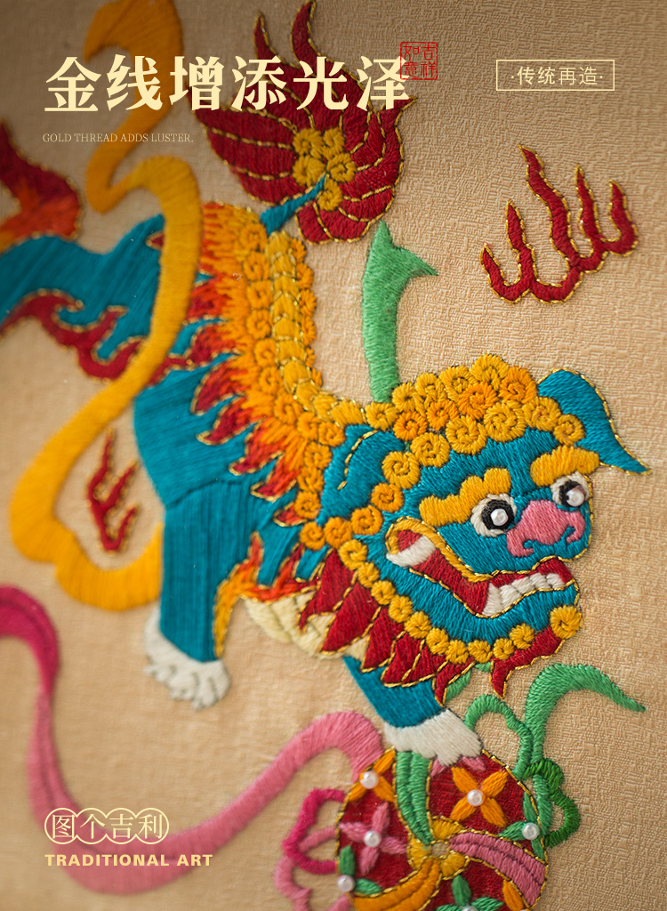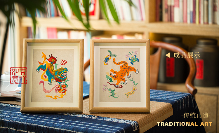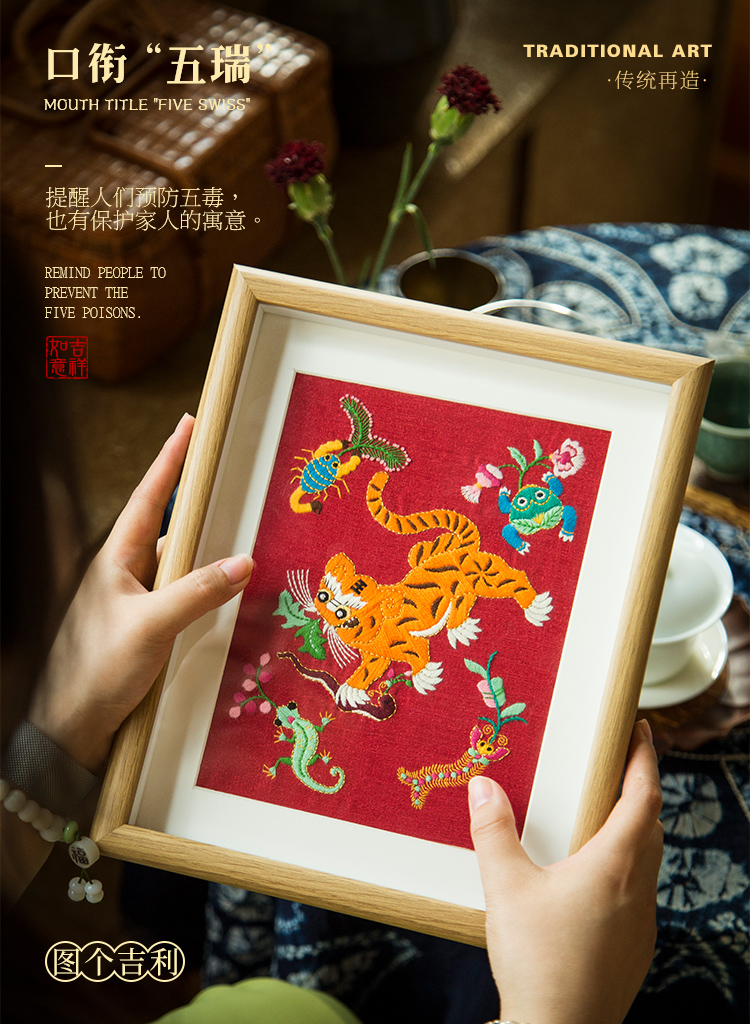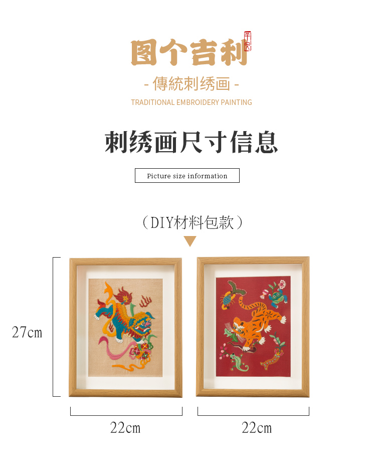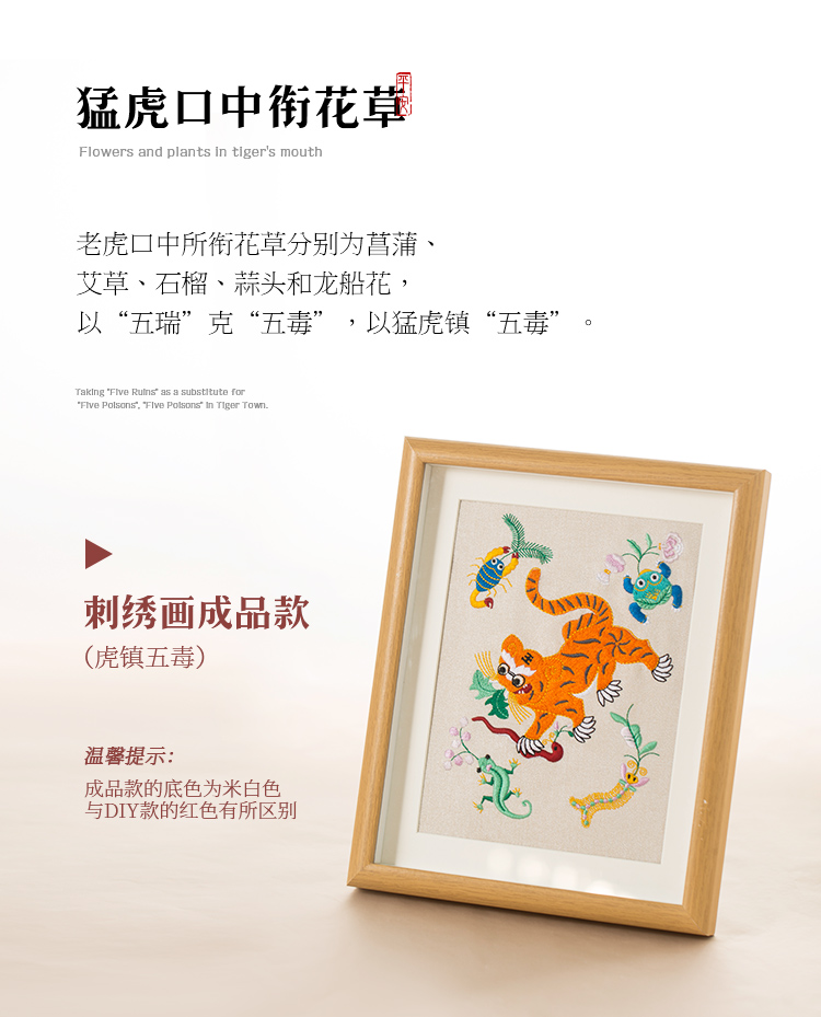 「图个吉利」虎镇五毒&狮子滚绣球 刺绣装饰画材料包