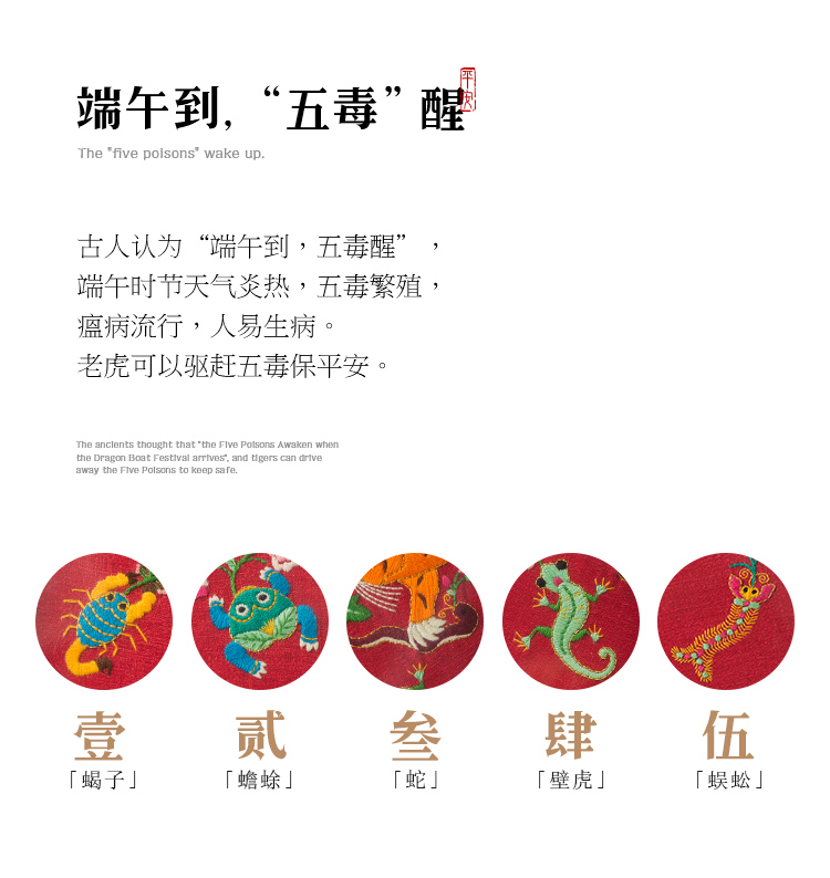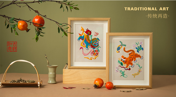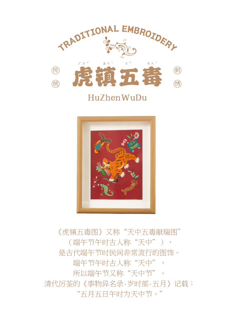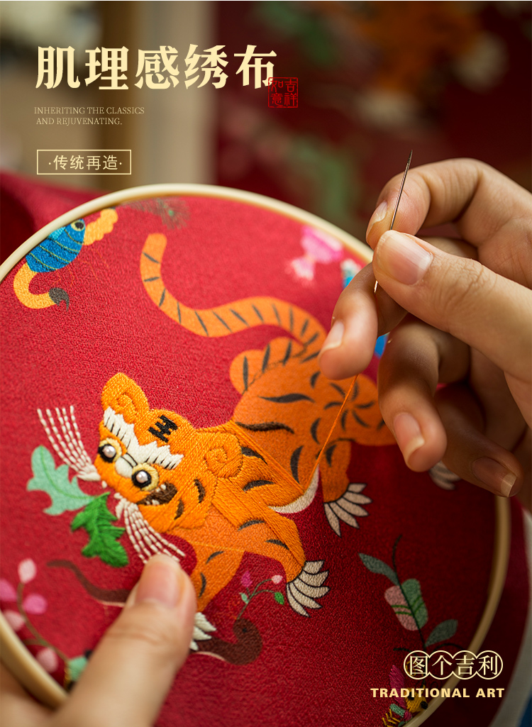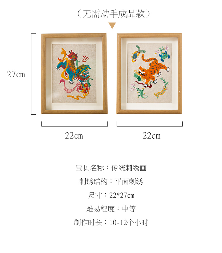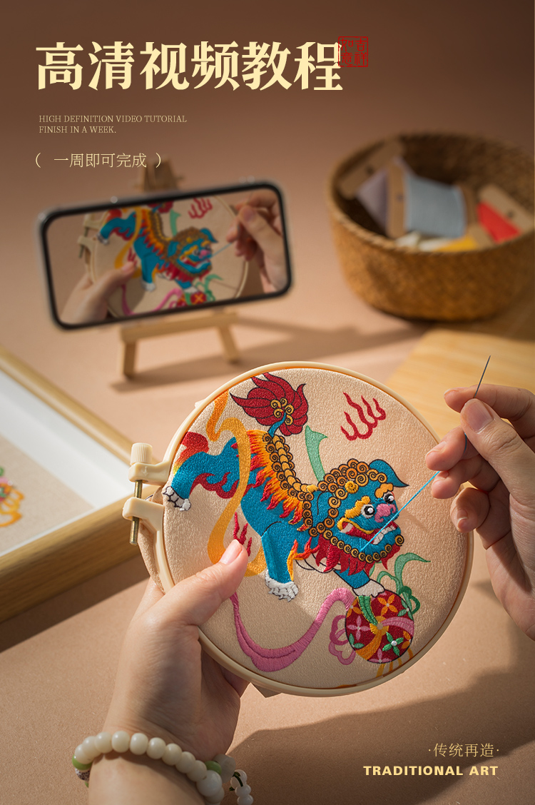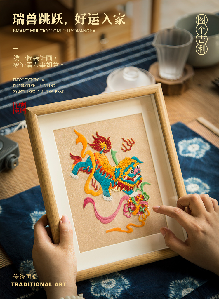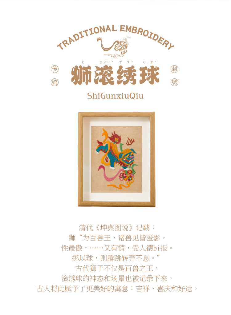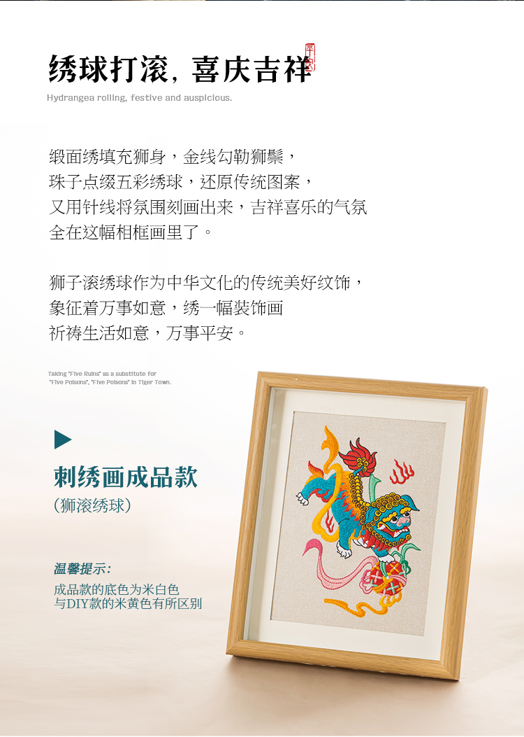 「图个吉利」虎镇五毒&狮子滚绣球 刺绣装饰画材料包