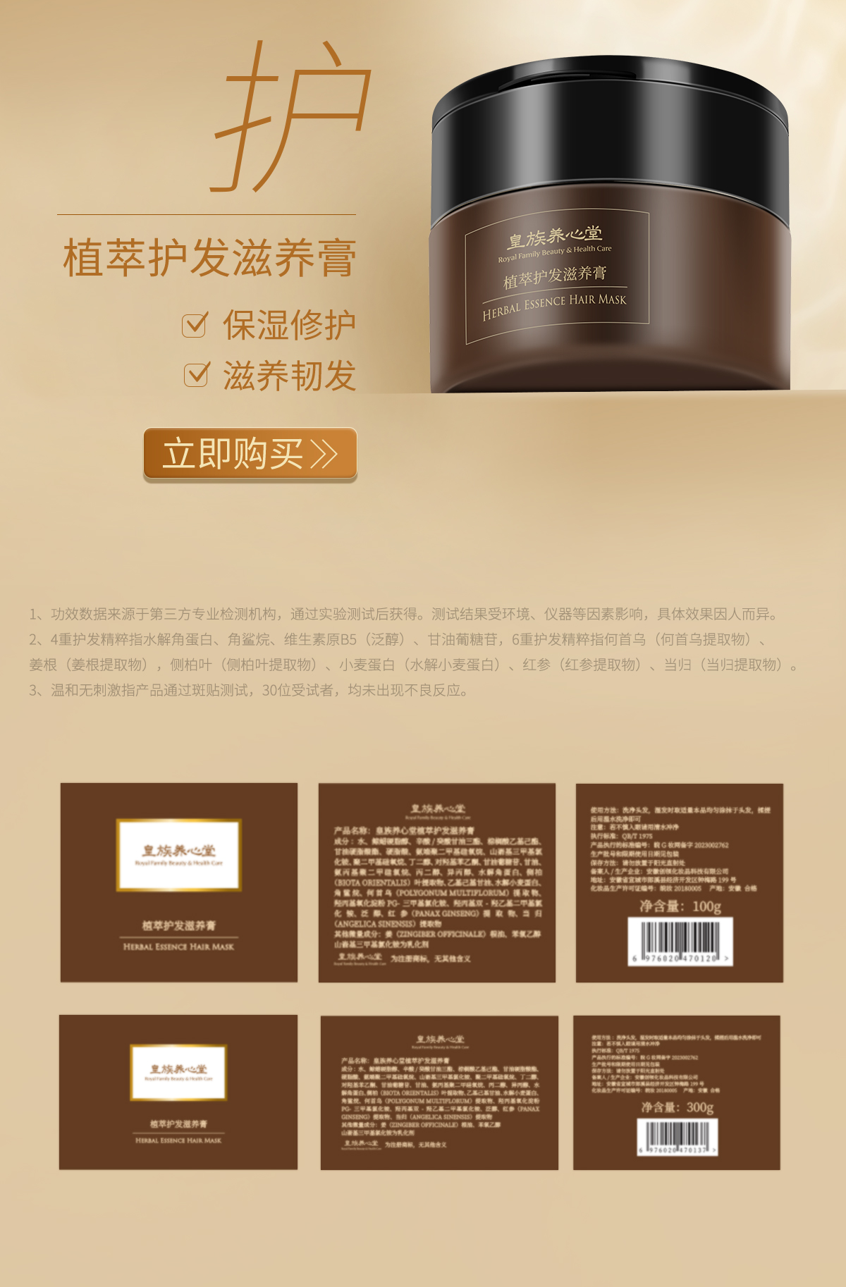 皇族养心堂植萃护发滋养膏发膜滋养修护强韧发丝柔顺光泽