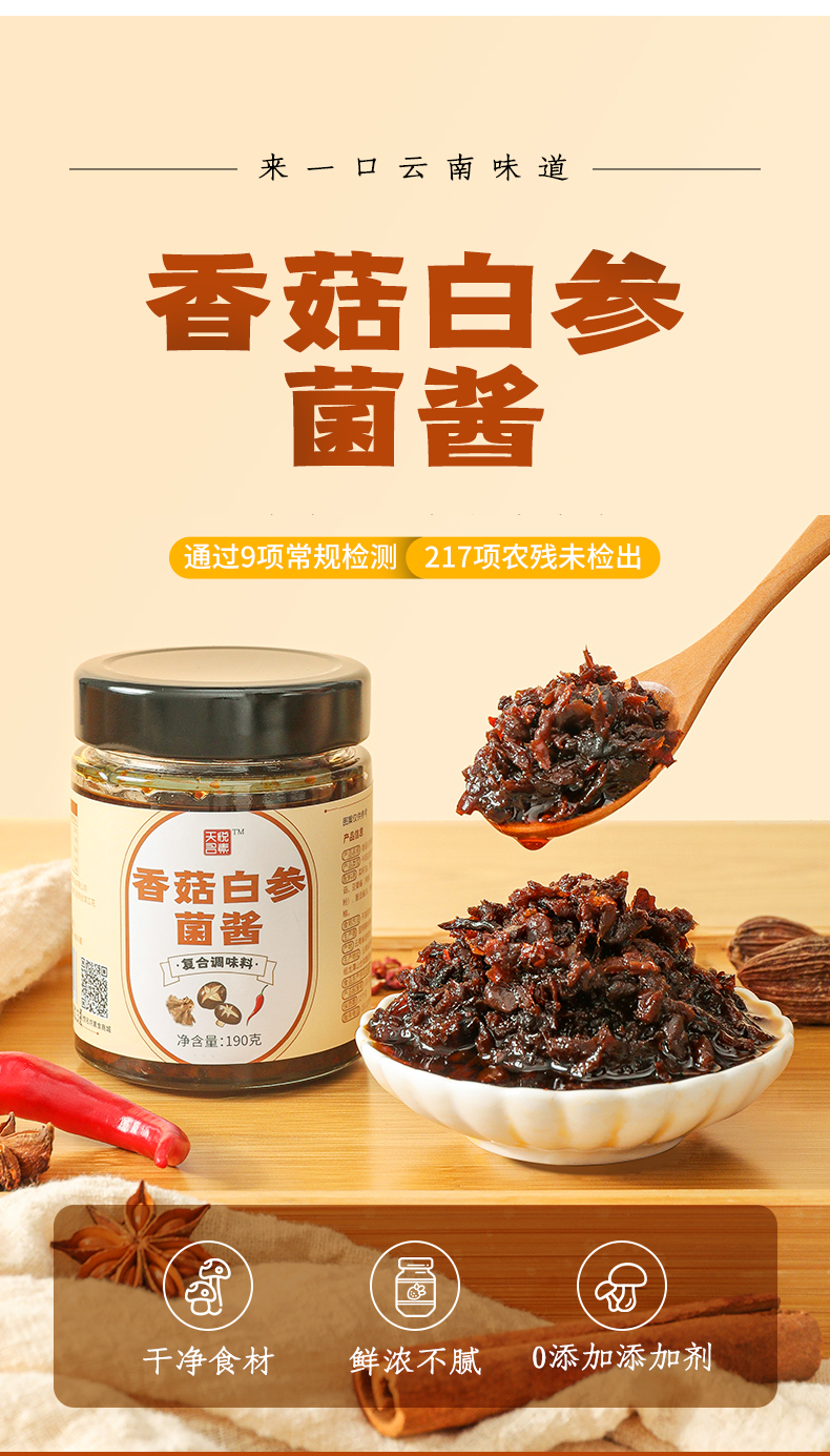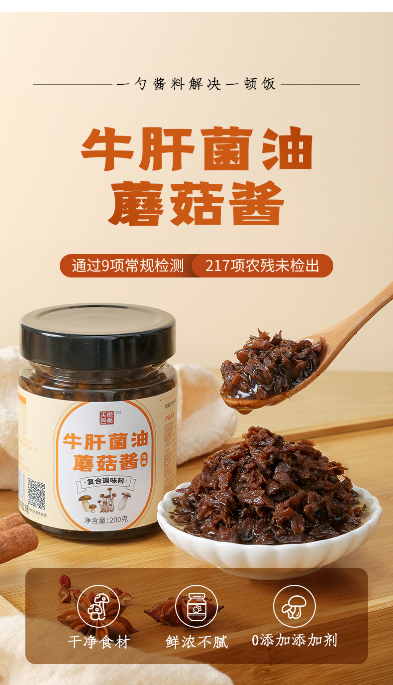 2瓶装牛肝菌油蘑菇酱 杏鲍菇牛肝菌酱 佐餐拌面麻辣小面酱 营养美味下饭 香菇白参菌酱 不含五辛纯素