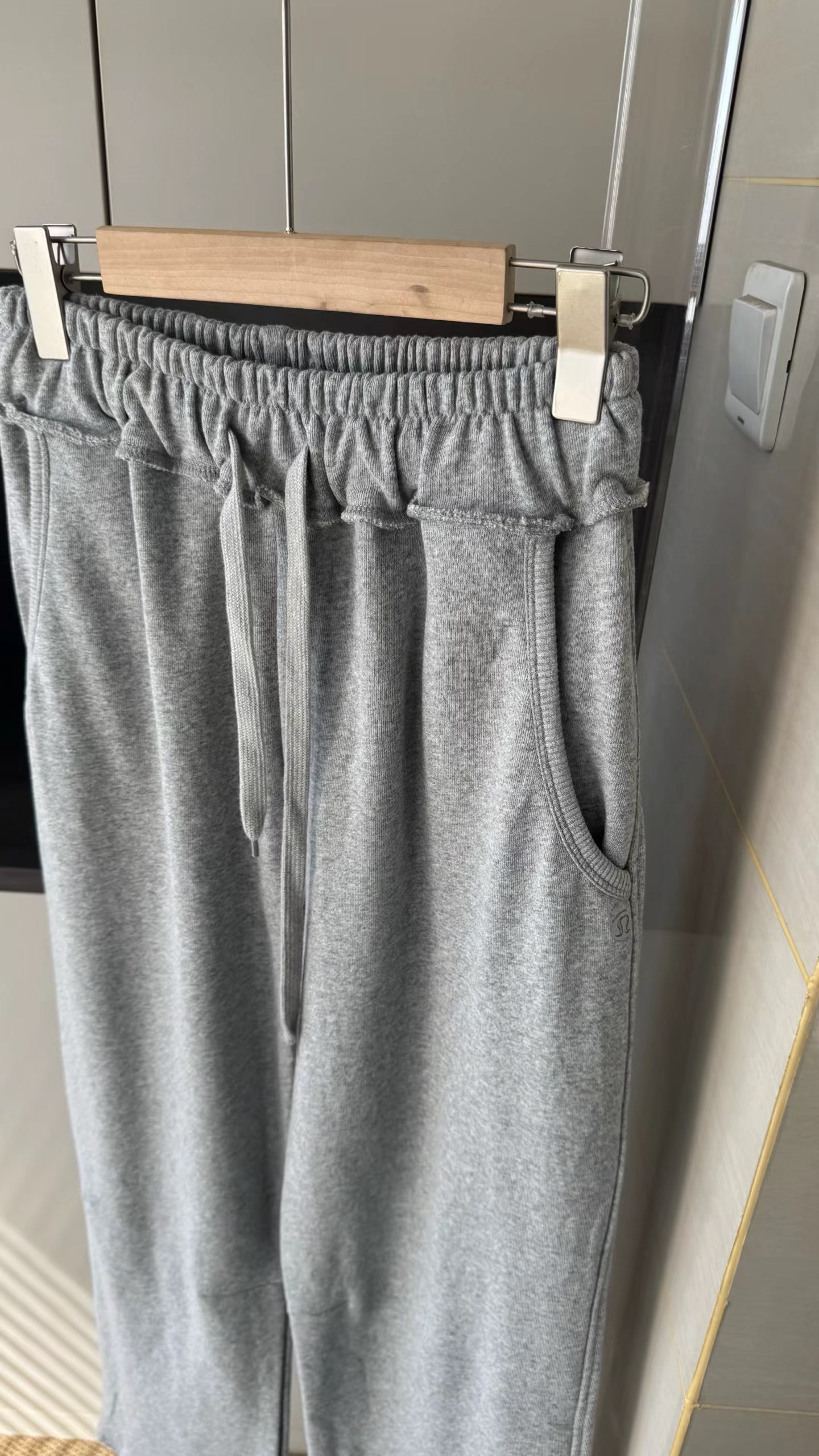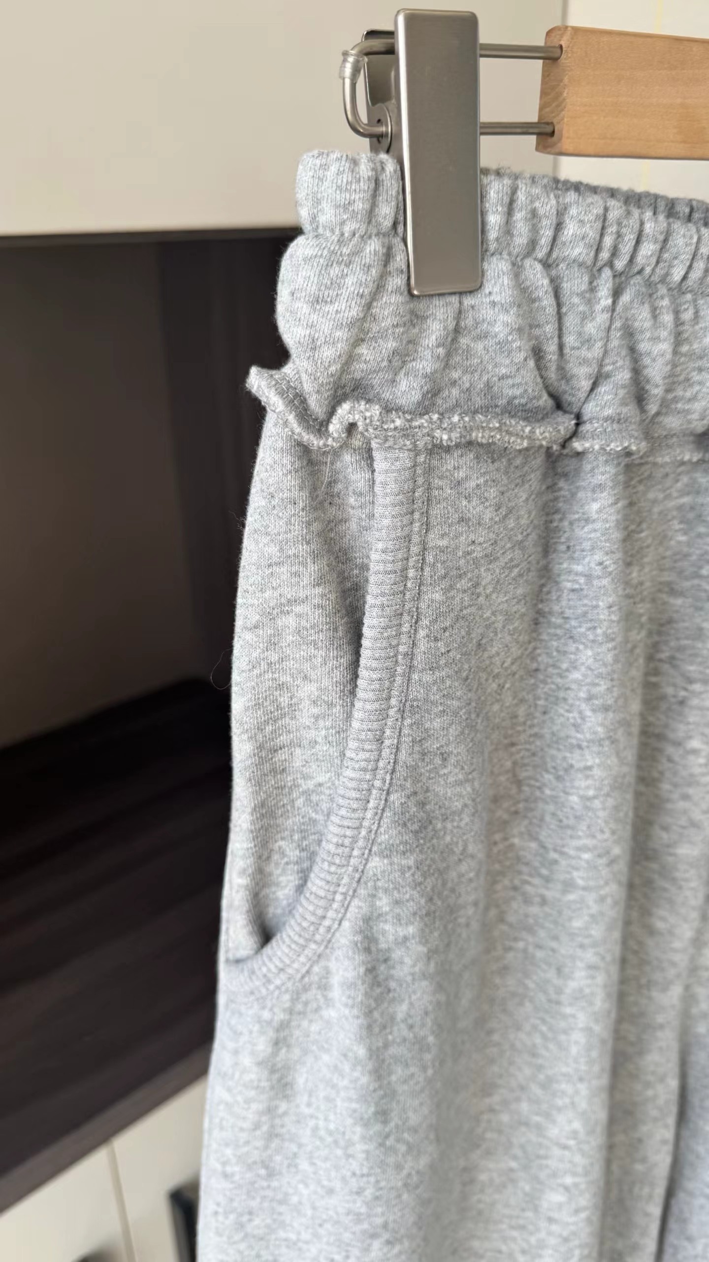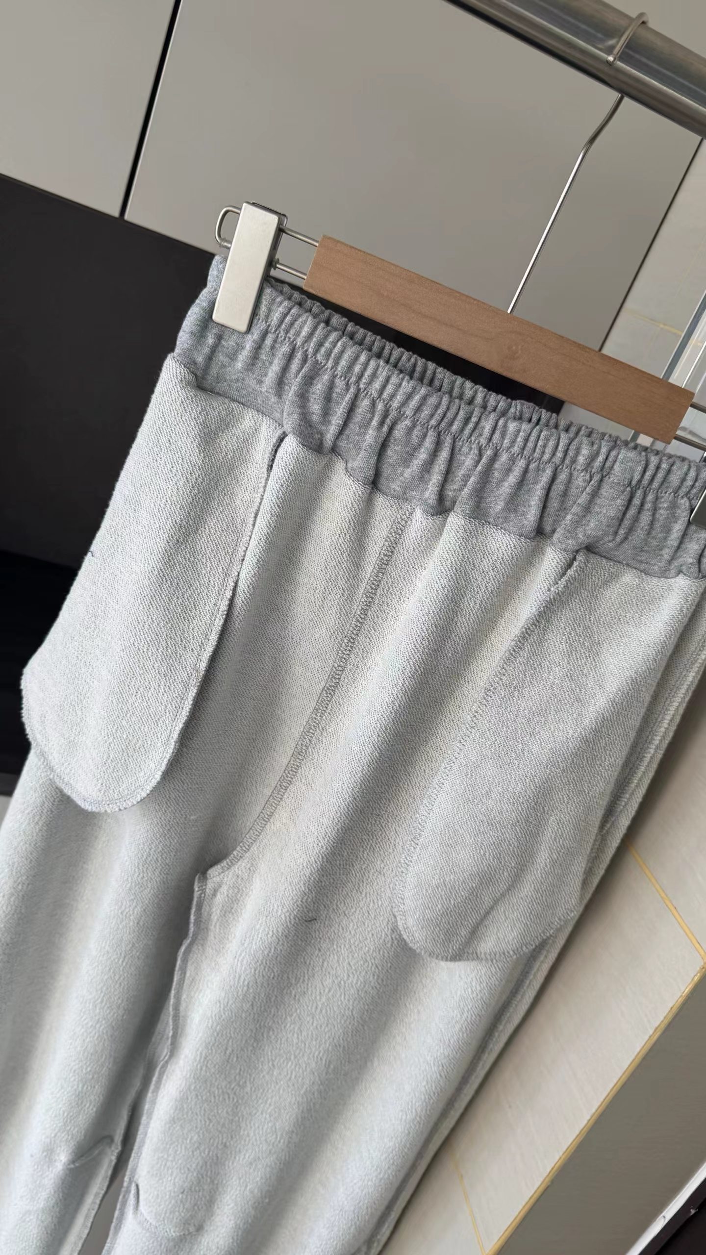 水洗毛圈拖地阔腿裤裤子宽松阔腿直筒版型。裤腿线条流畅,整体呈现松弛慵懒的“松弛感”风格,不贴腿,对臀宽、大腿粗等梨形身材问题有ji佳的修饰效果长款拖地/堆堆裤。裤长及地,搭配休闲鞋可自然堆叠,自带随性氛围感,适合拉高身材比例。松紧腰+抽绳设计。采用高弹力松紧腰,搭配同色系抽绳,既能自由调节腰围,又能提升舒适度,避免勒腰。舒适针织卫裤面料。从图中质感看,应为柔软的棉混纺针织材质,垂坠感好,不易起皱,兼具透气性与亲肤感。整体设计简洁干净,无过多繁杂装饰,主打极简gao级感。麻灰色。属于基础色,耐脏且质感gao级,不挑肤色。内搭纯色T恤/背心,外叠穿条纹衬衫,休闲随性。