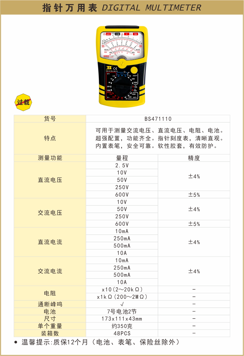 波斯 指针万用表 BS471110
