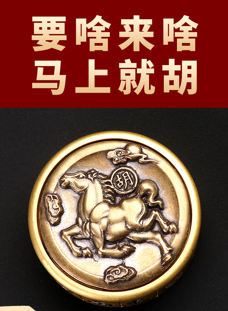 黄铜马上胡麻将手把件