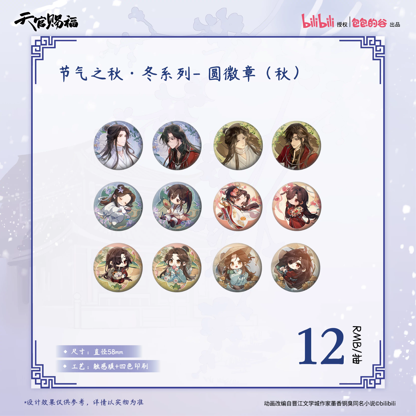 天官赐福 节气之秋冬(秋) 徽章 12包/盒 国谷 耽美