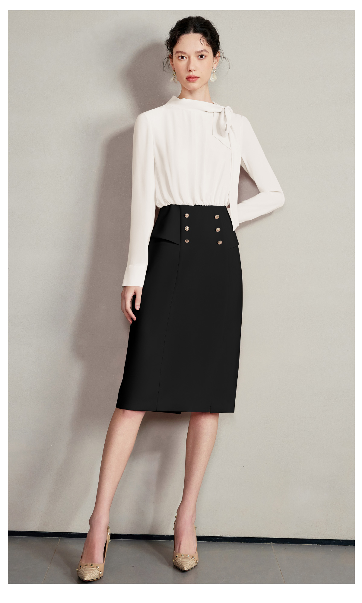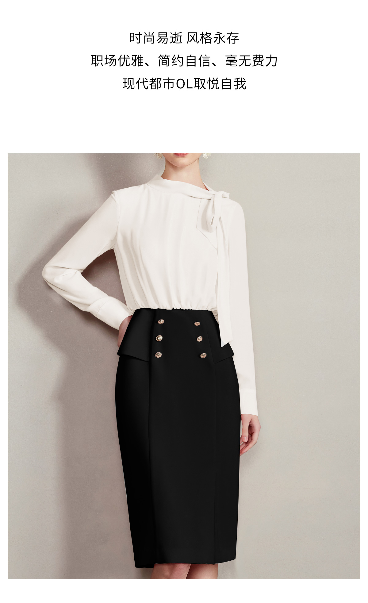 AD蝴蝶结飘带衬衣长袖连衣裙女职业通勤气质面试正装商务经理工作