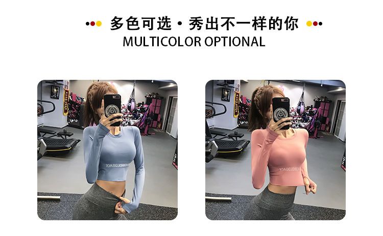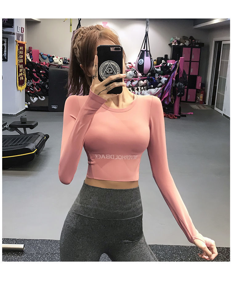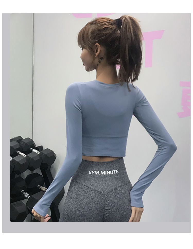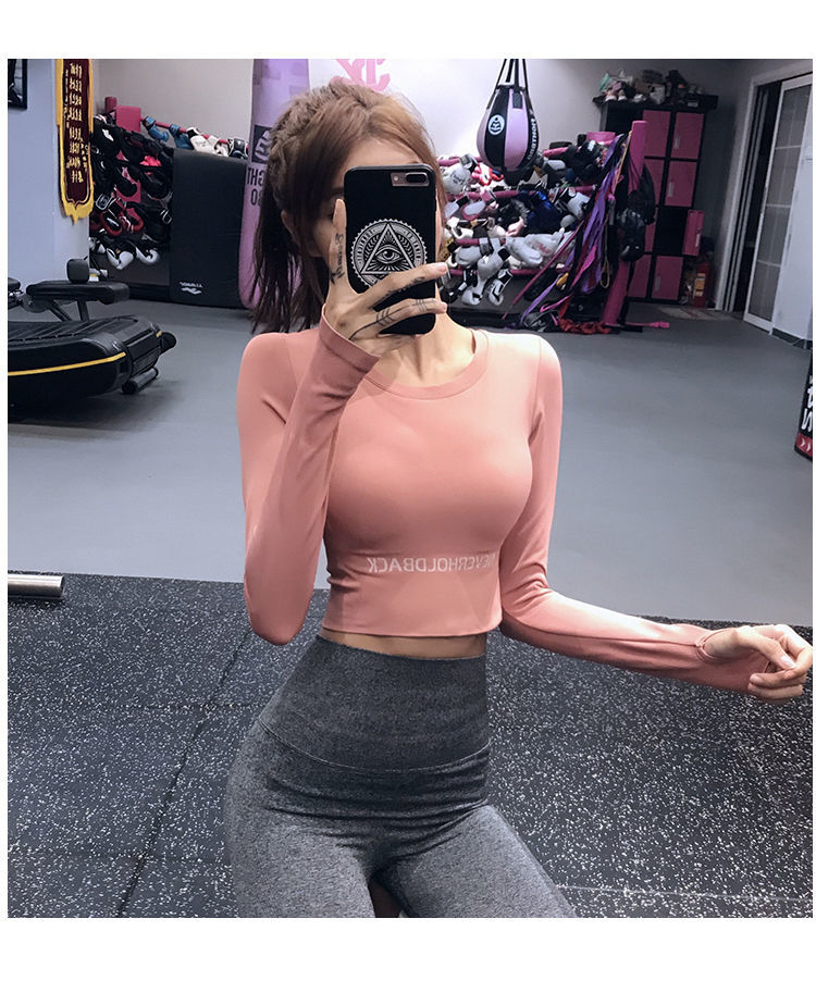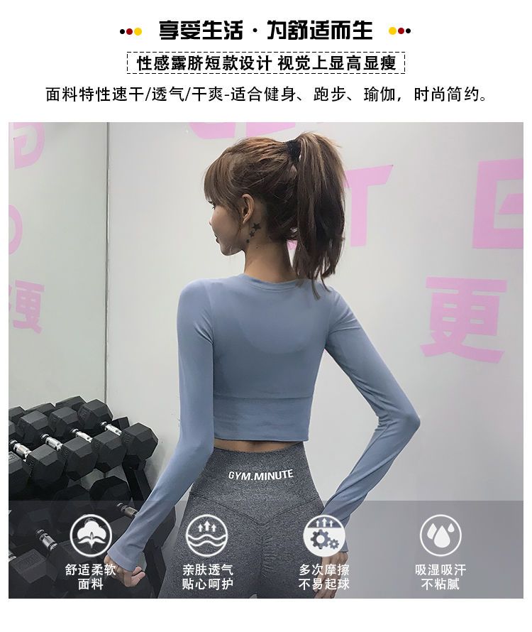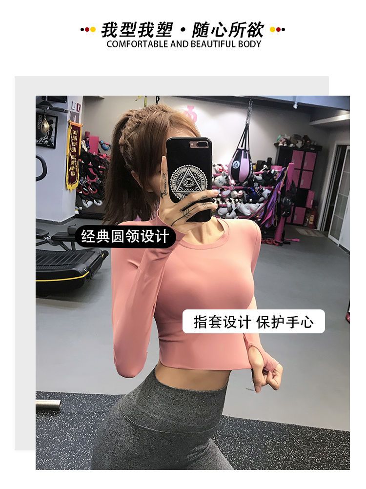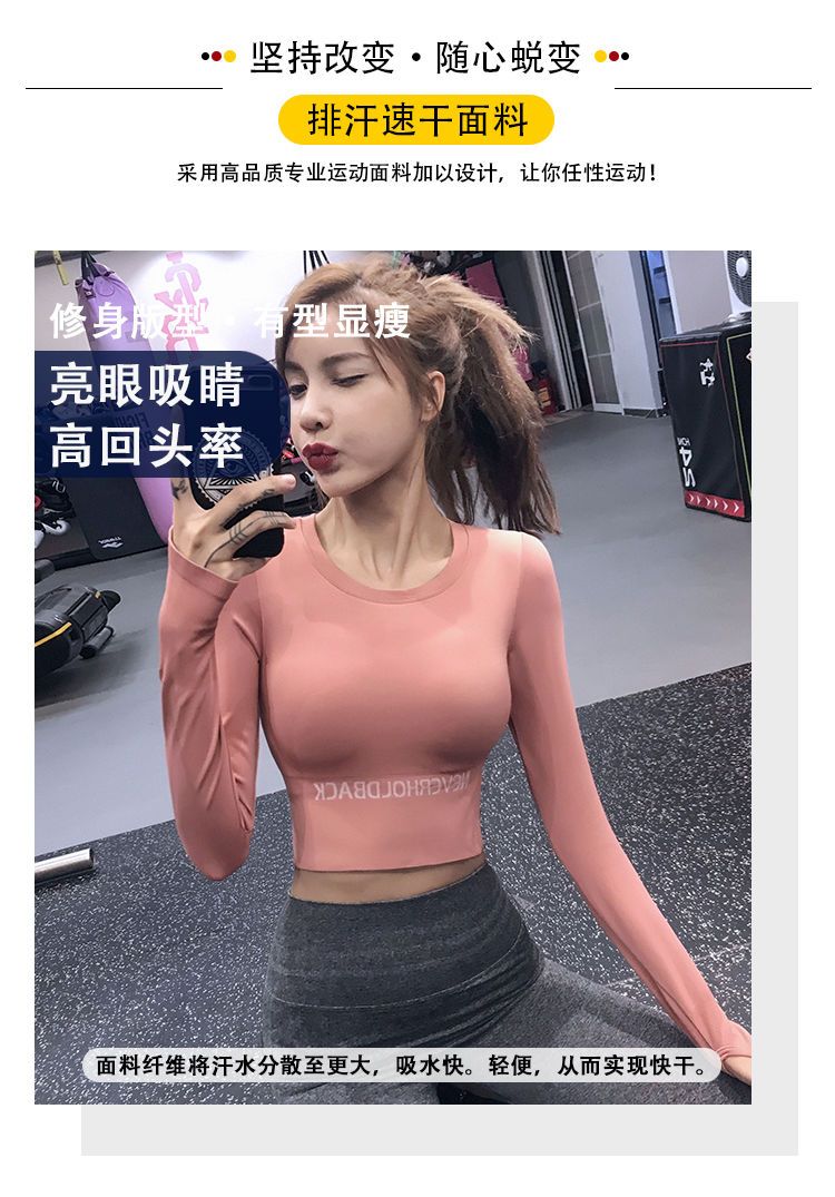 健身女孩含胸垫弹力紧身瑜伽服跑步上衣显瘦运动长袖速干t恤秋冬