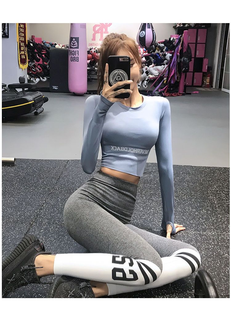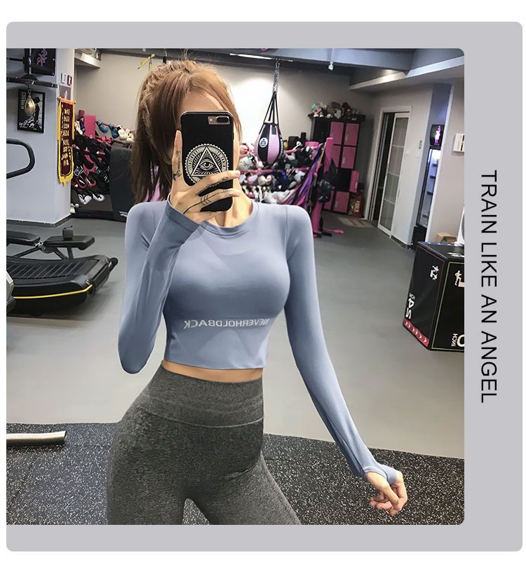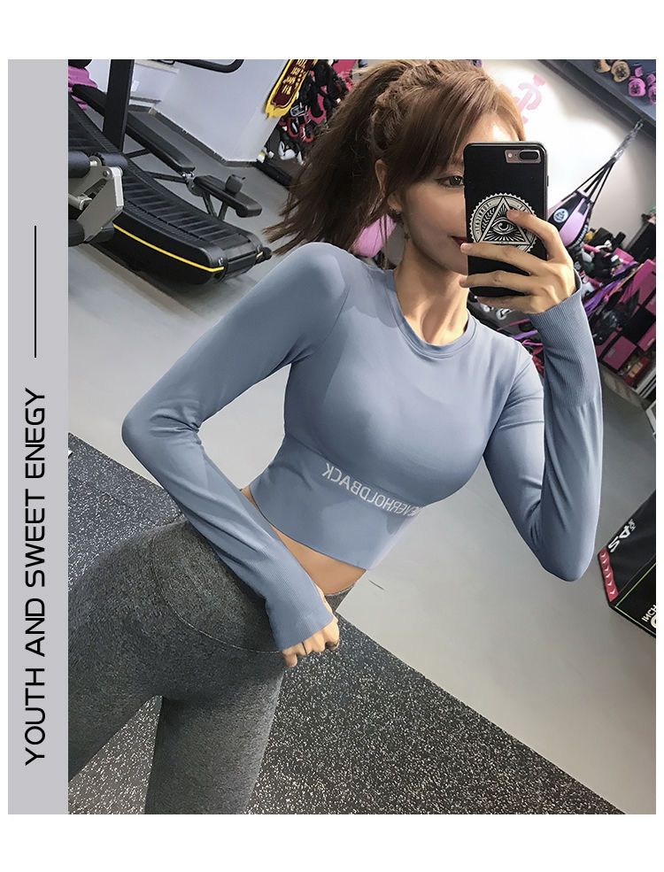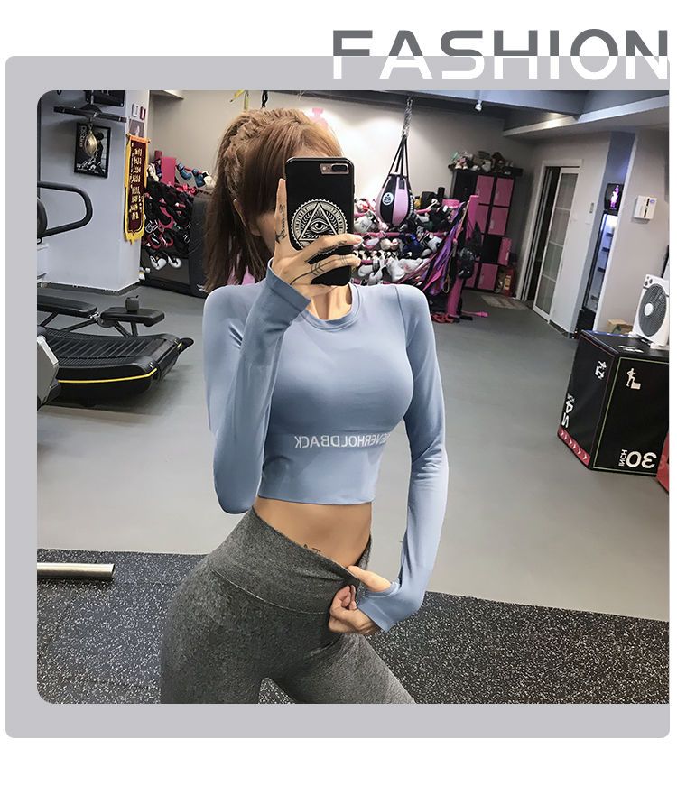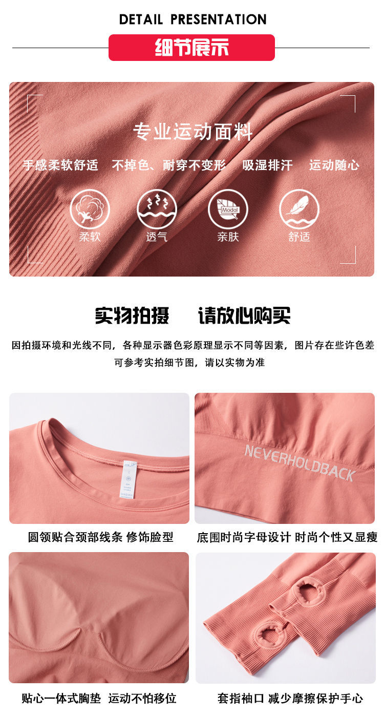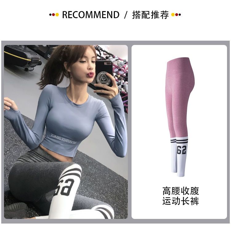 健身女孩含胸垫弹力紧身瑜伽服跑步上衣显瘦运动长袖速干t恤秋冬
