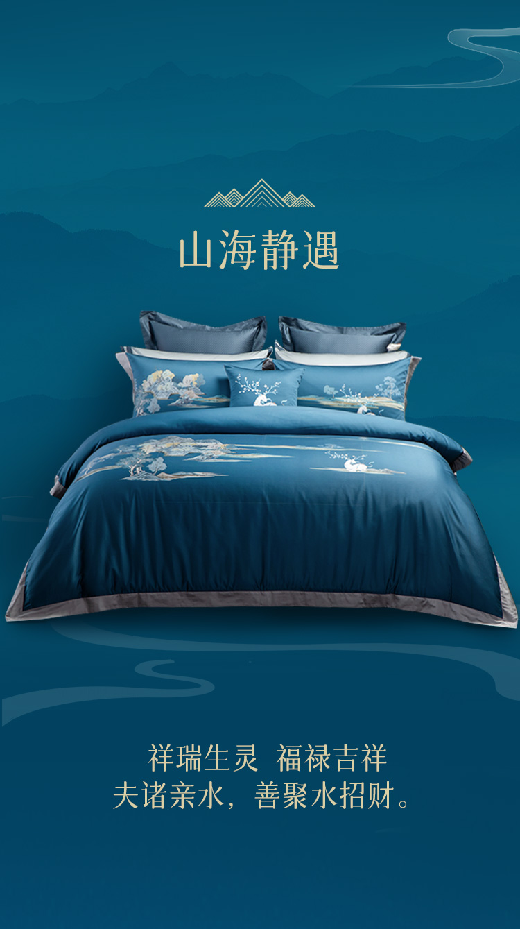 多喜爱IP款 山海经 60S贡缎长绒棉四件套(昭瑶 山海静遇 山灵曼路 山川意境 云海文鳐 青莲云鳐 云深之处 夜阑谣 墨色江山)