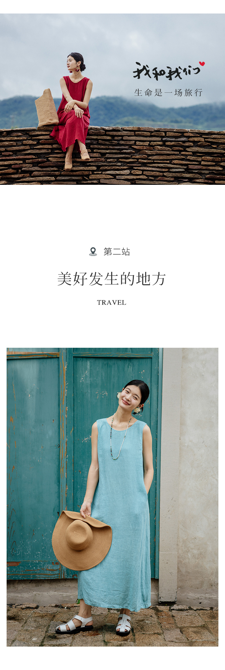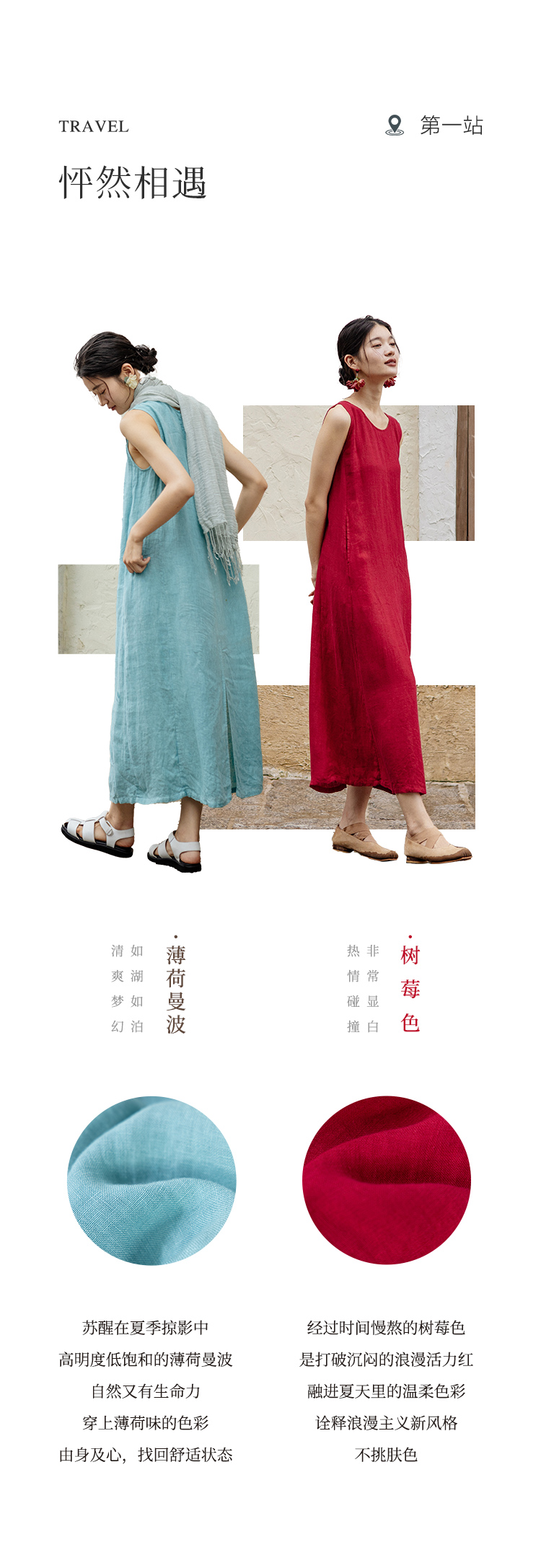 以天然亚麻为载体,融合热烈色彩与自在剪裁为身在城市、心怀远方的女性提供兼具美学与舒适的旅行着装