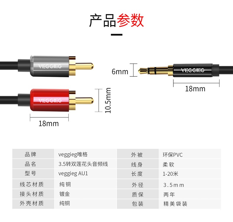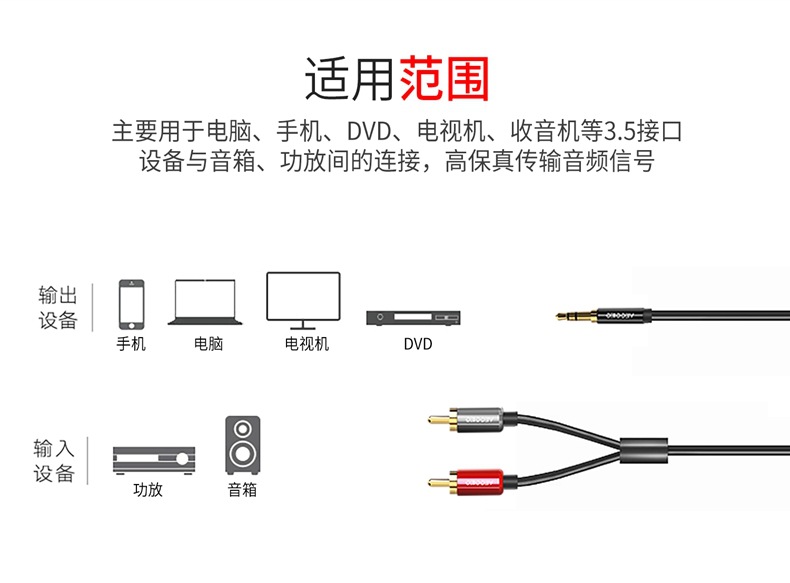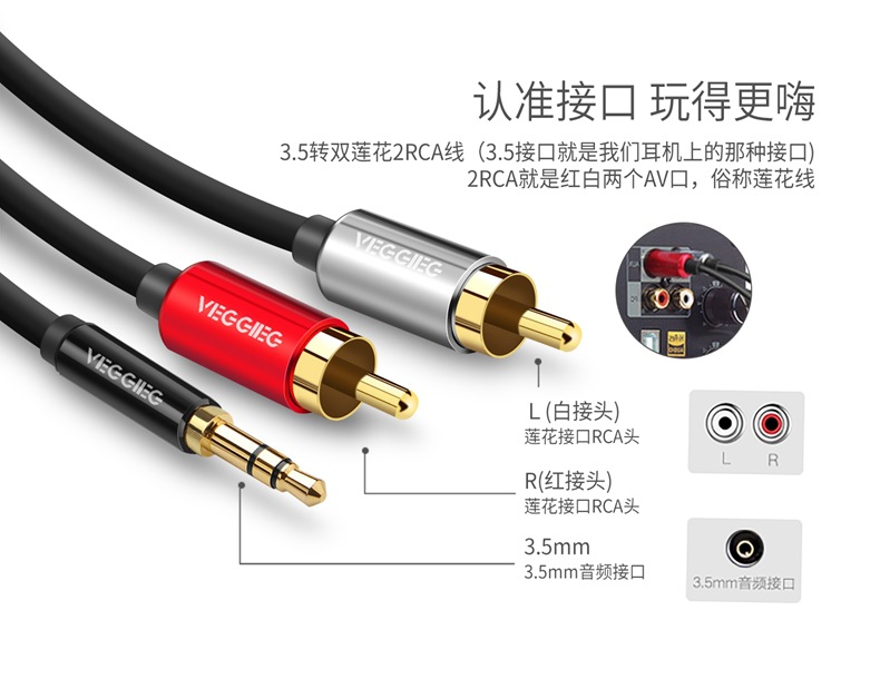 严选【双莲花音频线】唯格3.5mm音频AV线转接电脑电视线一分二音频线1条
