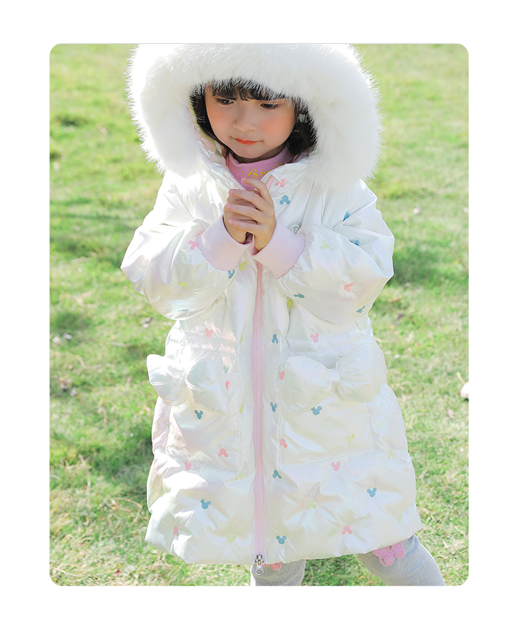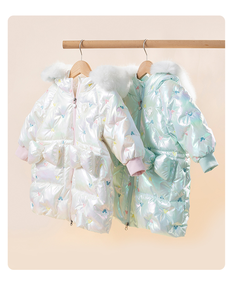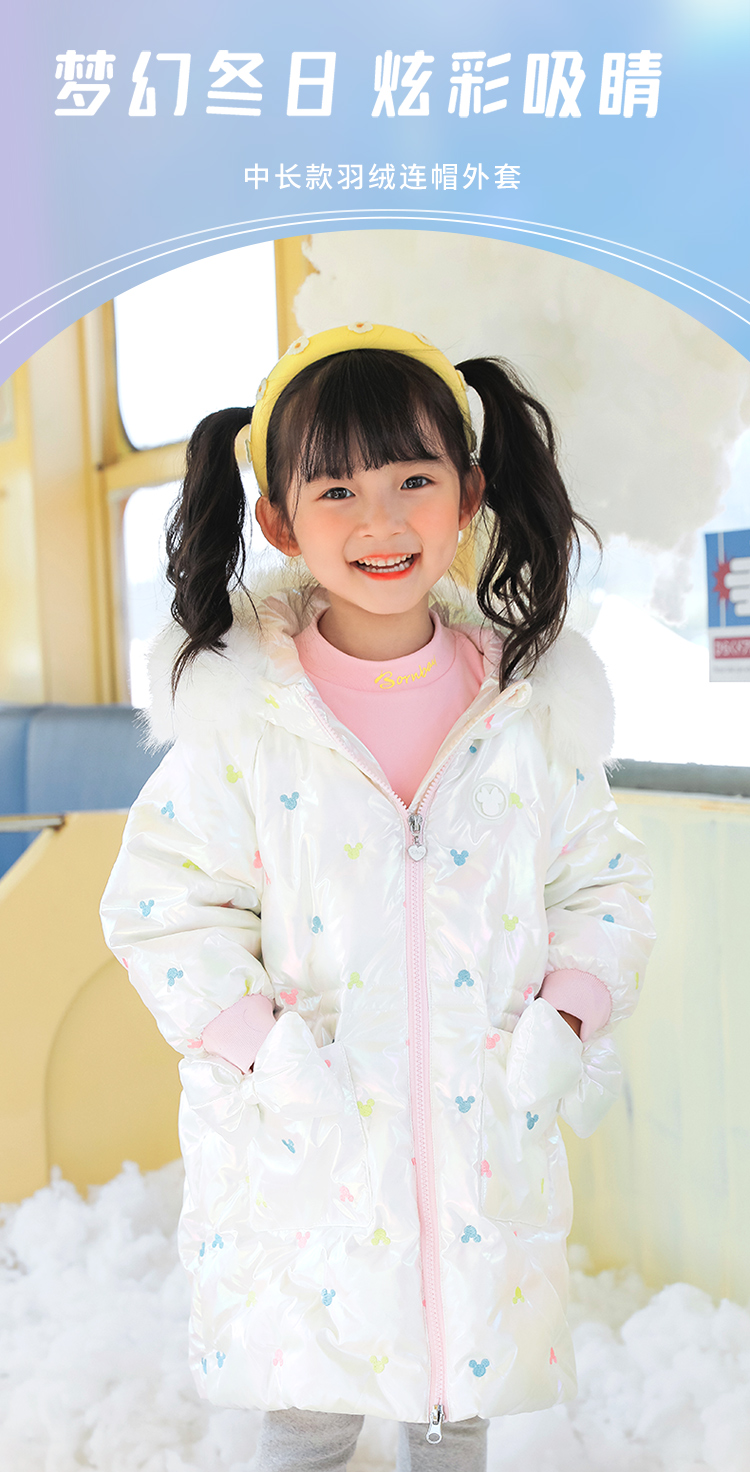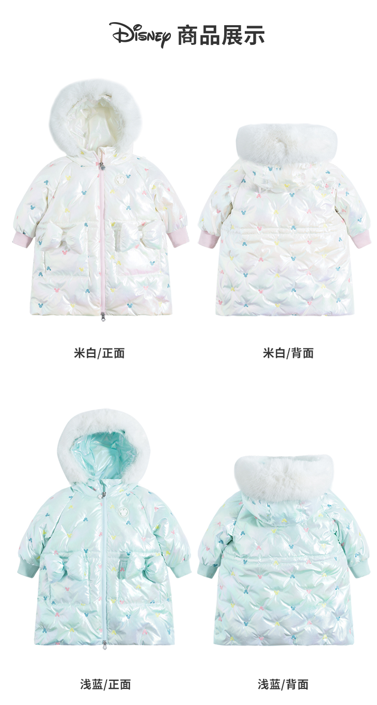 迪士尼童装女童羽绒服甜美米妮中长款连帽羽绒服舒适保暖冬新品224S1786