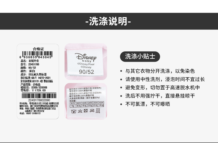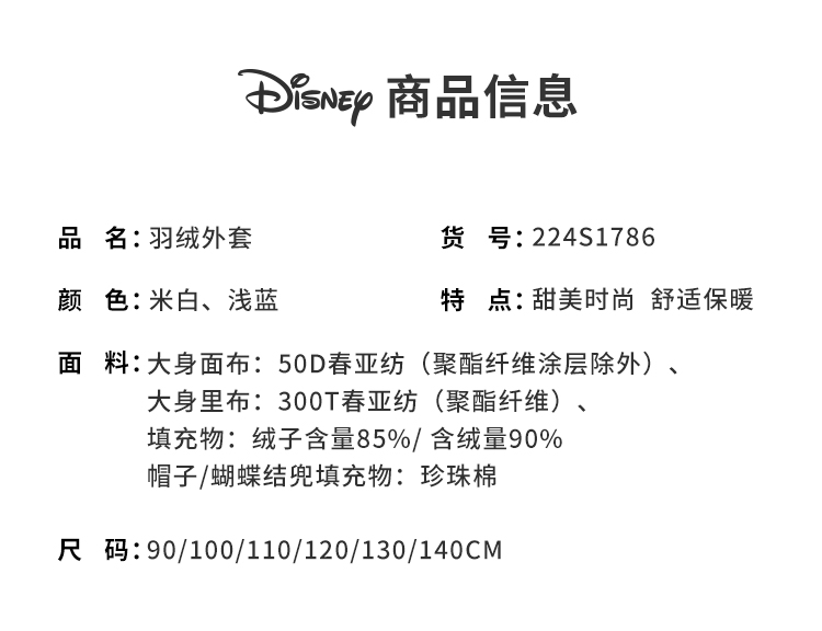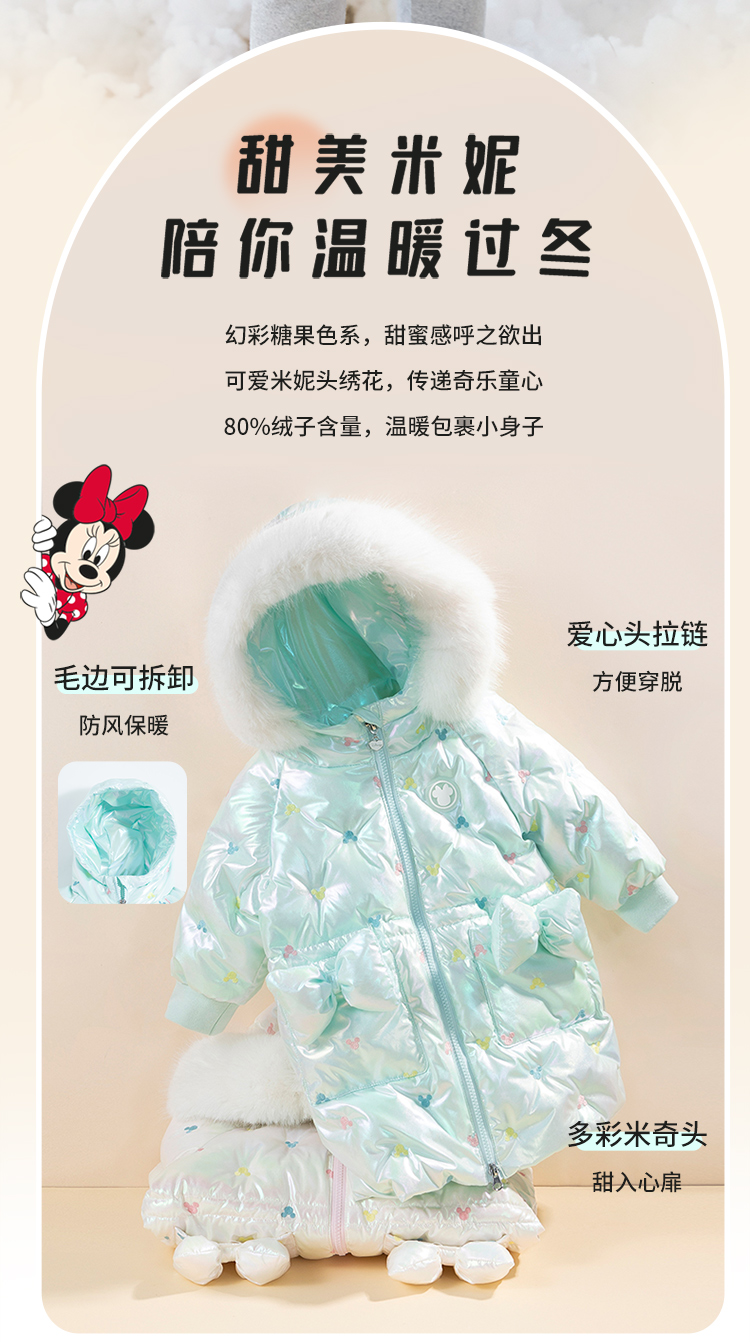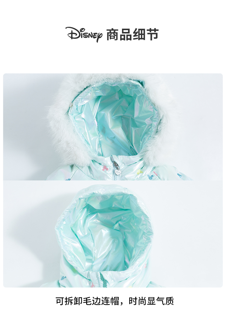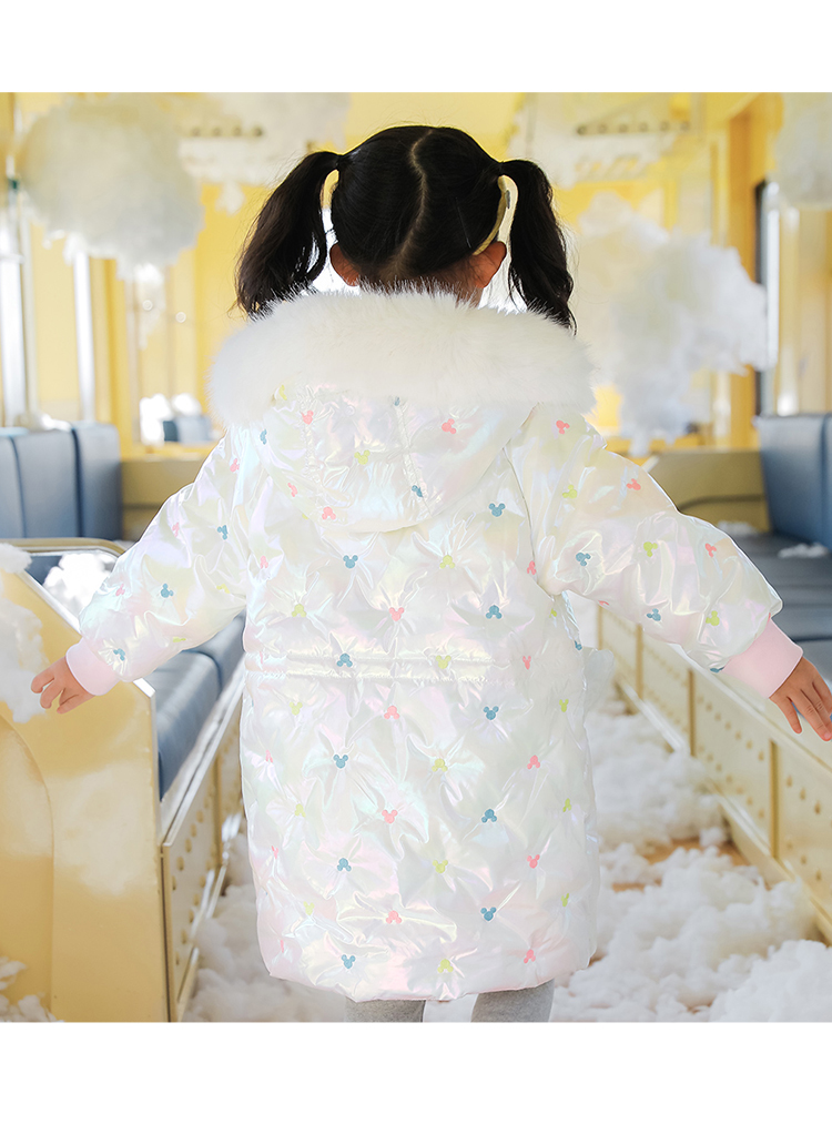 迪士尼童装女童羽绒服甜美米妮中长款连帽羽绒服舒适保暖冬新品224S1786