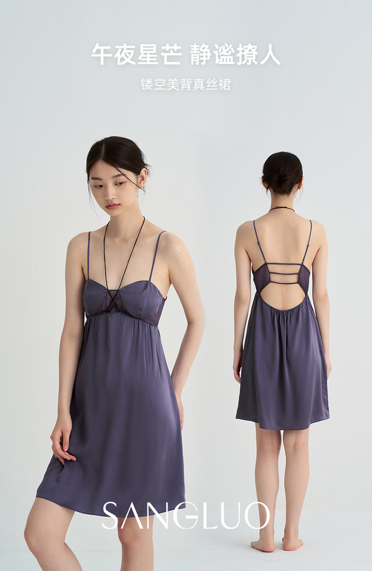 午夜星芒』桑罗镂空美背真丝裙100%桑蚕丝修身性感吊带裙女可外穿