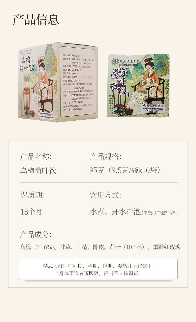 【浙江省中医院出品】乌梅汤2.0版 乌梅荷叶饮茶包养生茶