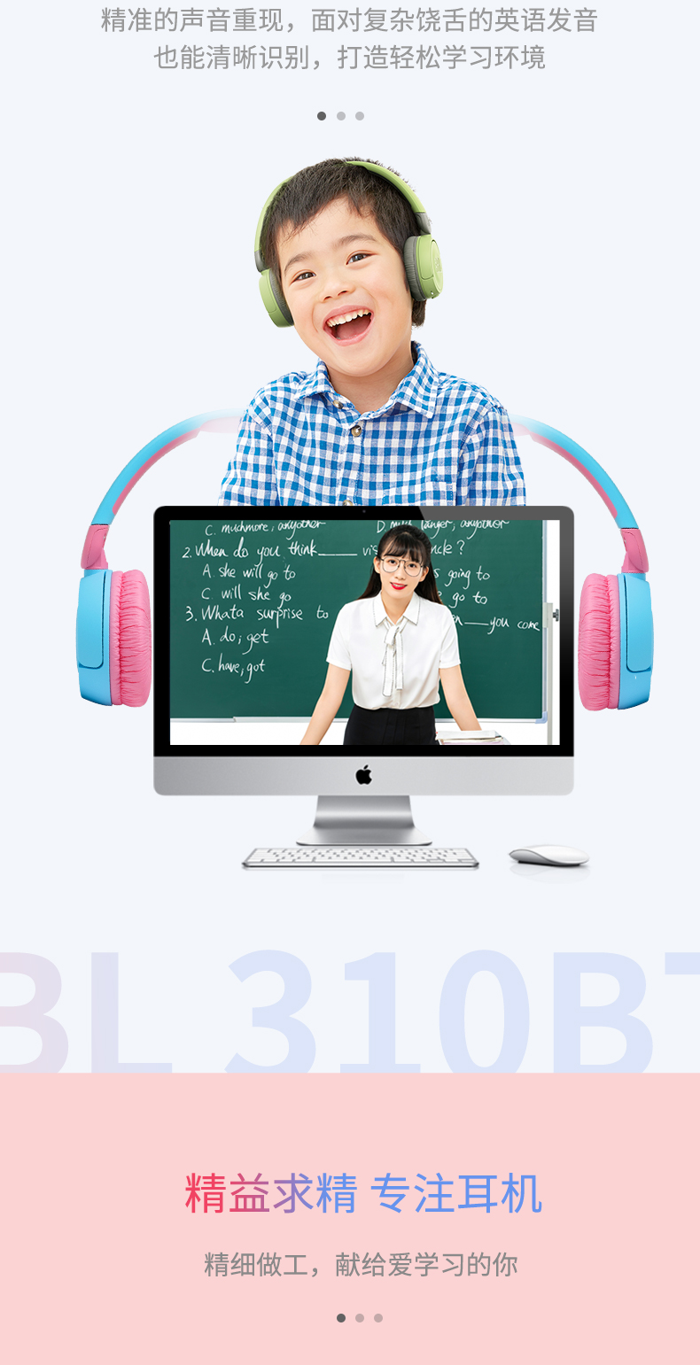 JBL JR310BT蓝牙头戴式 儿童青少年学习娱乐耳机 呵护听力