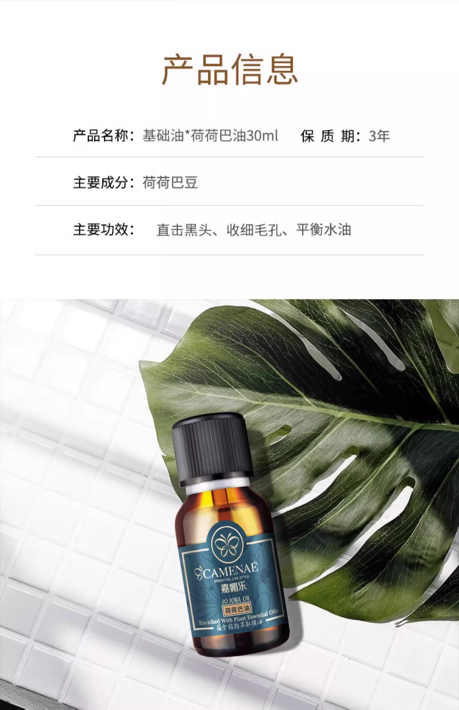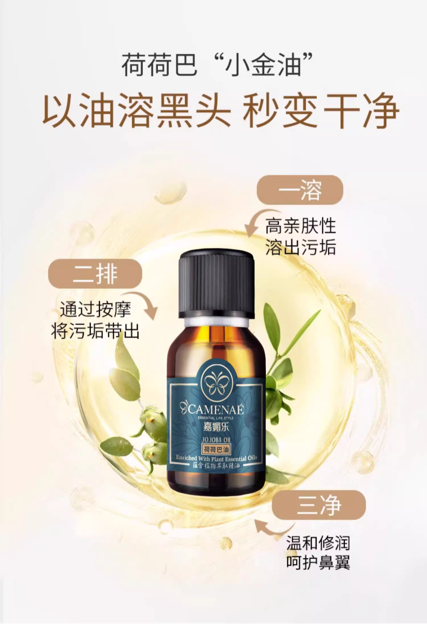 【双12大促】嘉媚乐荷荷巴油 保湿卸妆 清洁污垢 以油溶黑头 告别“草莓鼻” 面部基础精油