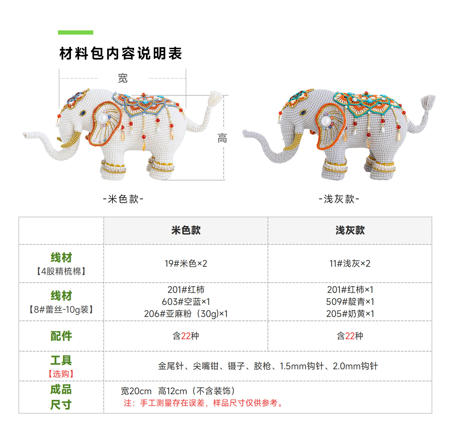 苏苏姐家太平有象玩偶手工diy编织钩针蕾丝线4股棉毛线团材料包