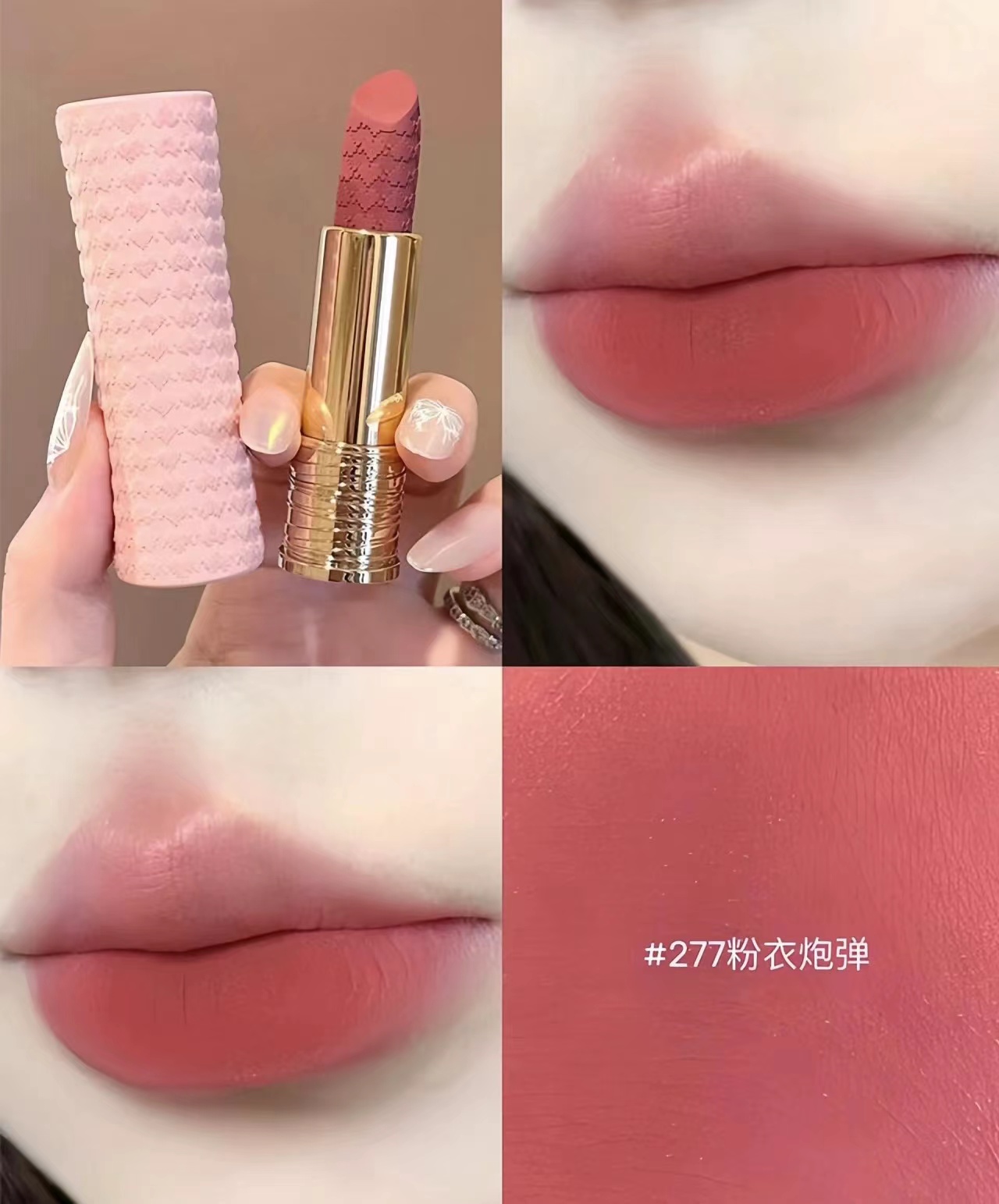 【情人节限定277#粉衣炮弹】高端商品不支持试用,敬请谅解!277#粉衣炮弹敲温柔的蜜渍樱花烟粉色!氛围感十足!薄涂有种春日樱花的感觉粉嫩纯欲!厚涂烟粉调更浓浪漫又日常!复古摩登的限定包装!满满都是热烈浪漫的爱意~口红是热门色!谁涂谁好看系列!不管是新年还是情人节收到都会心动!