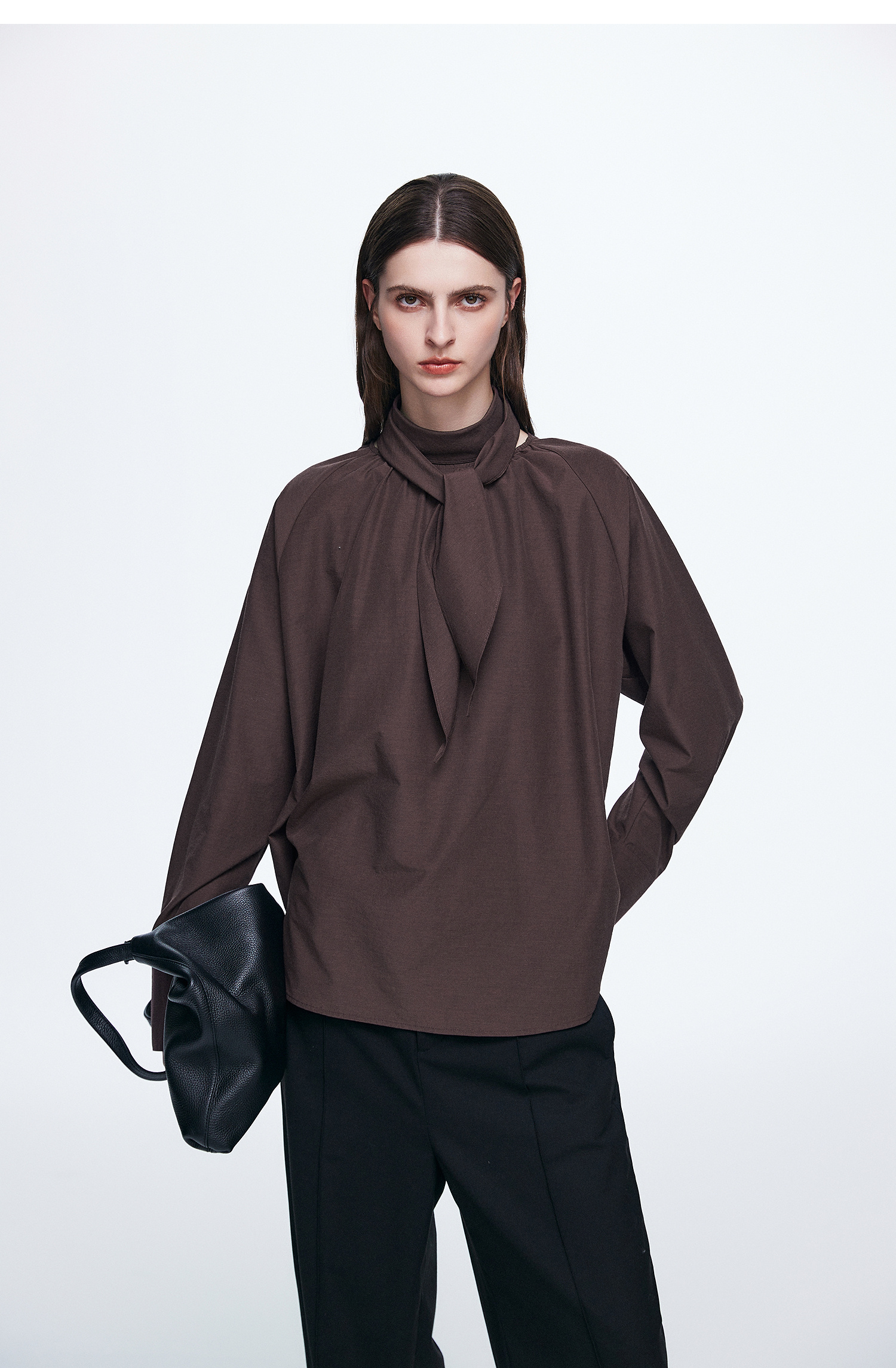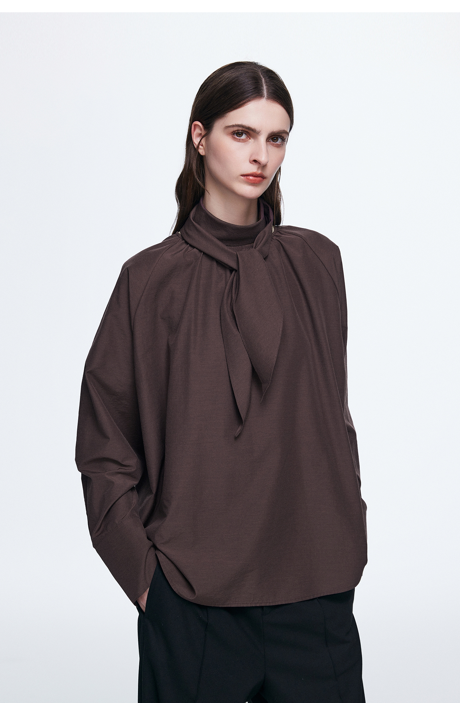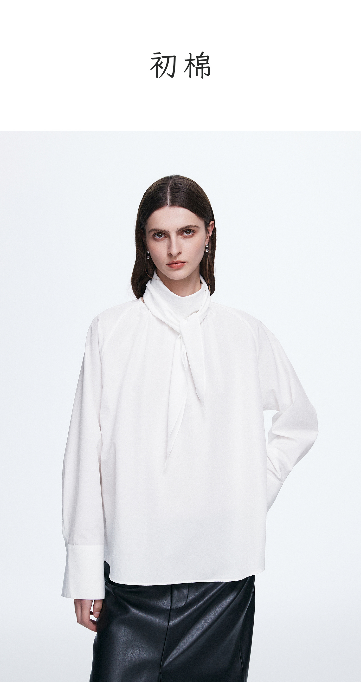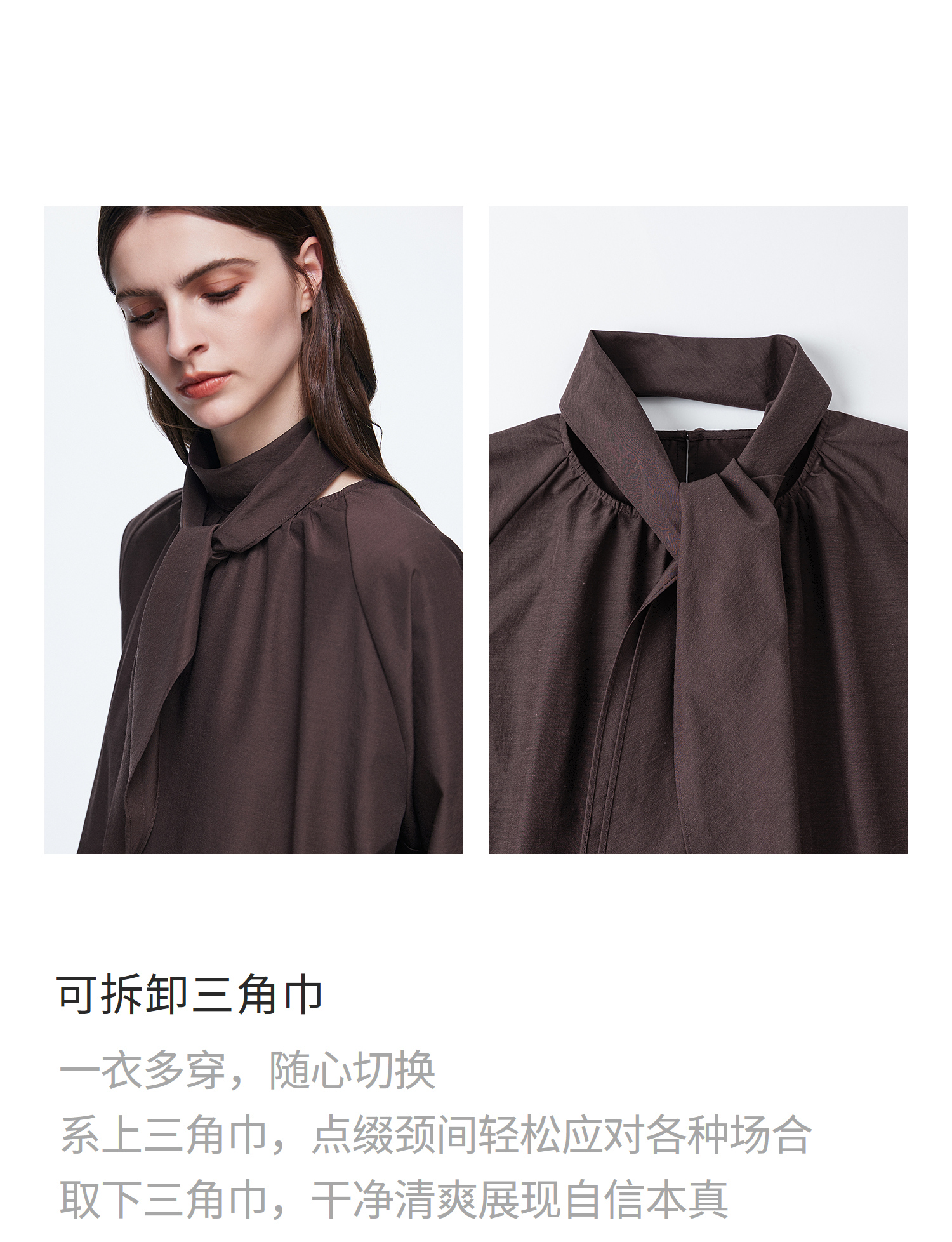棉仓366604010-25秋可拆卸三角巾圆领宽松衬衫