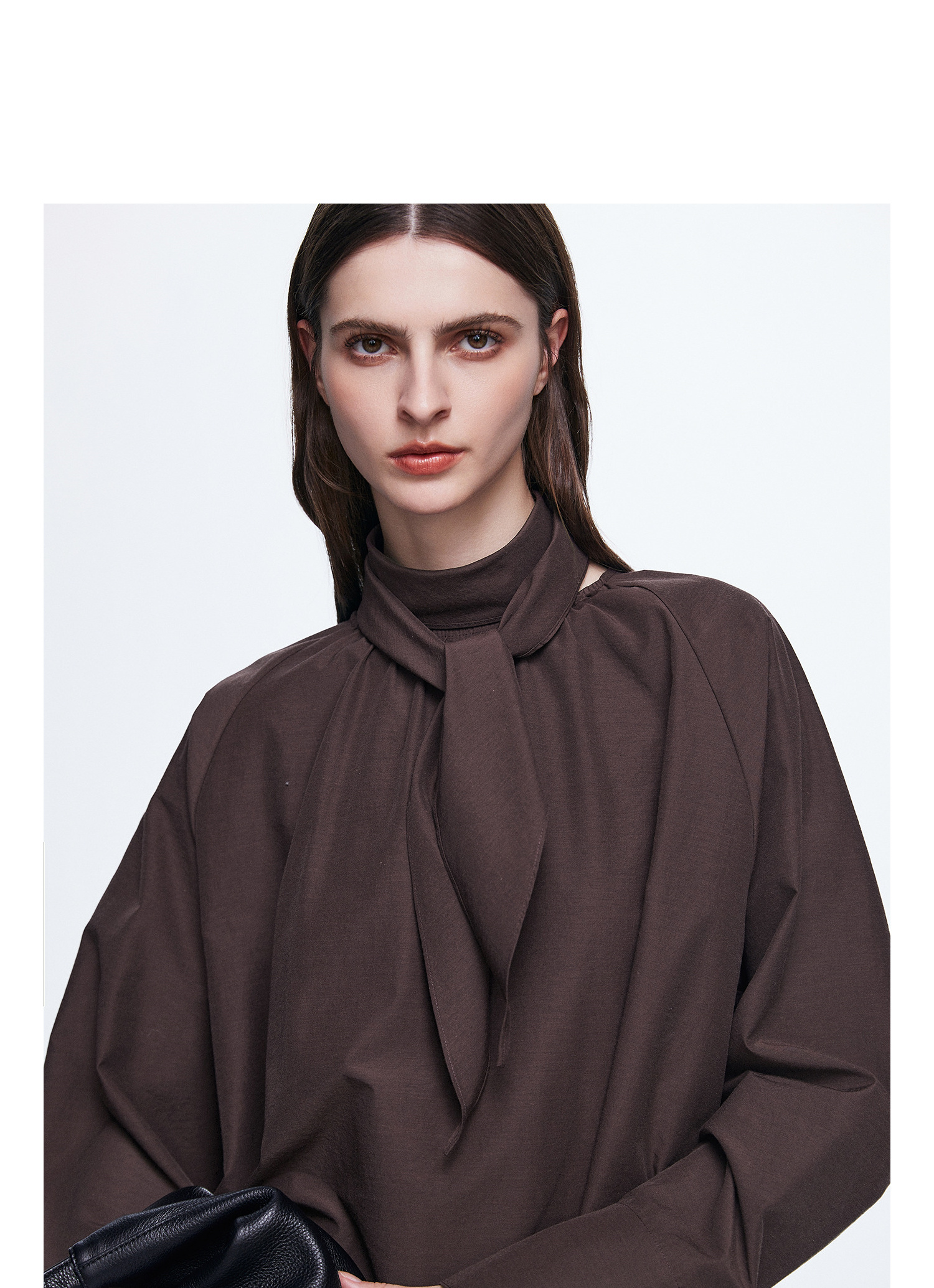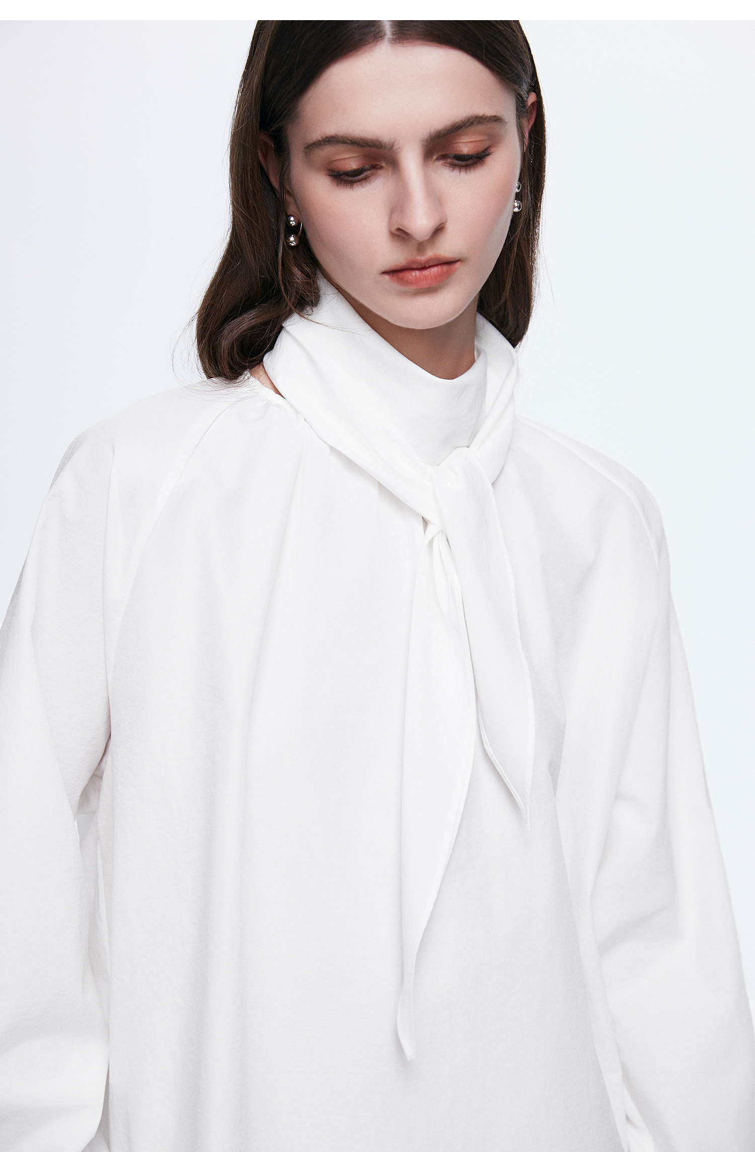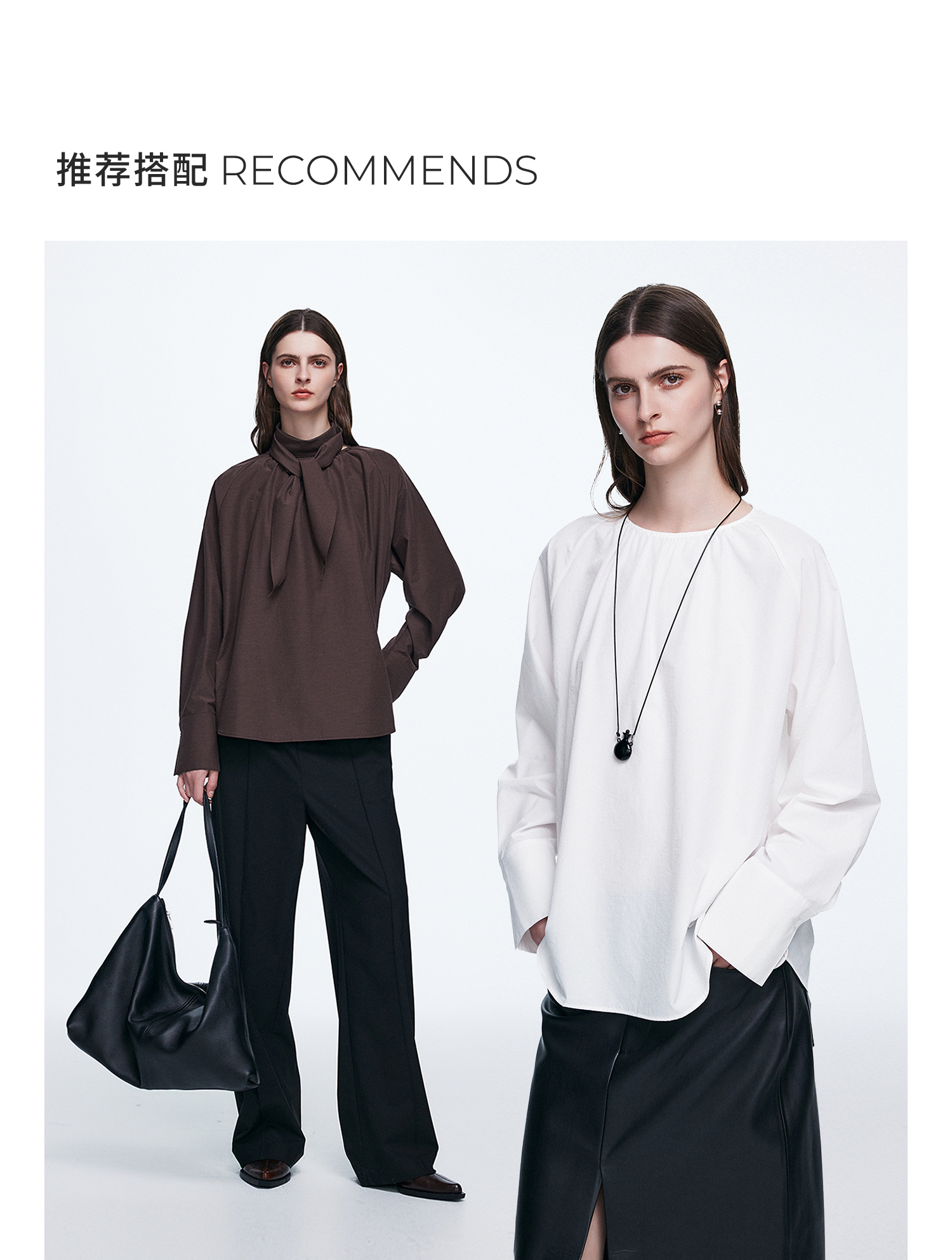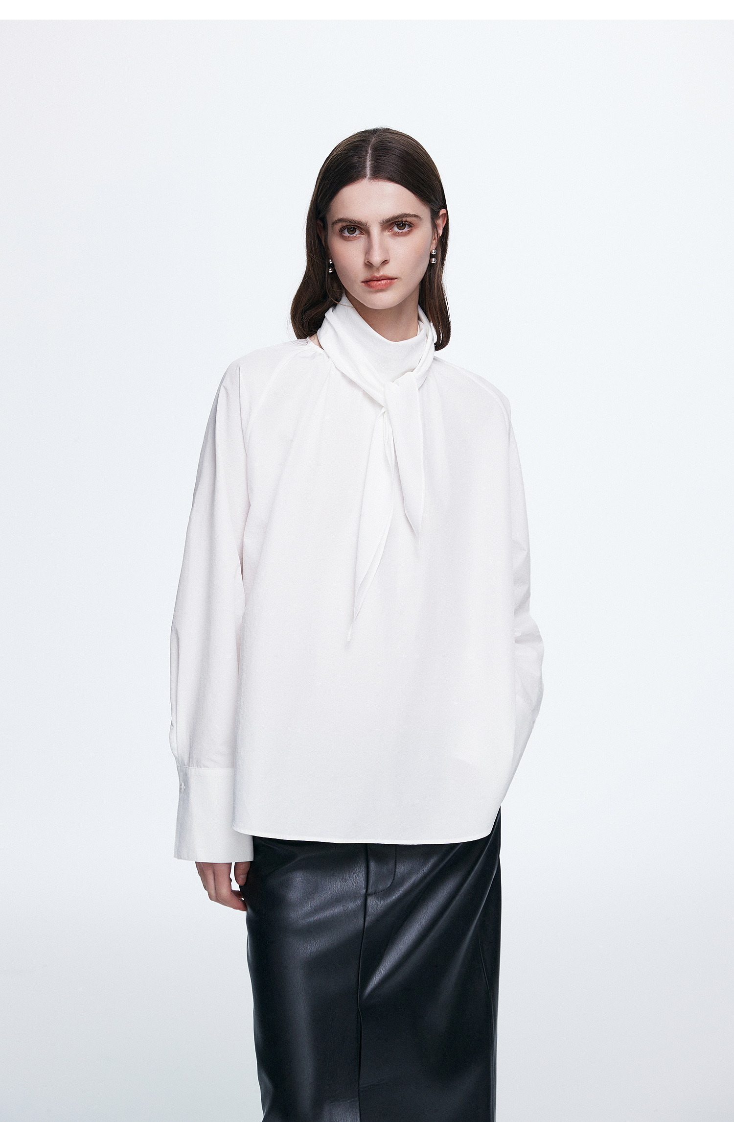 棉仓366604010-25秋可拆卸三角巾圆领宽松衬衫