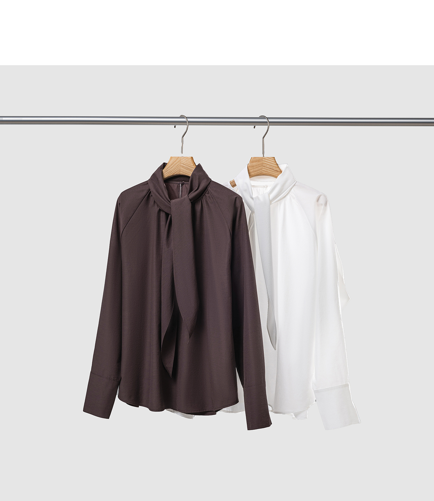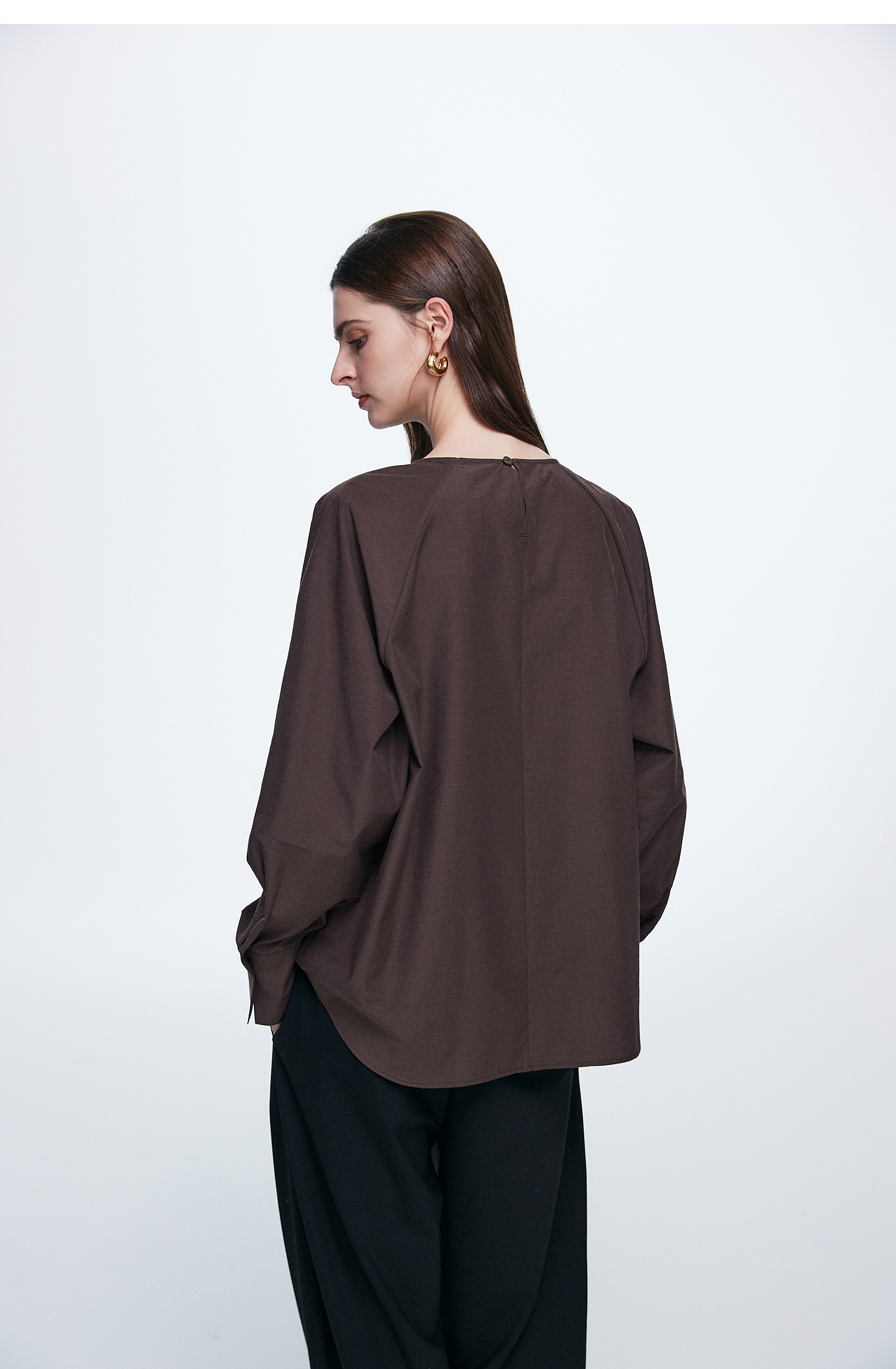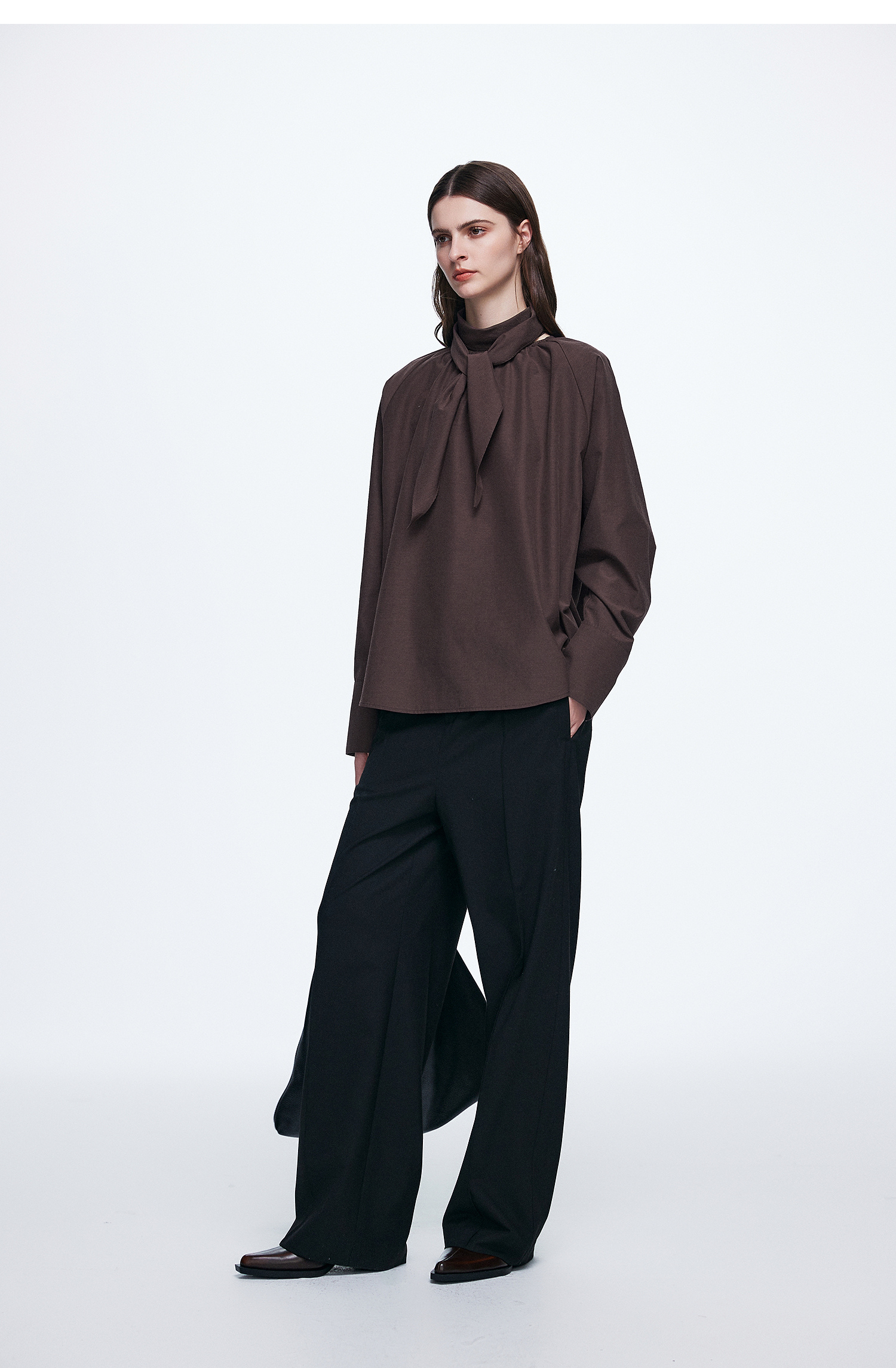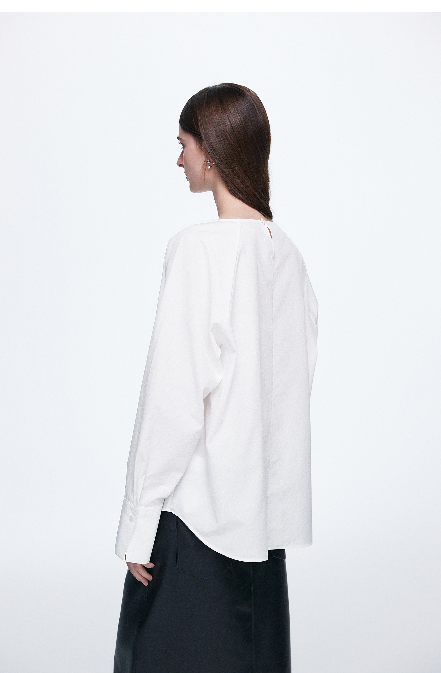 棉仓366604010-25秋可拆卸三角巾圆领宽松衬衫