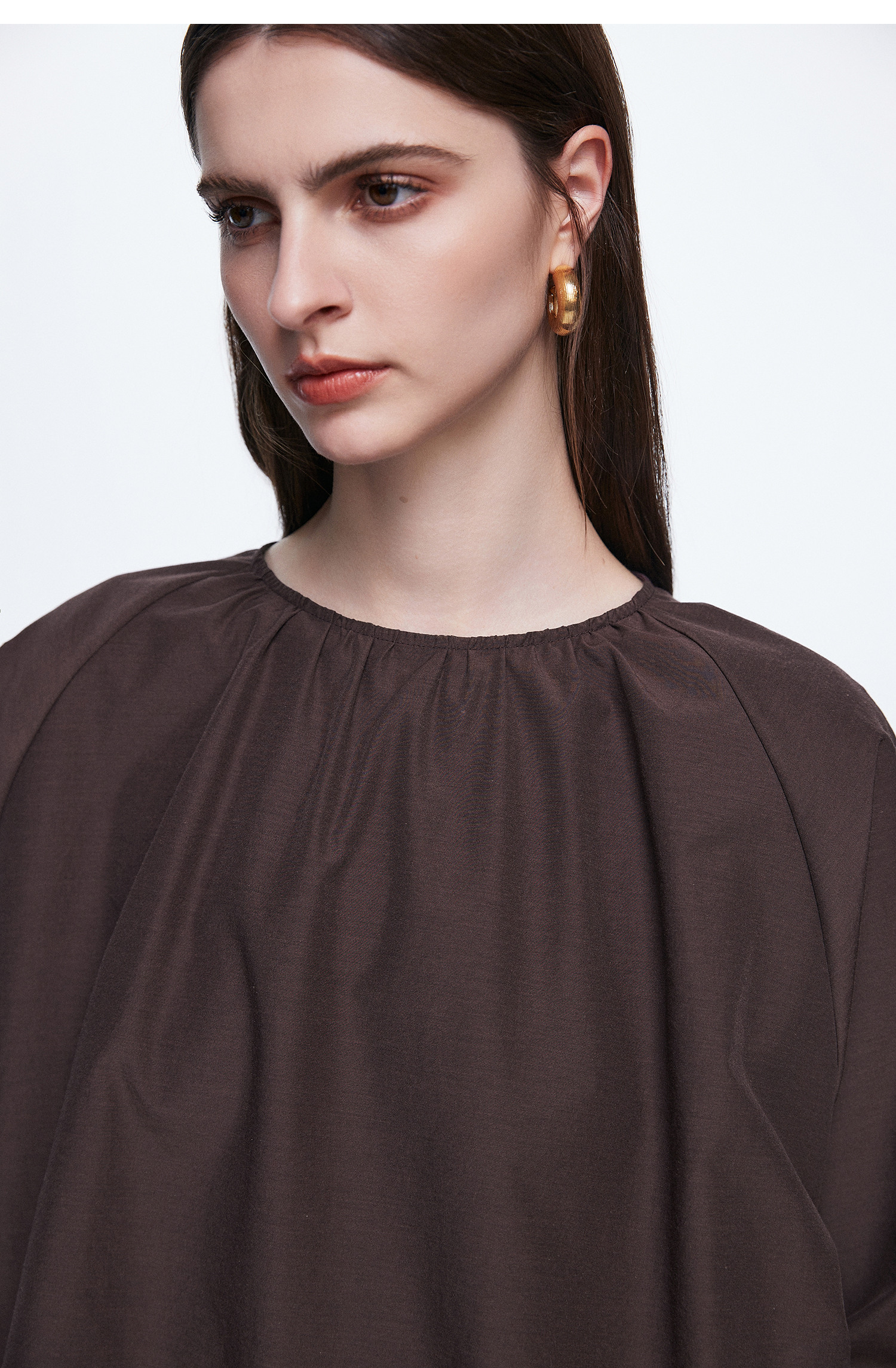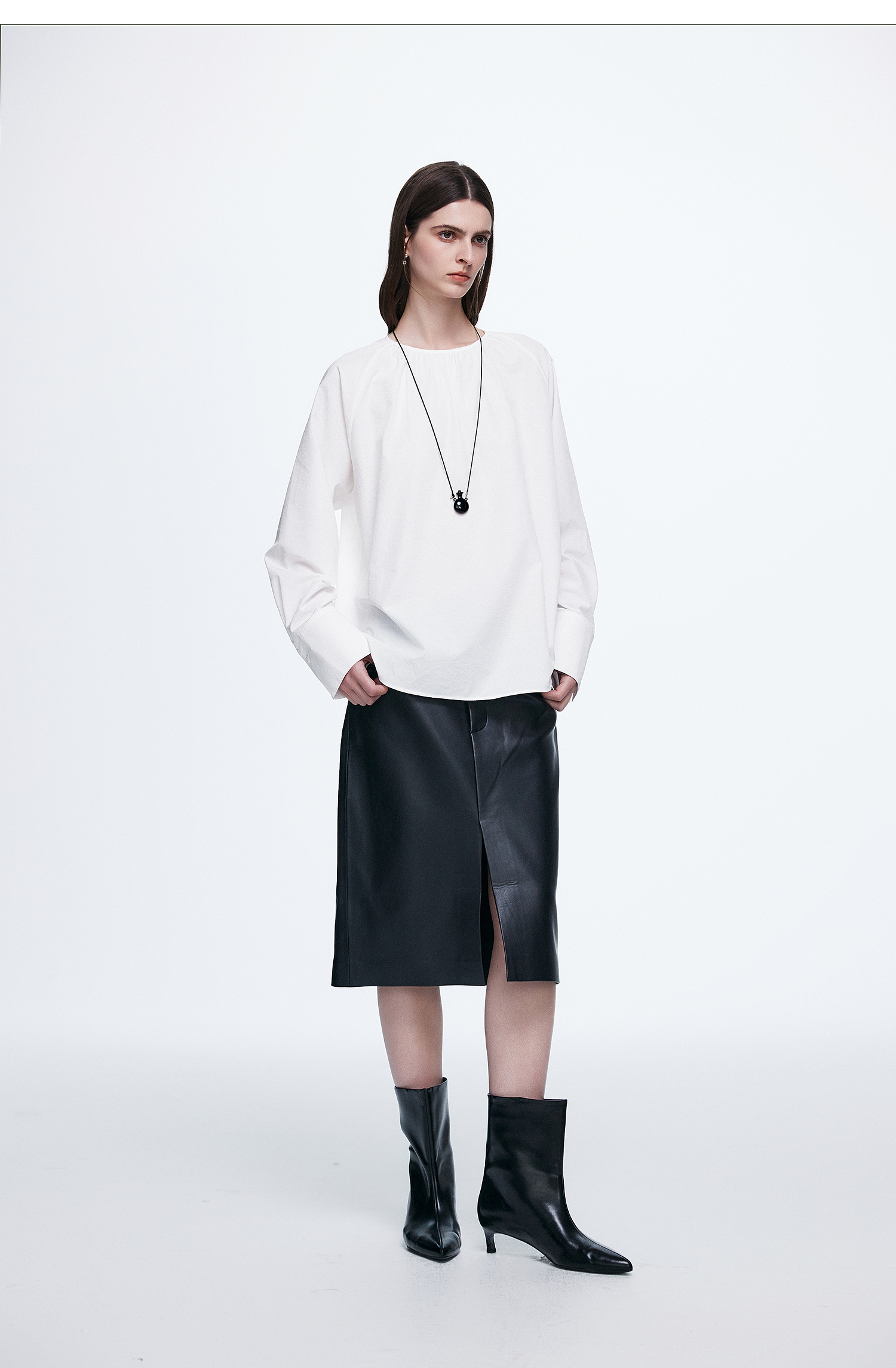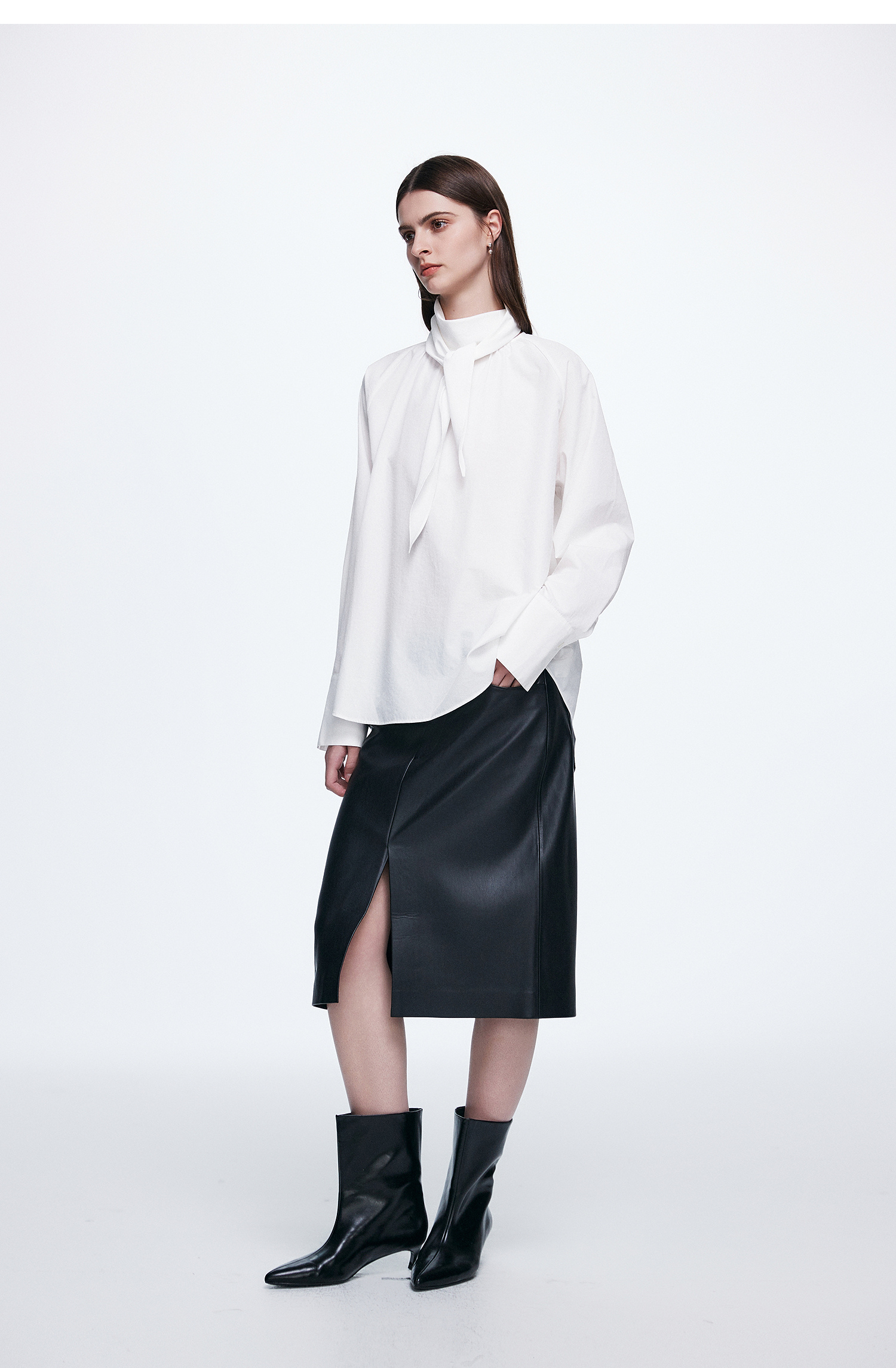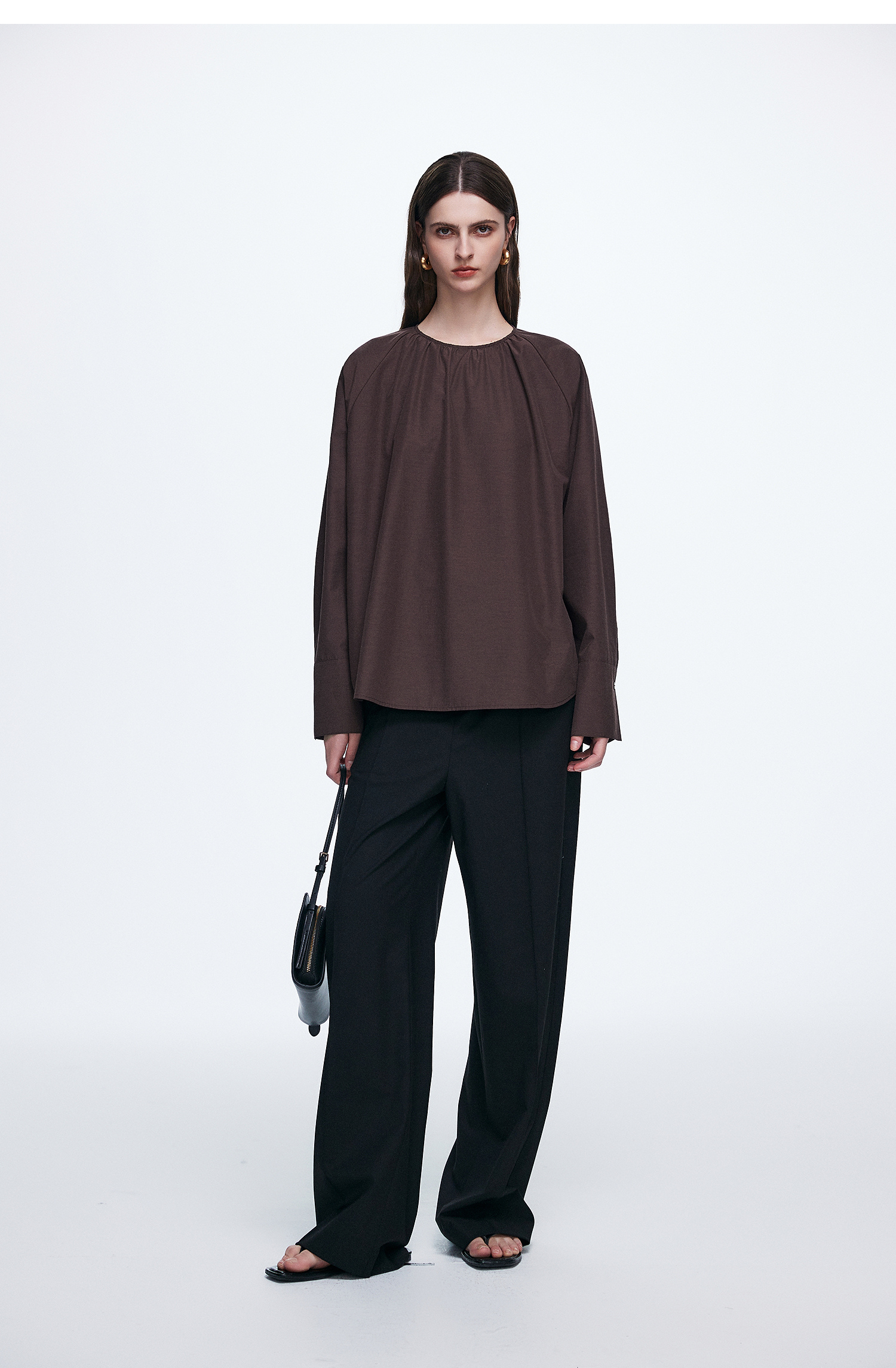 棉仓366604010-25秋可拆卸三角巾圆领宽松衬衫