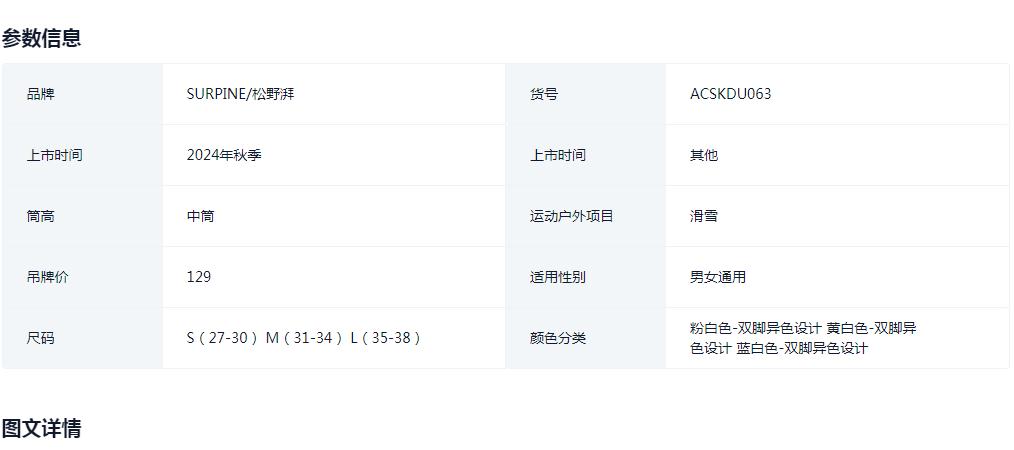 【八折特卖】SURPINE松野湃儿童美利奴羊毛滑雪袜吸湿排汗保暖童趣提花中筒袜 ACSKDU063