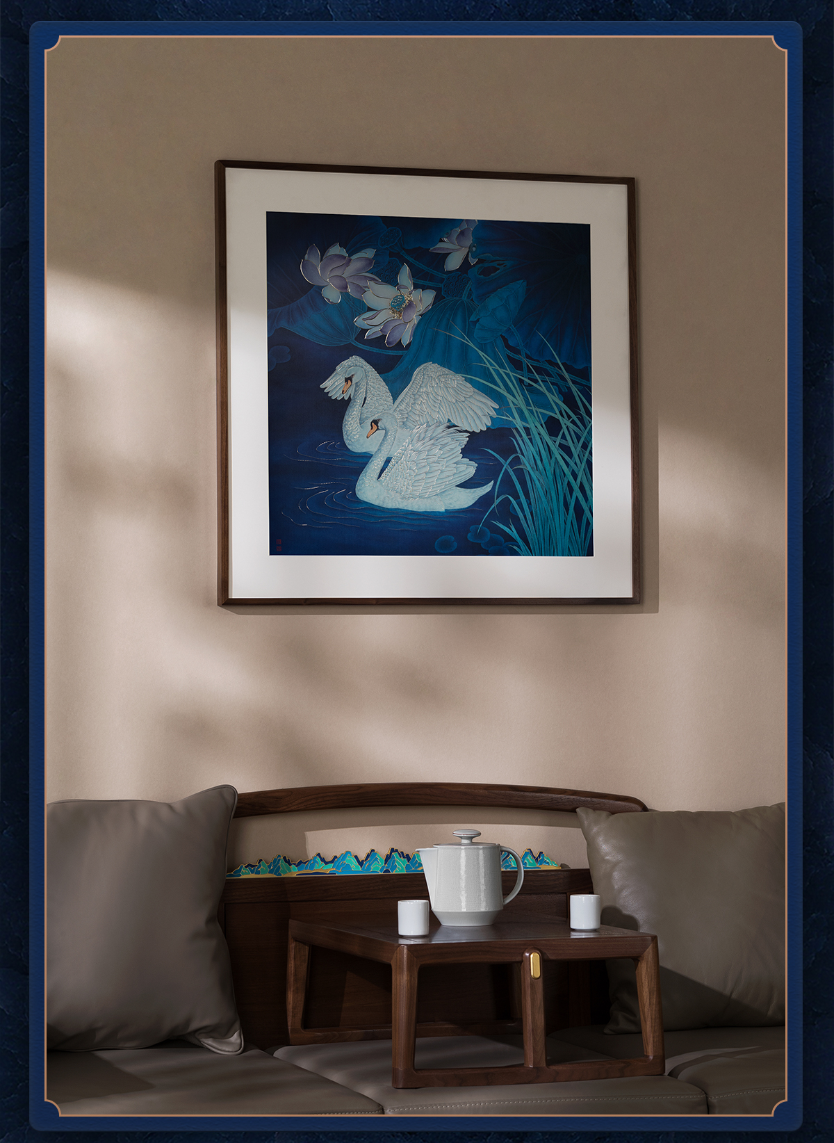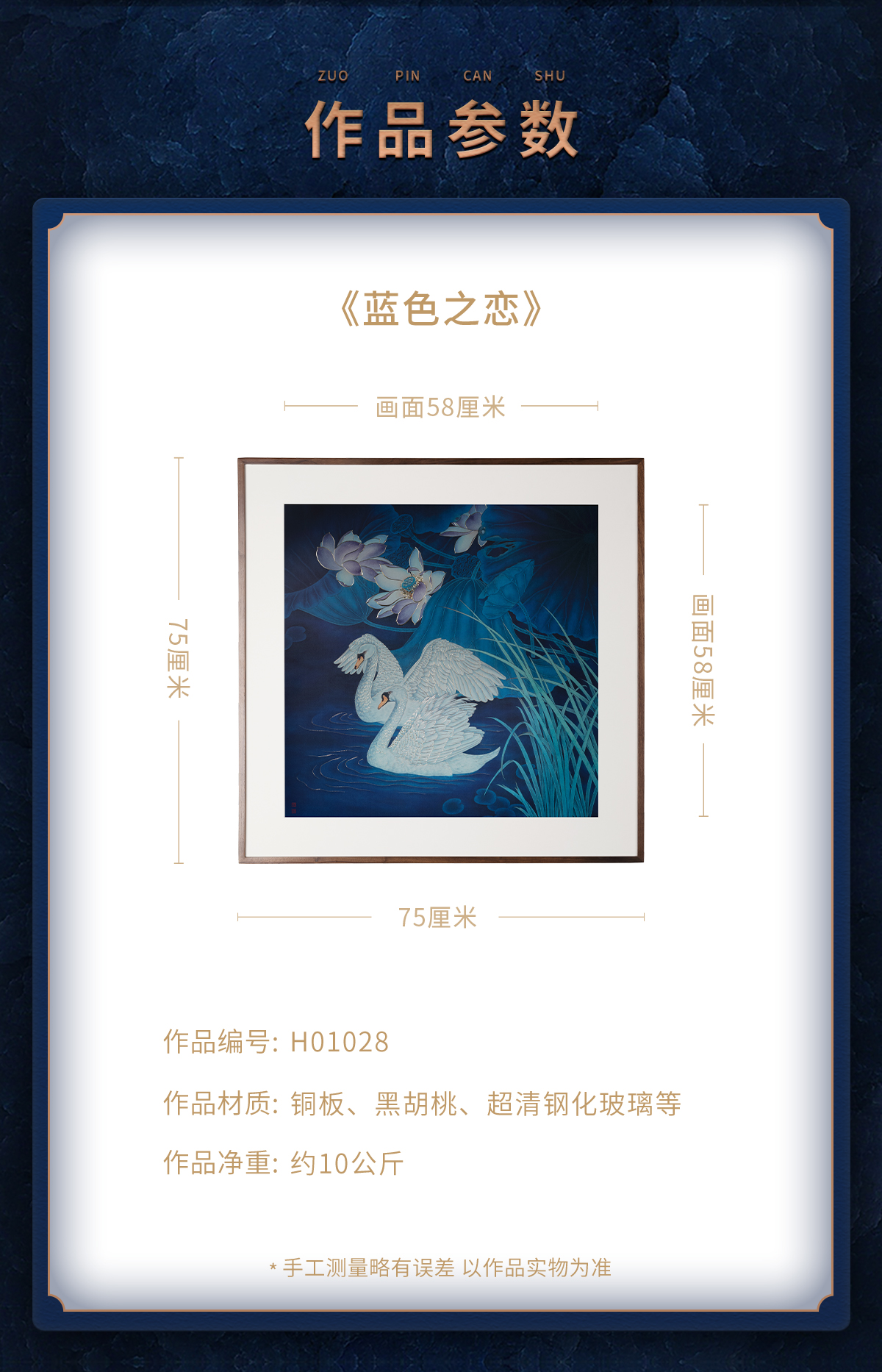 铜师傅 手工錾刻 铜雕画《蓝色之恋》客厅玄关沙发背景墙装饰画