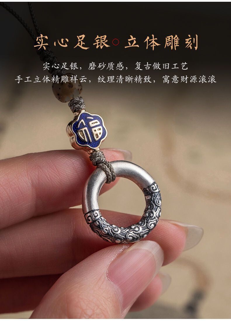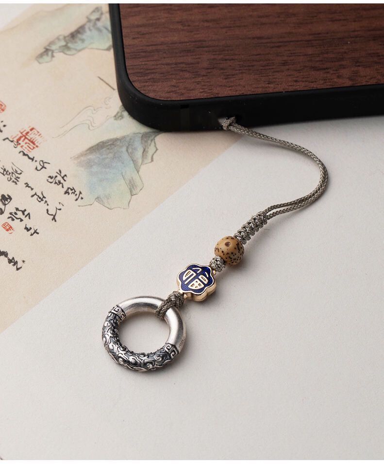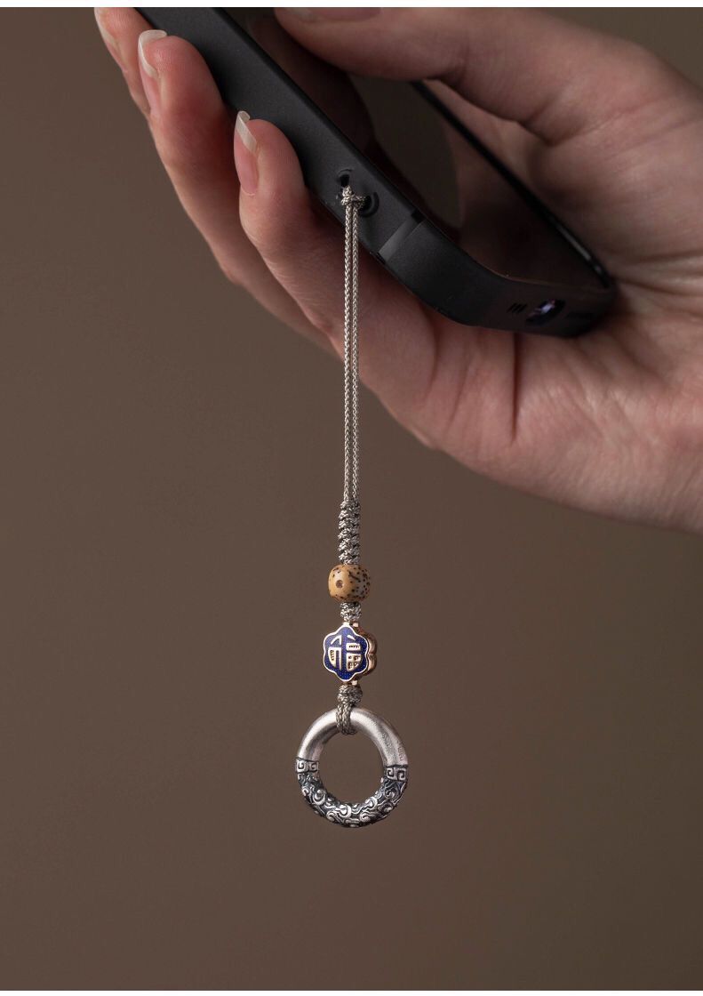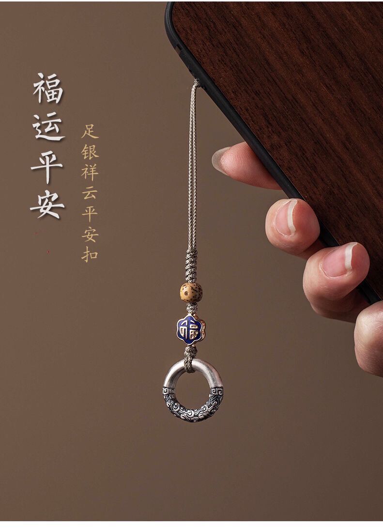 祥云实心平安扣手机挂绳银色纳福字挂饰手机链吊坠
