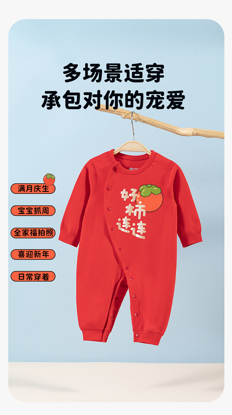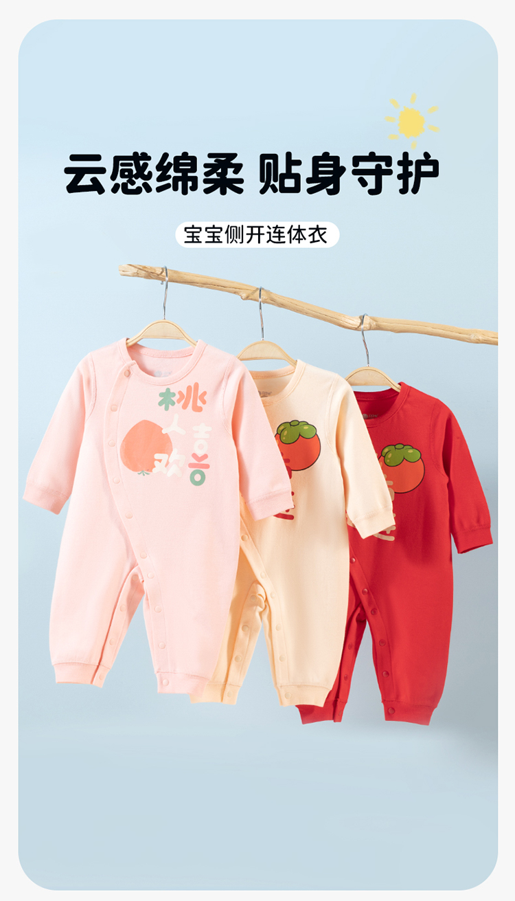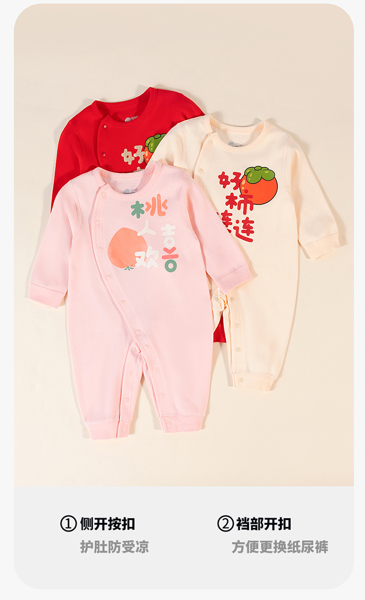 贝贝怡童装宝宝侧开连体衣春秋新款婴幼儿好柿连连哈衣233L2082