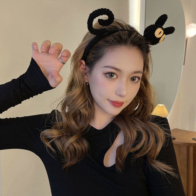 韩系黑色小猫针织卡通画发箍洗脸用敷面膜头箍女韩版外戴百搭