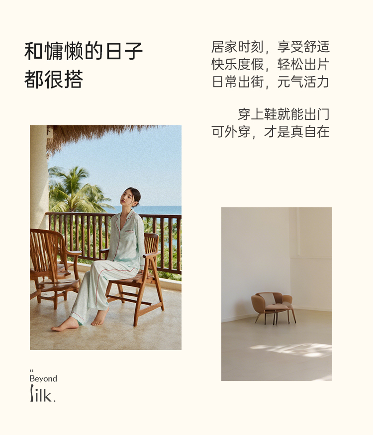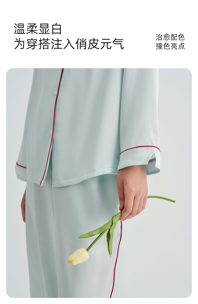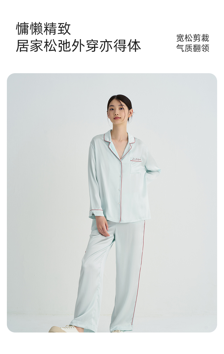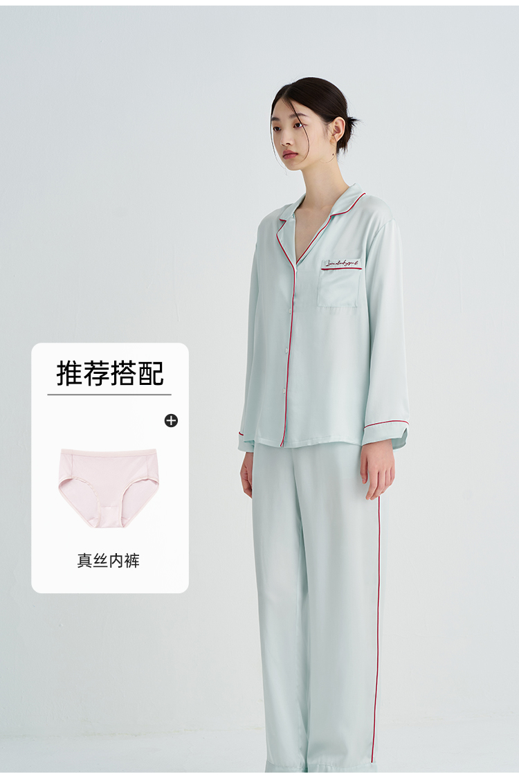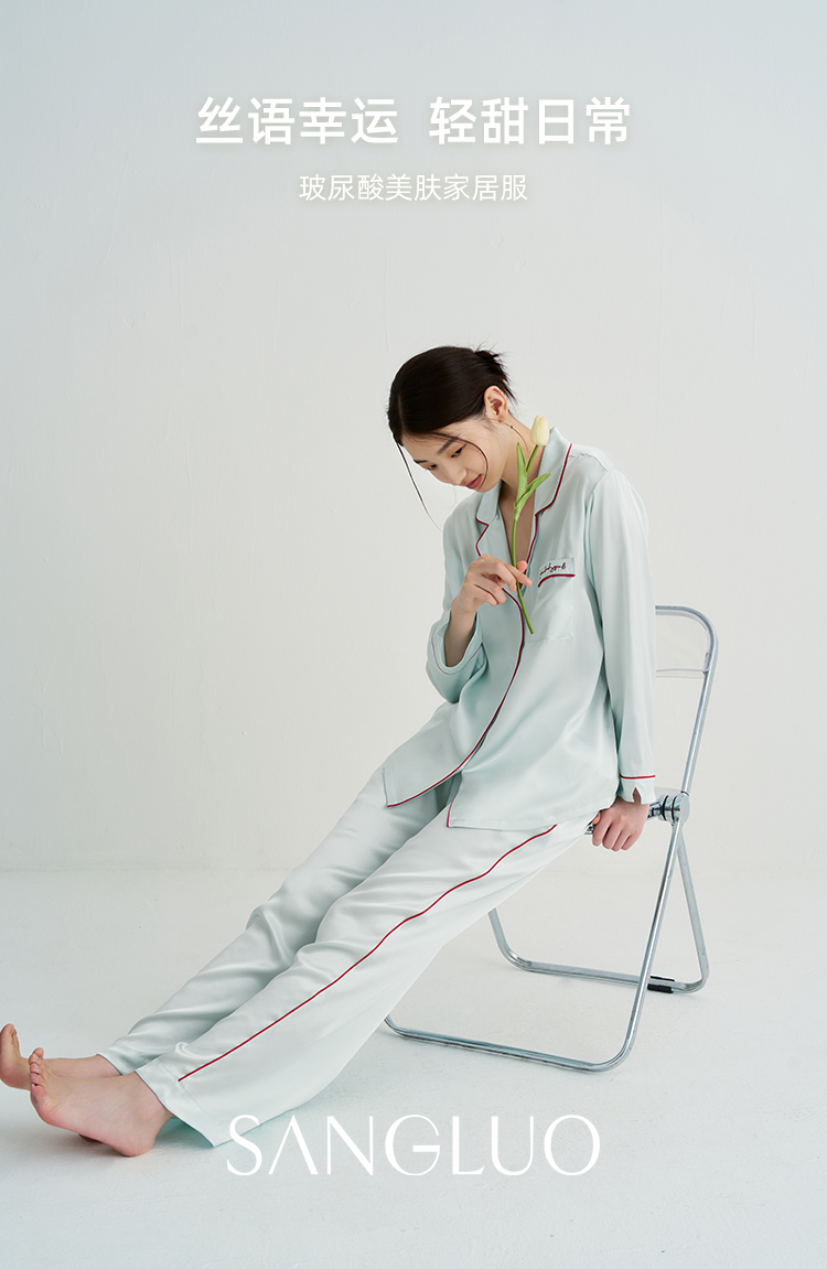玻尿酸美肤』桑罗23姆米重磅真丝睡衣套装100%桑蚕丝女家居服外穿