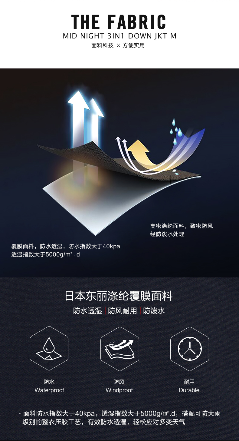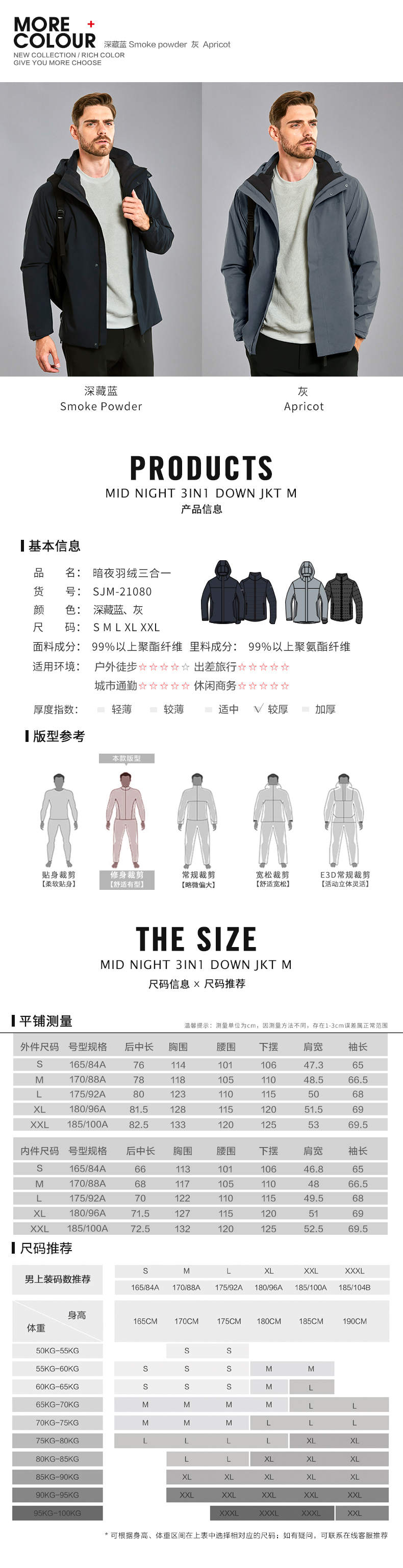 SANFO PLUS男款暗夜鹅绒三合一冲锋衣 保暖防风防雨 21080