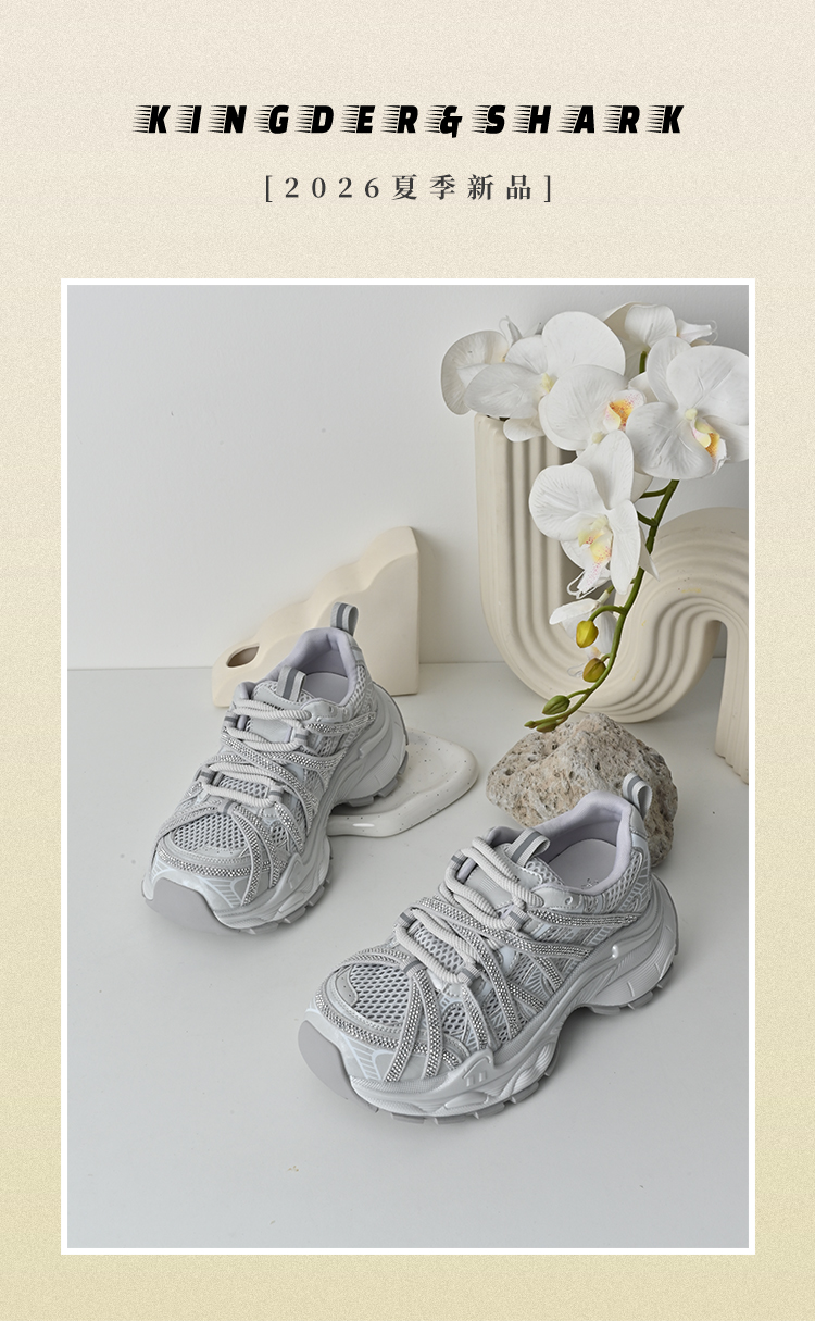 经典鲨2026年夏专柜新品韩版水钻透气潮酷跑步休闲老爹鞋女KW219-629081