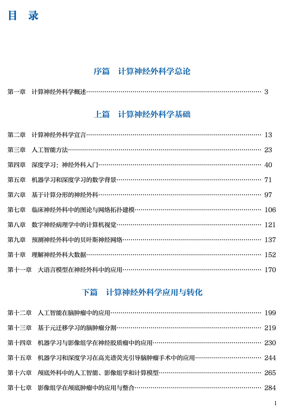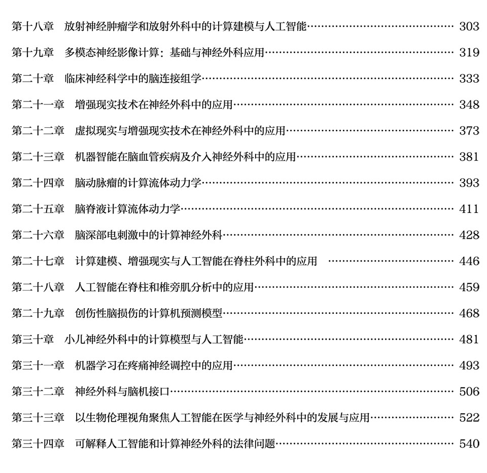 本书系统梳理了计算神经外科的数学与计算基础,从机器学习、深度学习、大语言模型,到分形几何、图论与贝叶斯网络,为读者奠定了坚实的理论基础。在下篇的临床应用与转化中,本书全景式地展现了人工智能等技术在神经肿瘤影像识别、手术规划、脑血管病血流动力学模拟、脑机接口、放射外科、脊柱外科及创伤性脑损伤等核心领域的突破性应用。书中特别收录了由中国学者撰写的“多模态神经影像计算”章节,体现了国际前沿与中国创新的交融。