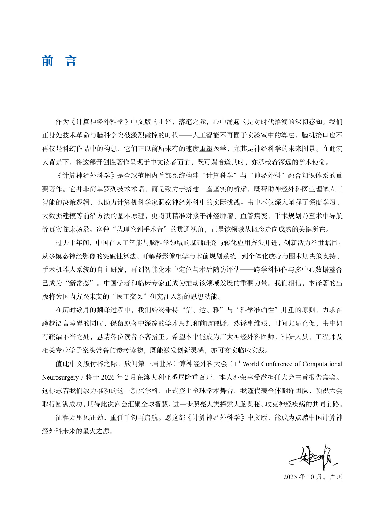 本书是全球首部系统构建“计算科学”与“神经外科”深度融合知识体系的开创性著作。本书由国际顶尖专家团队领衔,旨在引领一场范式革命,为神经外科迎来智能化、精准化、个性化的新时代。