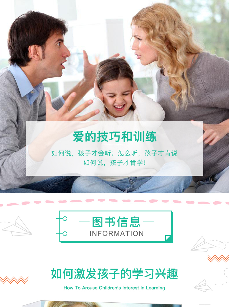 这是一本引进版权翻译出版的美国亲子教育的畅销书,这也正是我们广大中小学教师和家长所期盼的教子读物。书中既有非常先进的理念,又有极强的实用性和操作性。法伯和玛兹丽施在长期的亲子沟通研究培训中,积累和发现了大量与孩子进行有效沟通的方法和技巧。在《如何说孩子才肯学》中,她们运用这些已经被广泛验证过的方法和技巧,激励孩子进行自我监督、自我约束,*限度地激发孩子的学习自觉性和主动性。