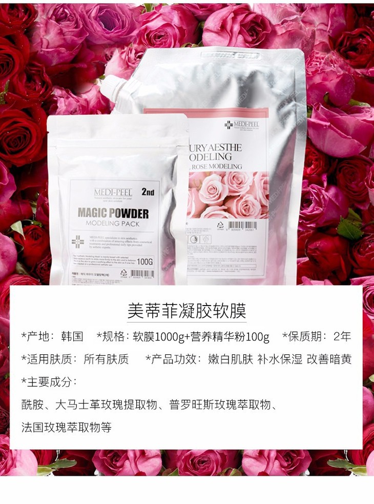 【领10元券再下单】韩国 美蒂菲 玫瑰软膜 1kg 补水提亮肤色