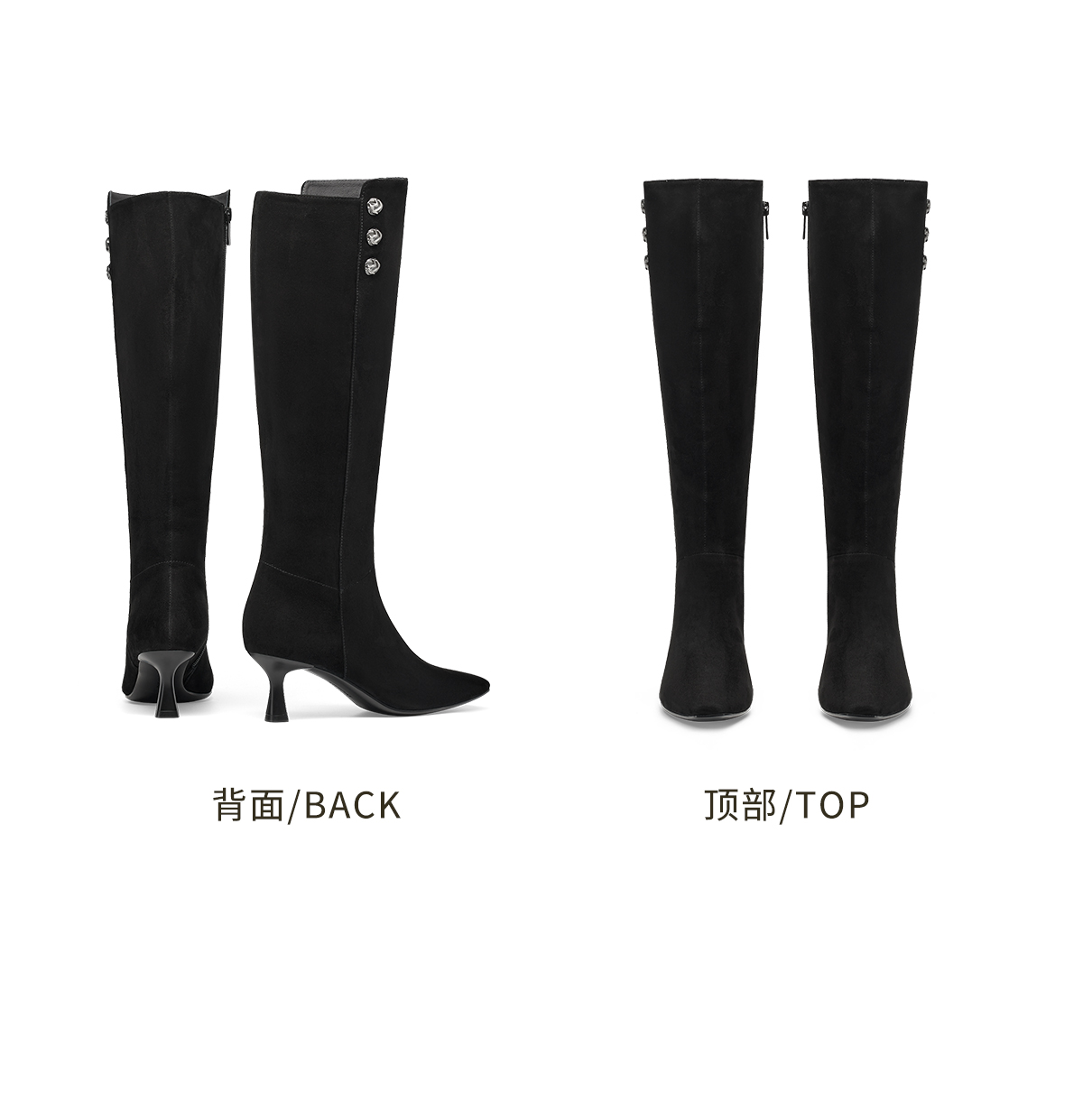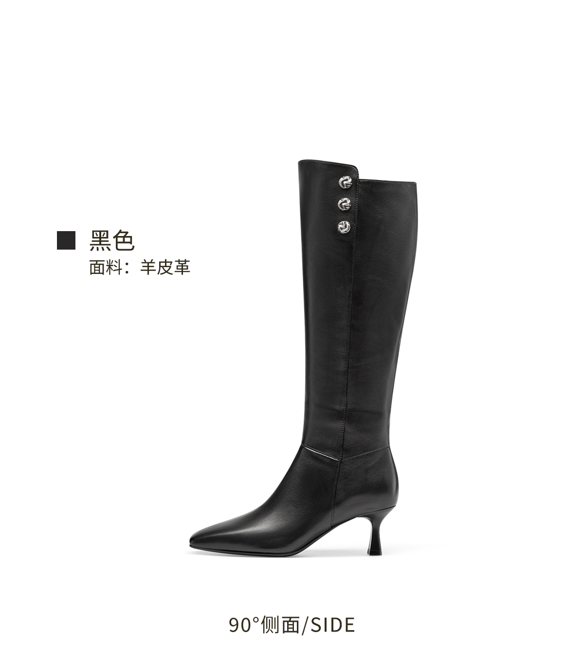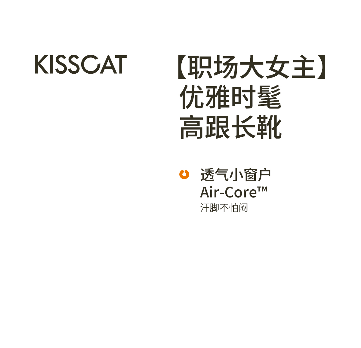 【云粉节】BF楼KISSCAT接吻猫[职场大女主]长靴25新优雅时髦高跟真皮黑色长筒靴KA65713-14吊牌价2399活动价1299