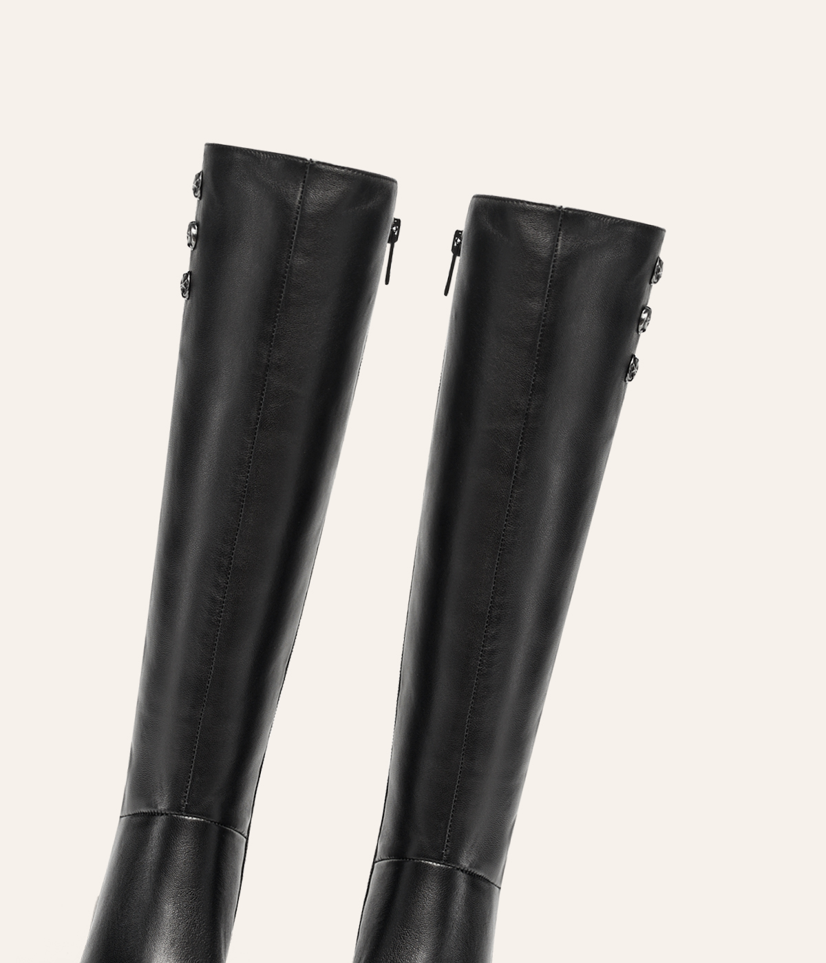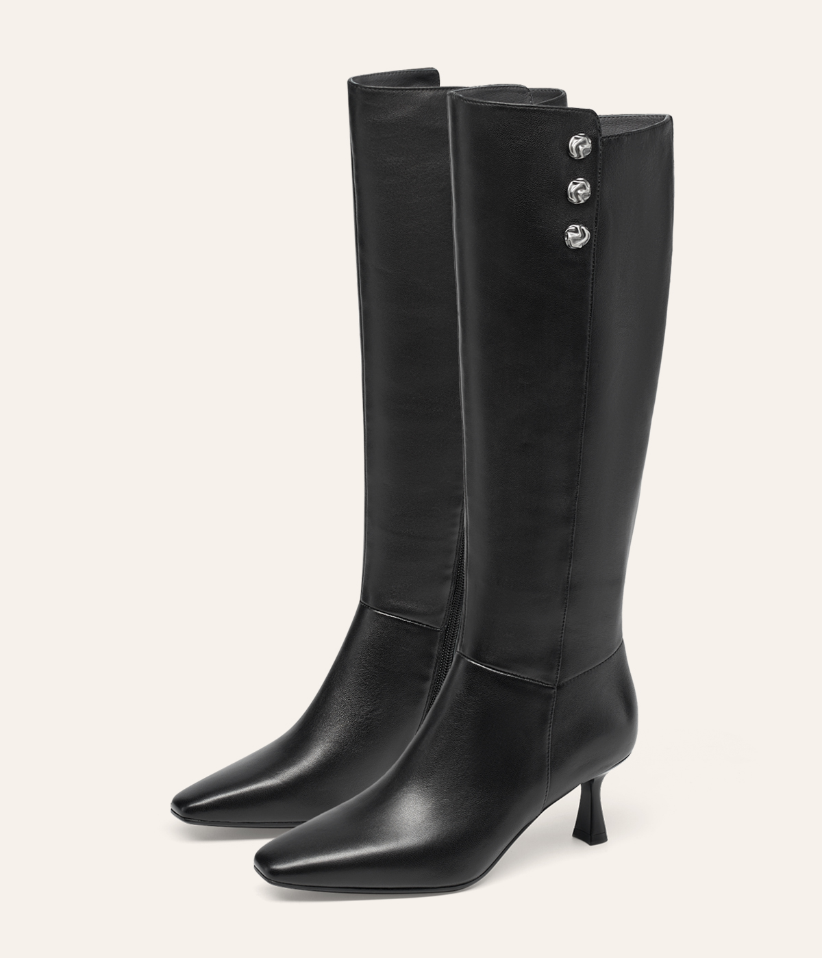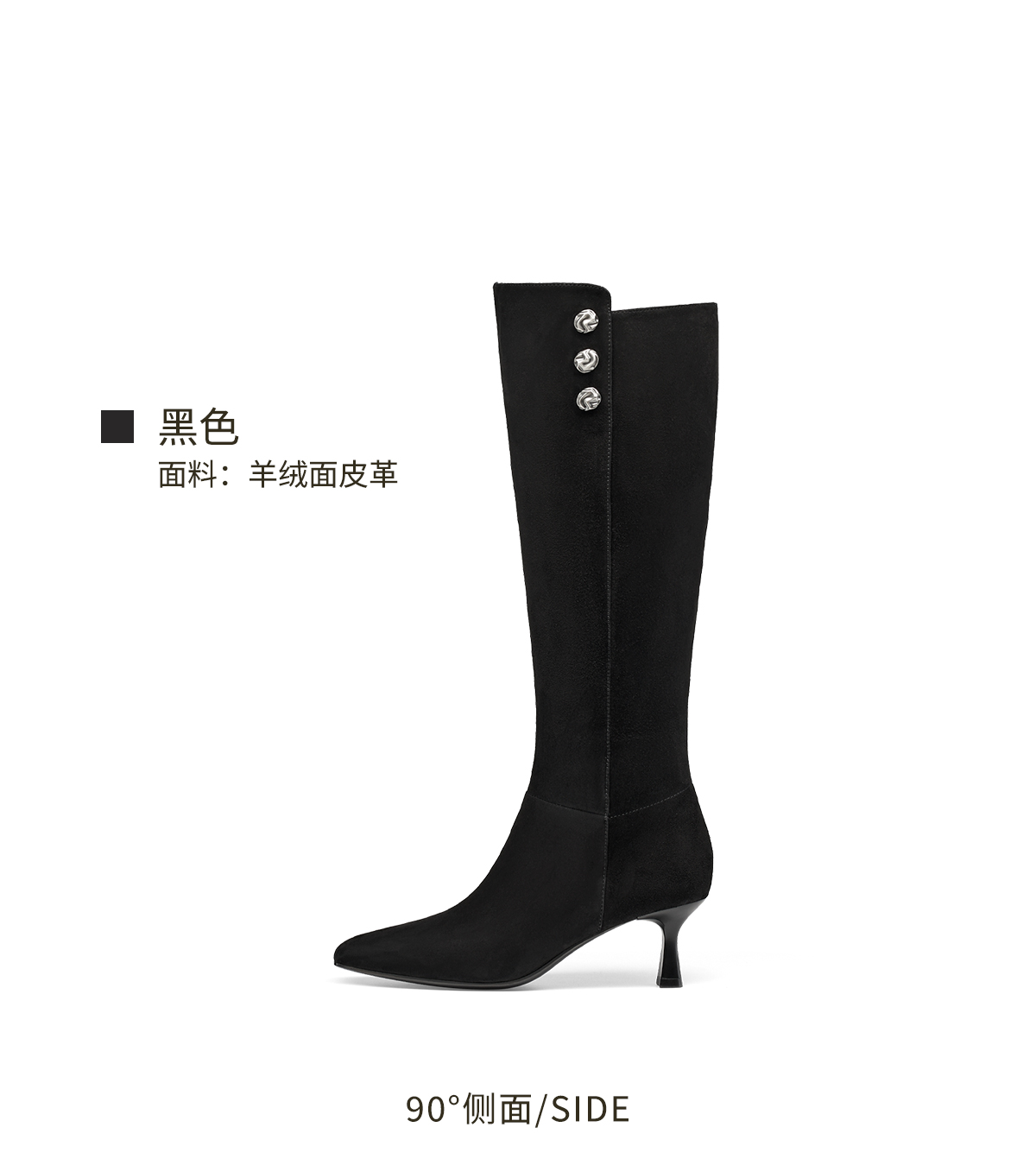 【云粉节】BF楼KISSCAT接吻猫[职场大女主]长靴25新优雅时髦高跟真皮黑色长筒靴KA65713-14吊牌价2399活动价1299