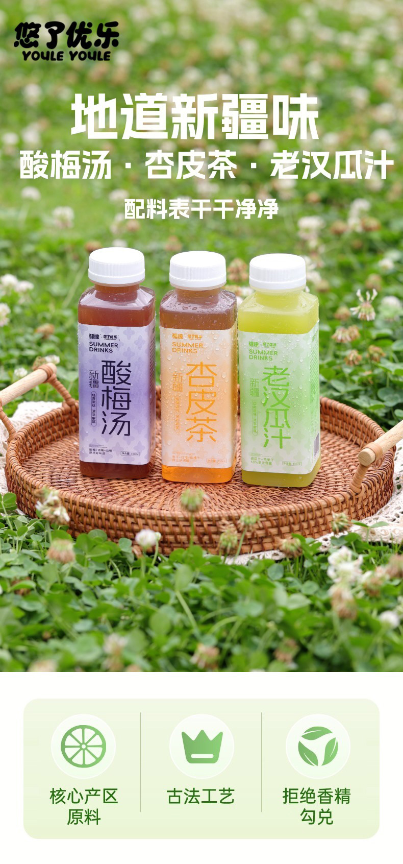 【产品名称】老汉瓜汁、酸梅汤(加糖)、杏皮茶(加糖)